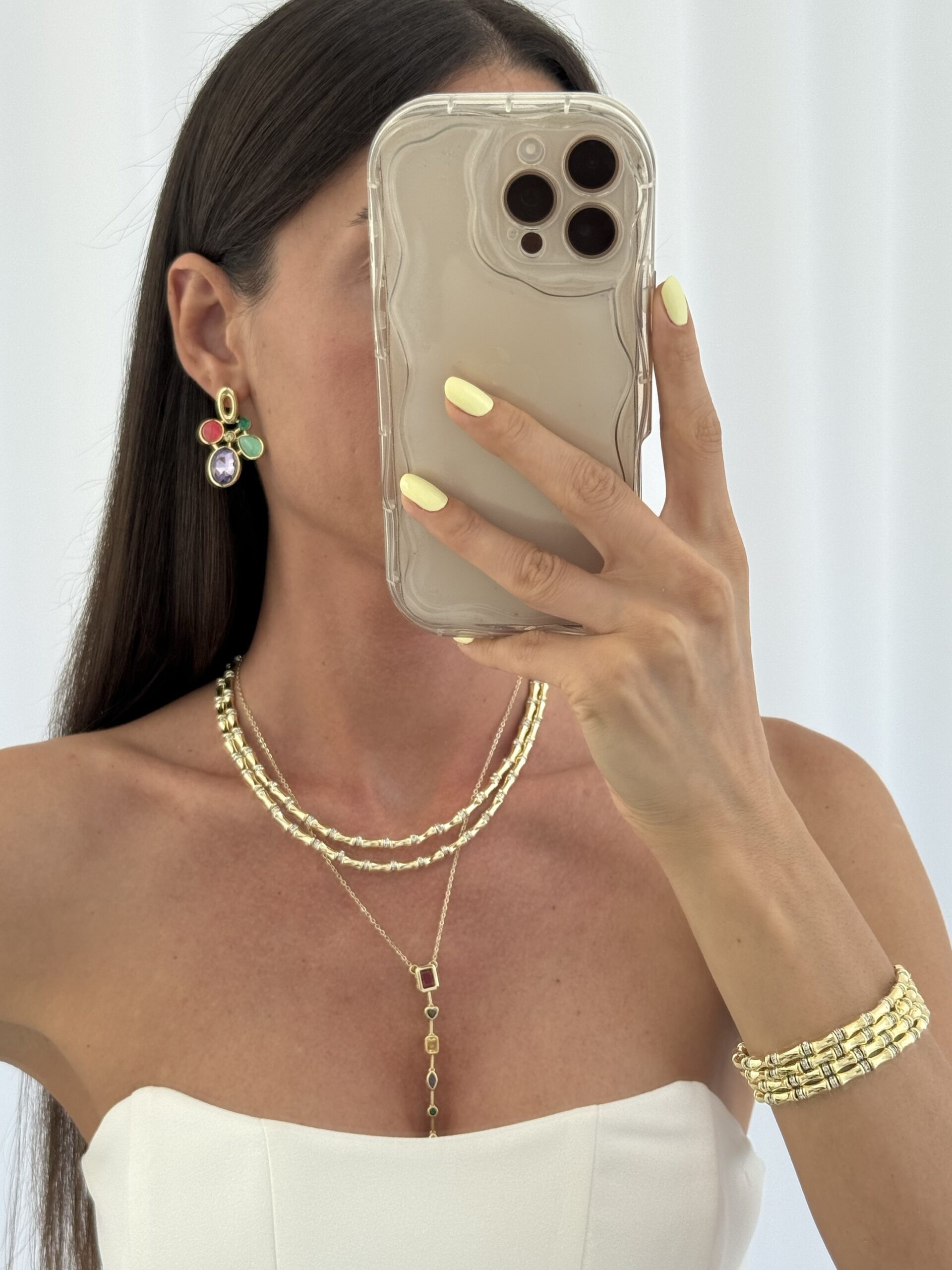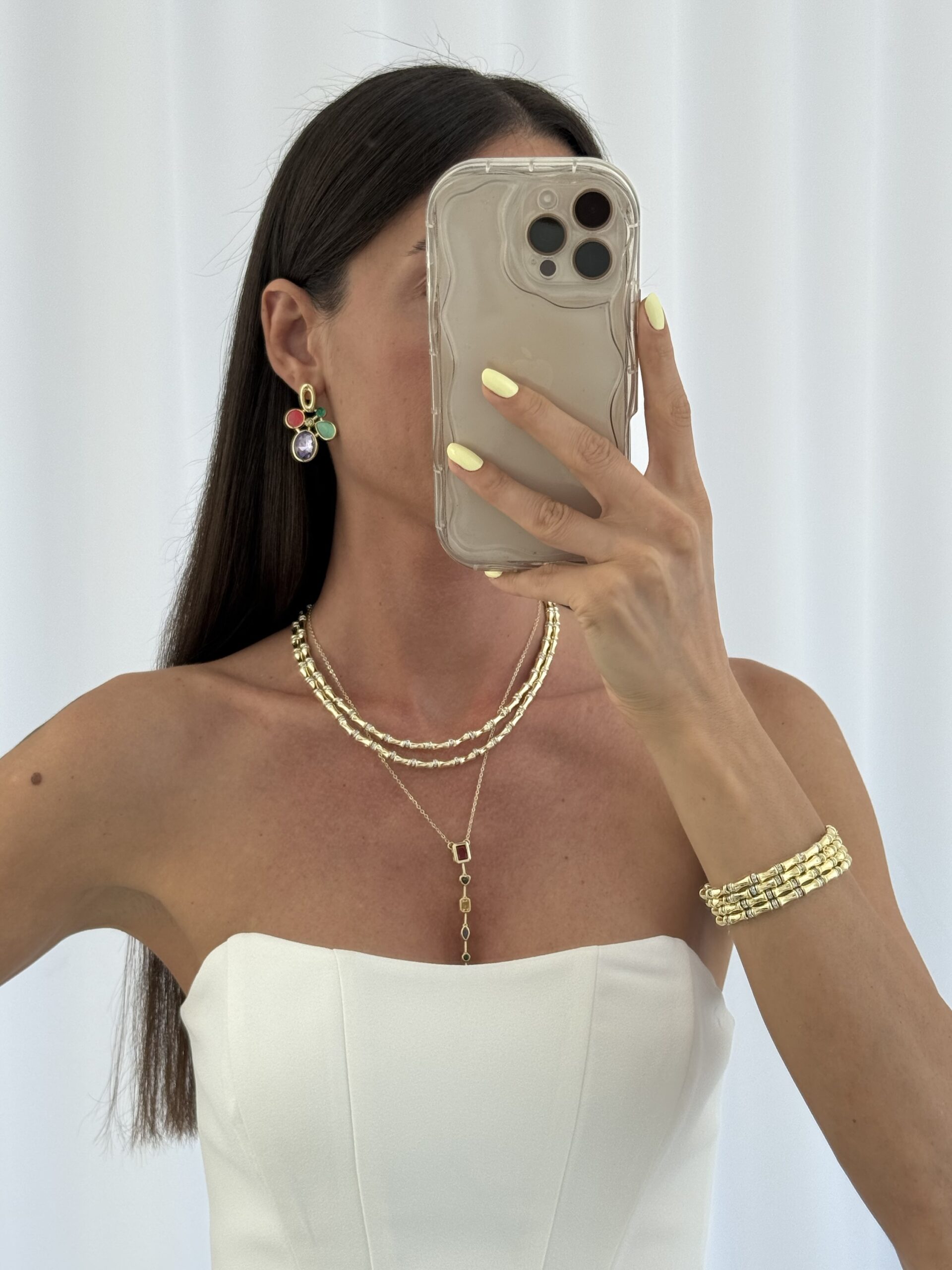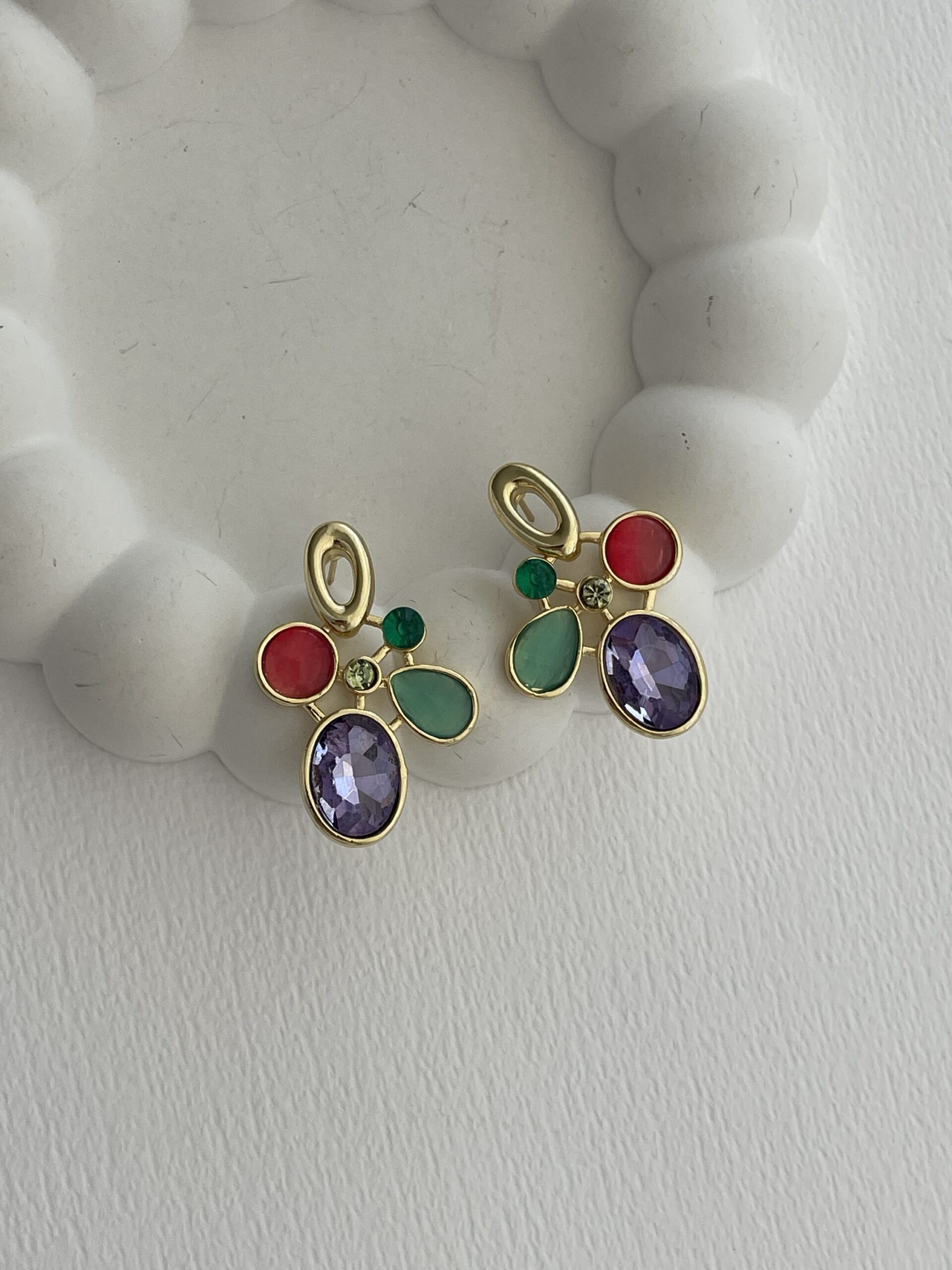 Özel Seri Çok Renkli Damla Taş Tasarım Gold Küpe