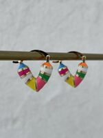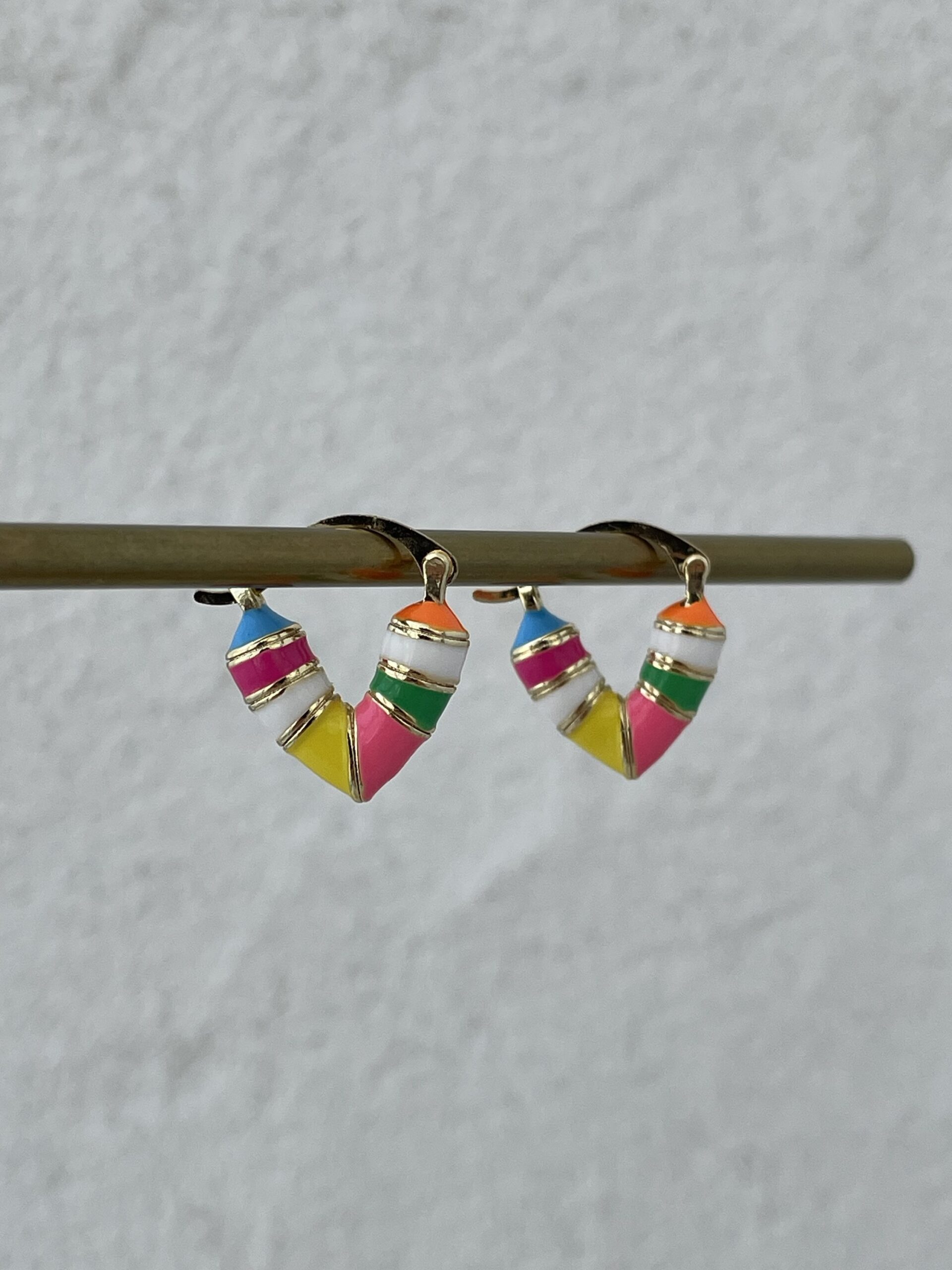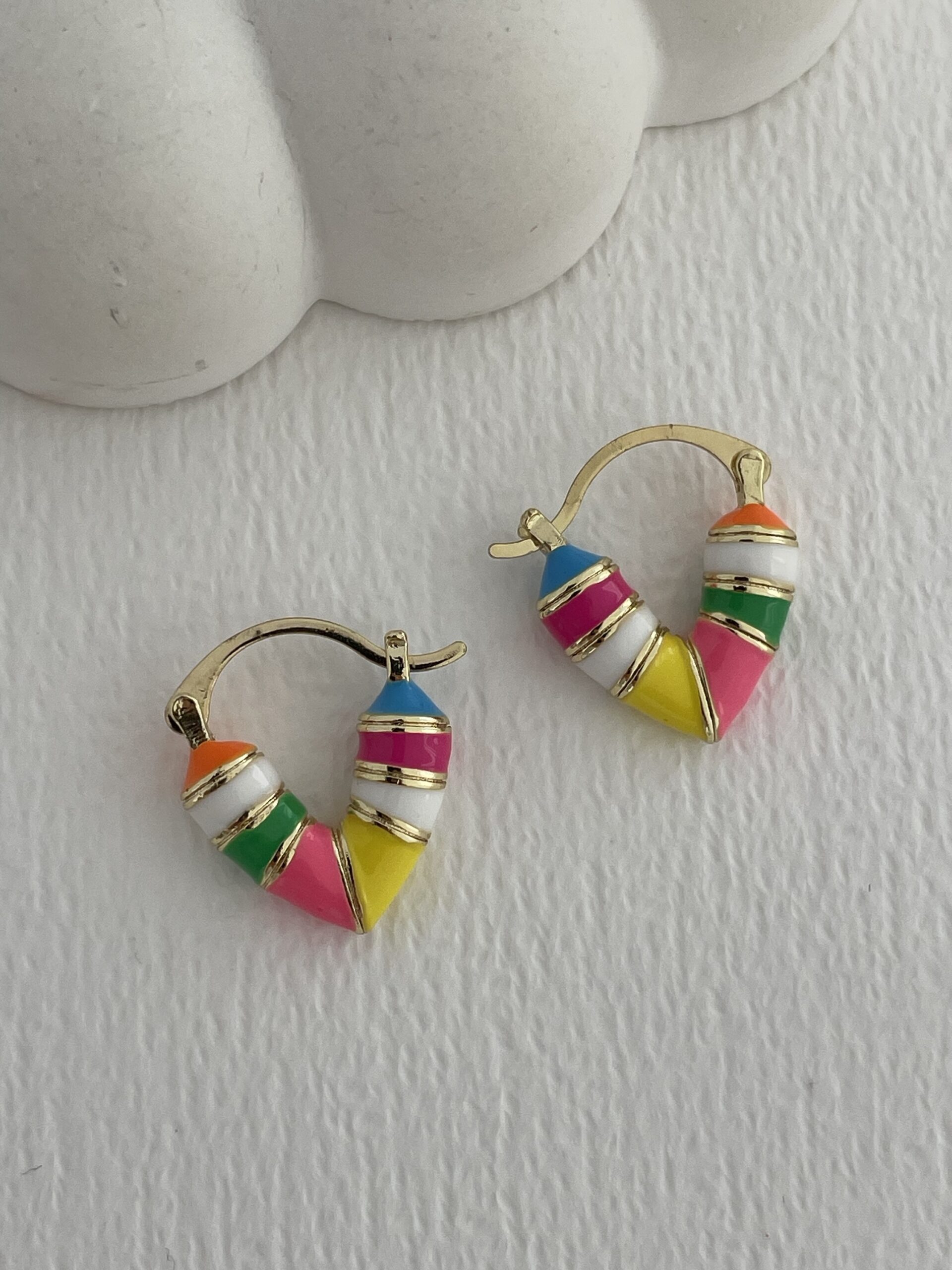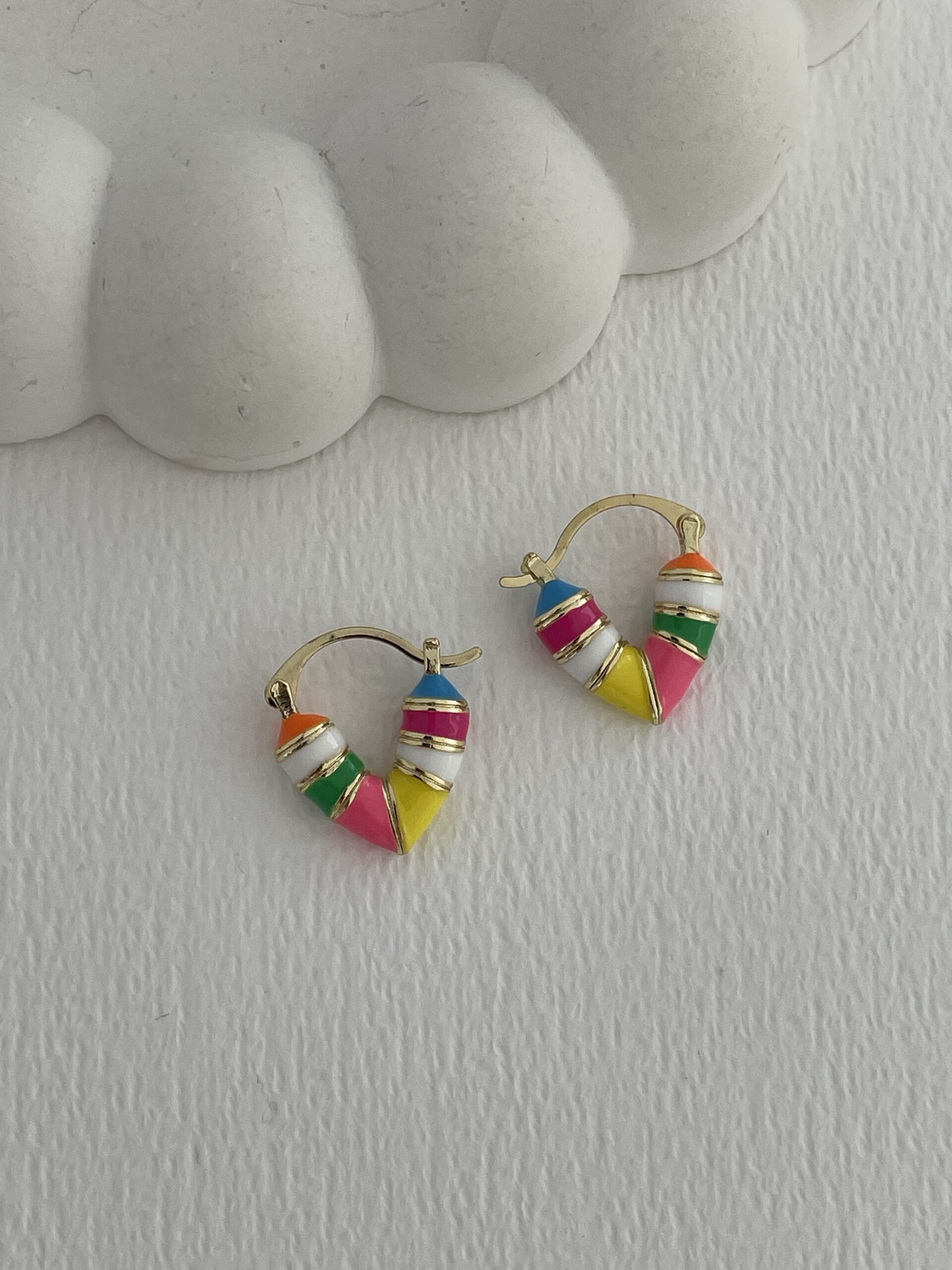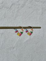 Özel Seri Çok Renkli Kalp Tasarım Mini Gold Küpe