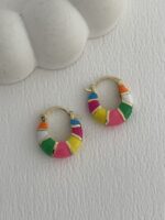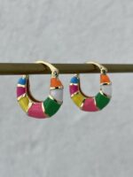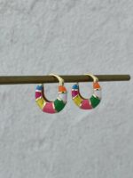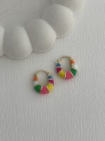 Özel Seri Çok Renkli Oval Tasarım Gold Halka Küpe
