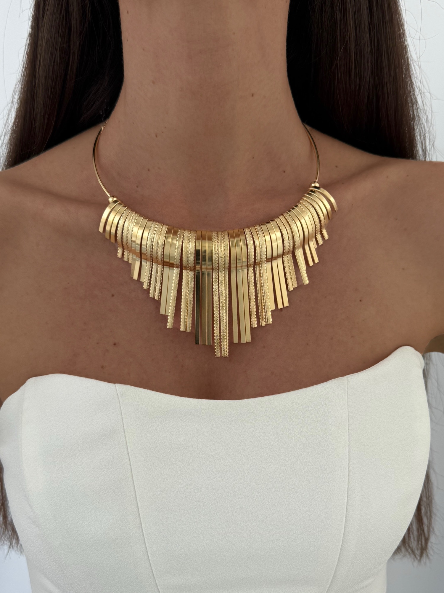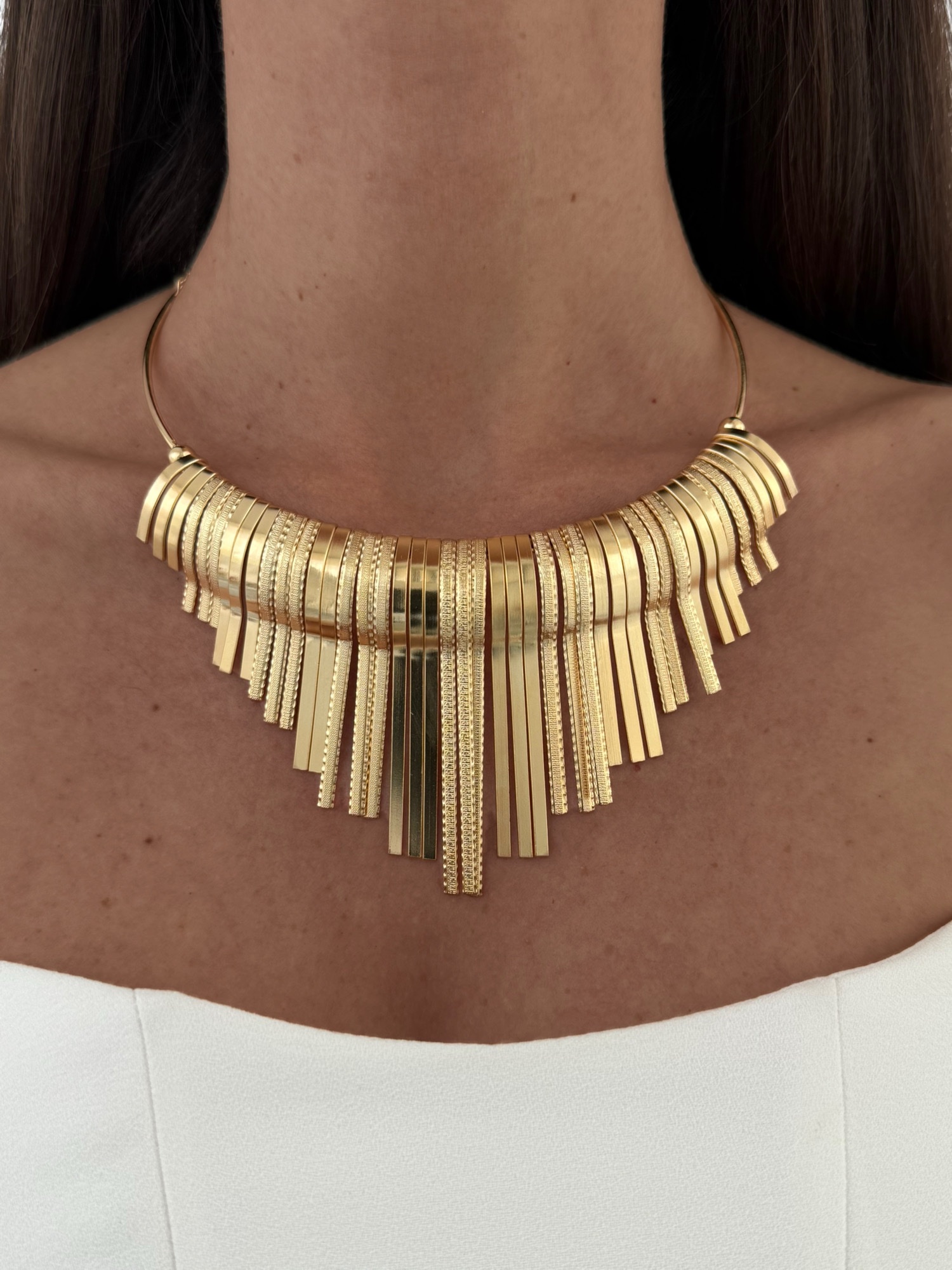 Özel Seri Çubuk Tasarım Desenli Gold Gerdan Kolye