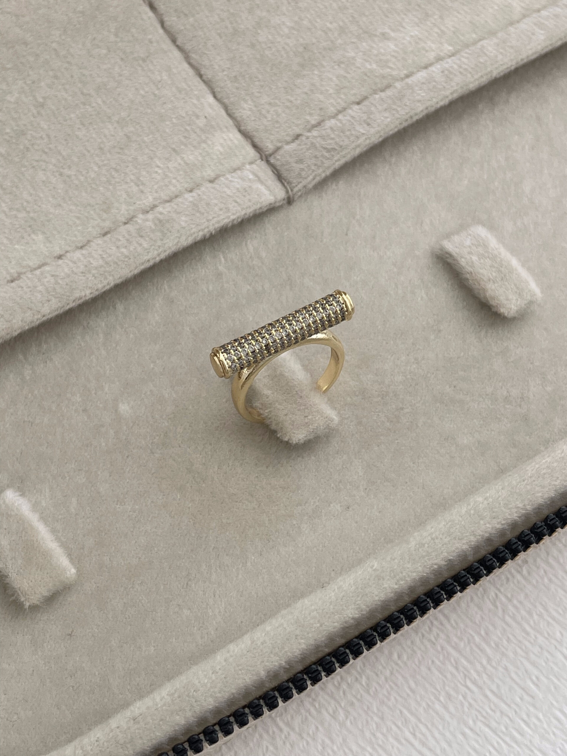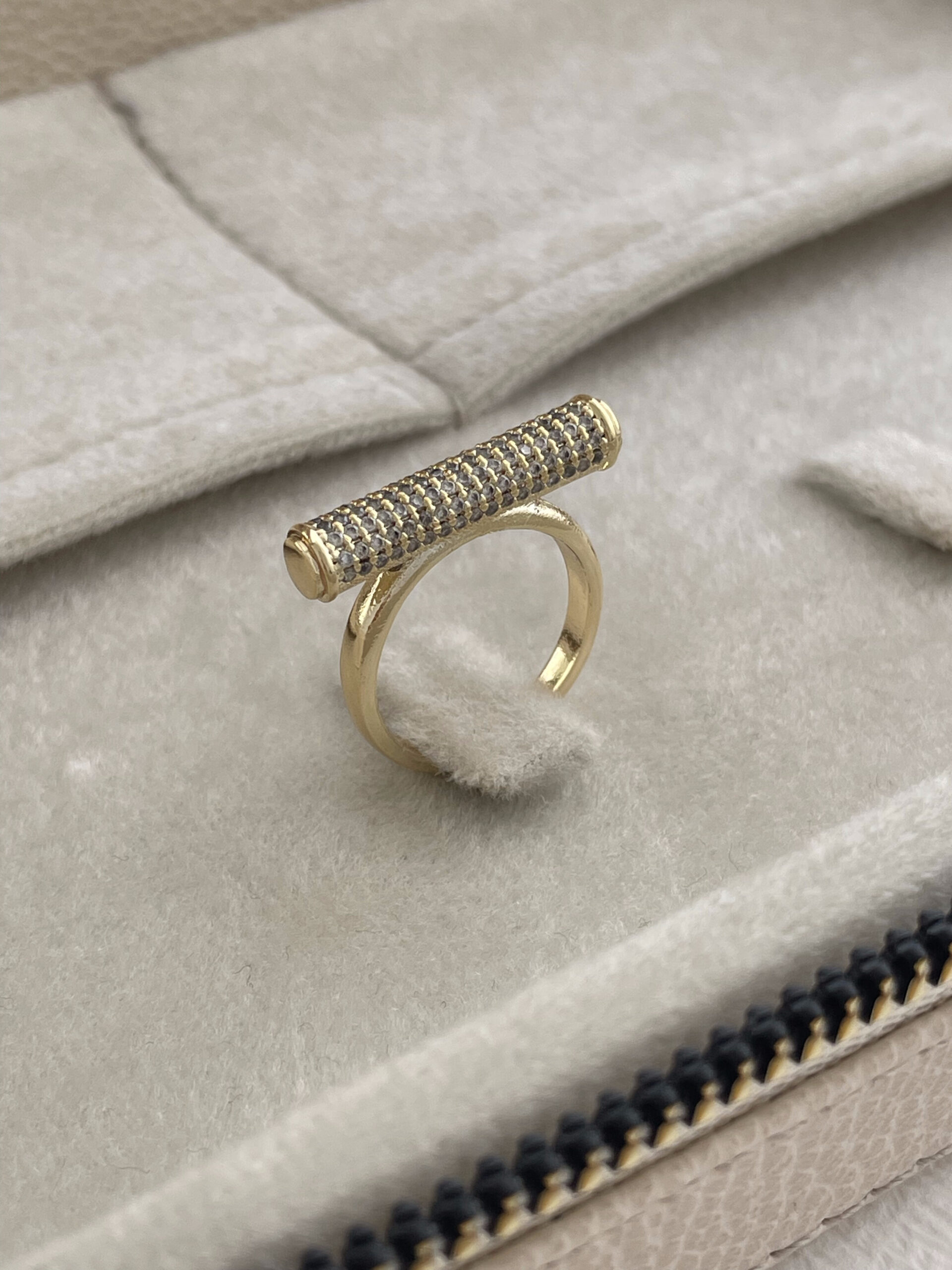 Özel Seri Çubuk Tasarım Zirkon Taşlı Ayarlanabilir Gold Yüzük