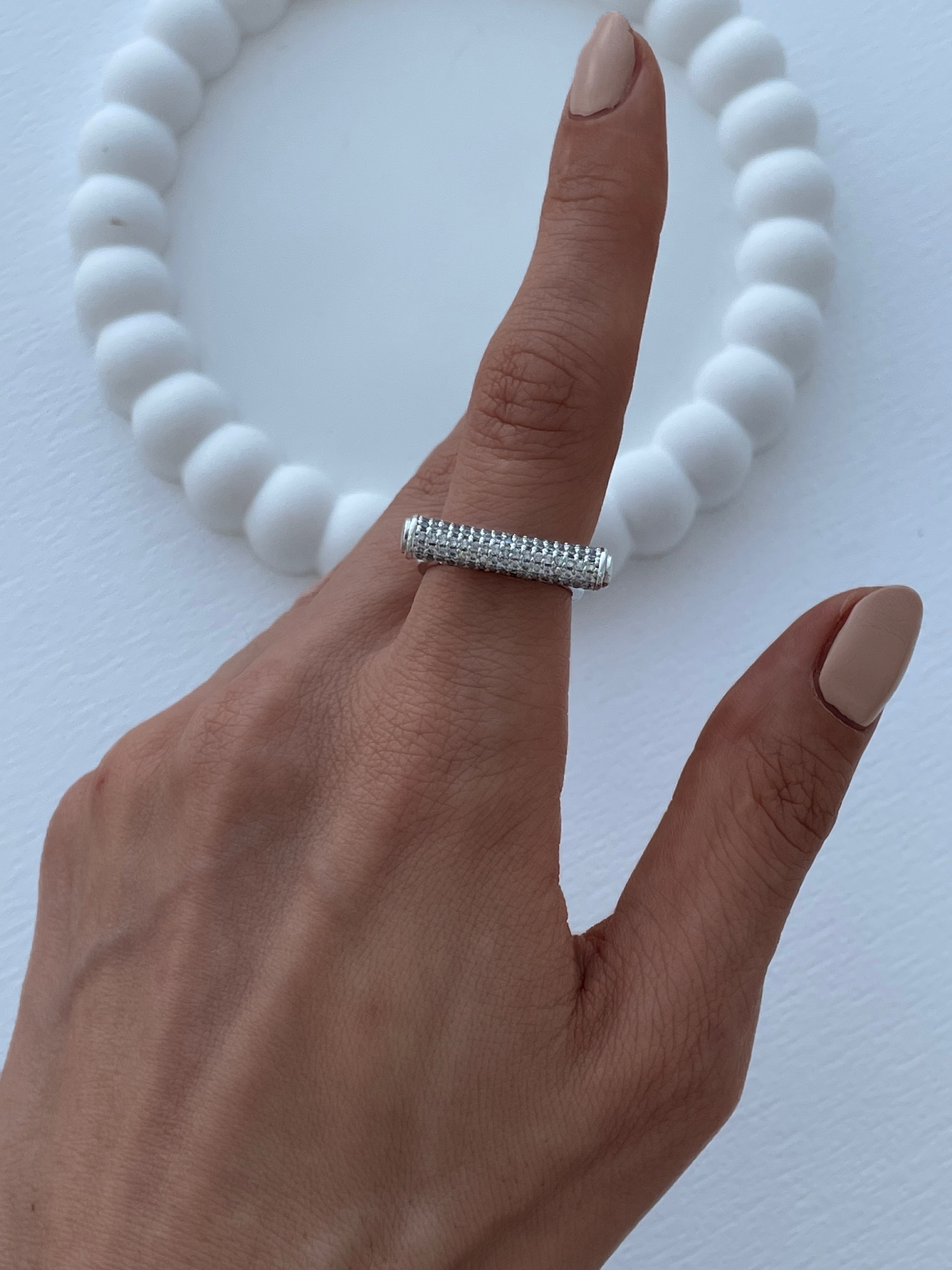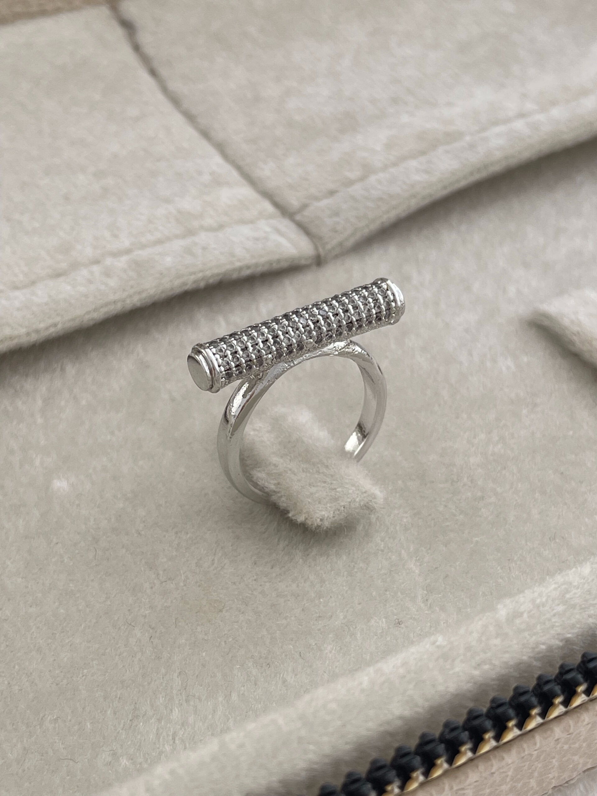 Özel Seri Çubuk Tasarım Zirkon Taşlı Ayarlanabilir Gümüş Yüzük