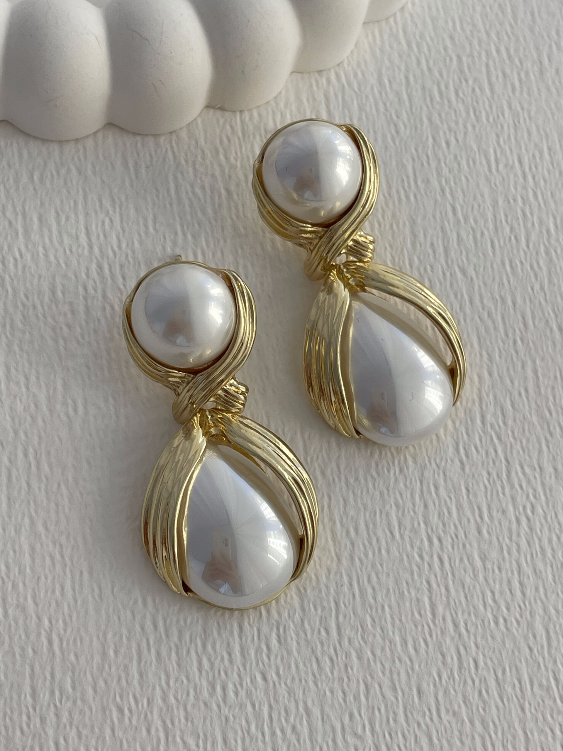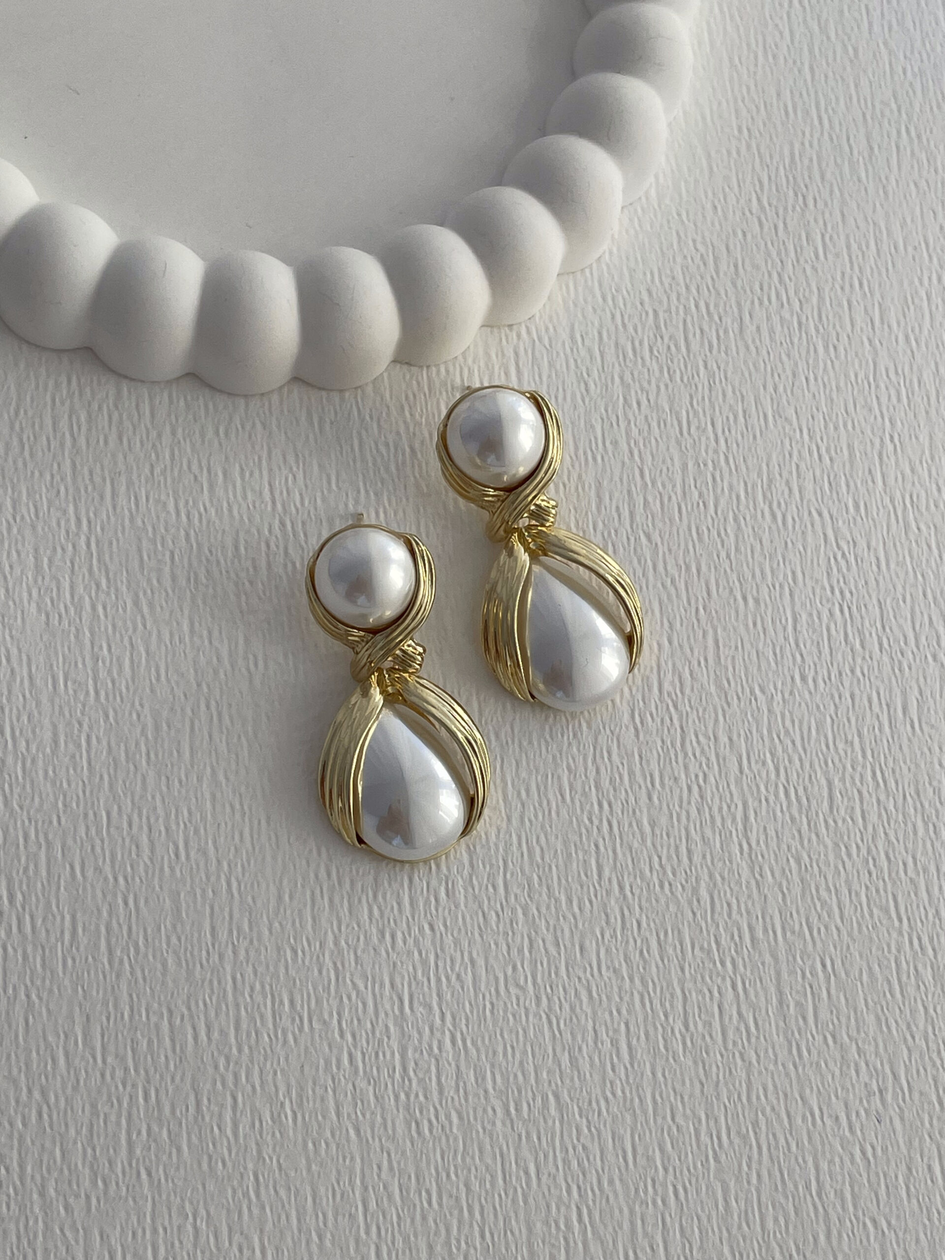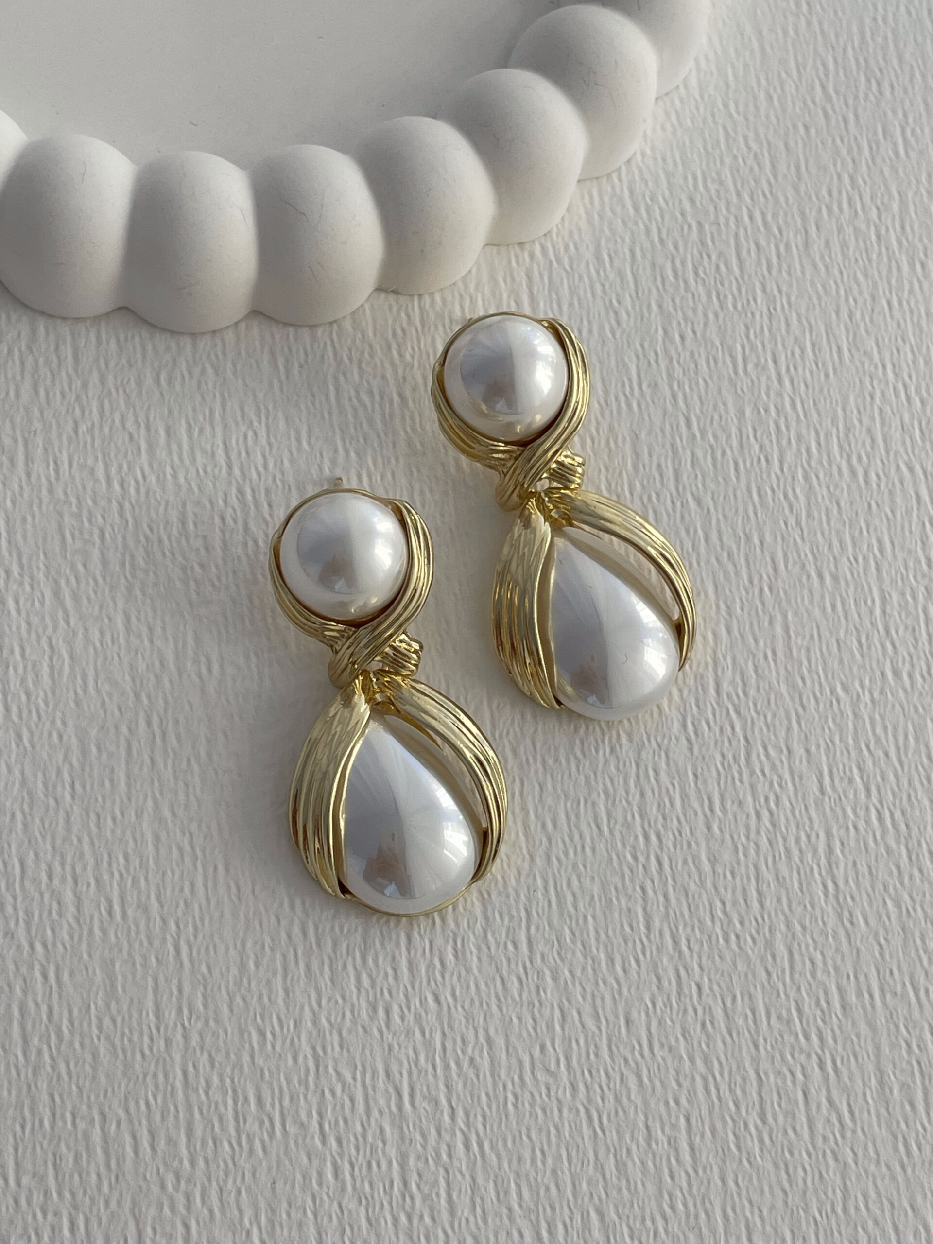 Özel Seri Damla İnci Detay Düğüm Tasarım Gold Küpe