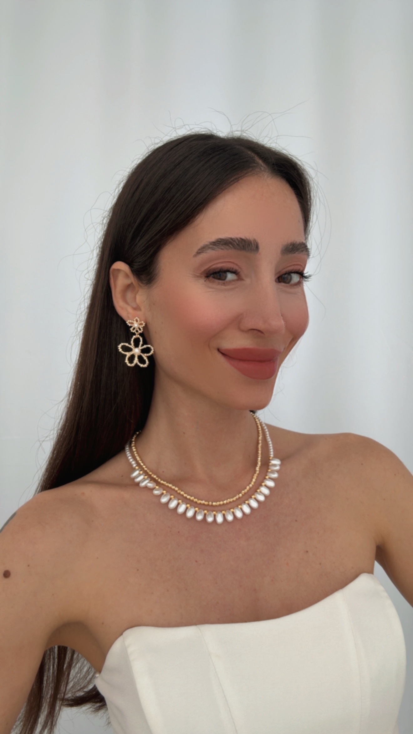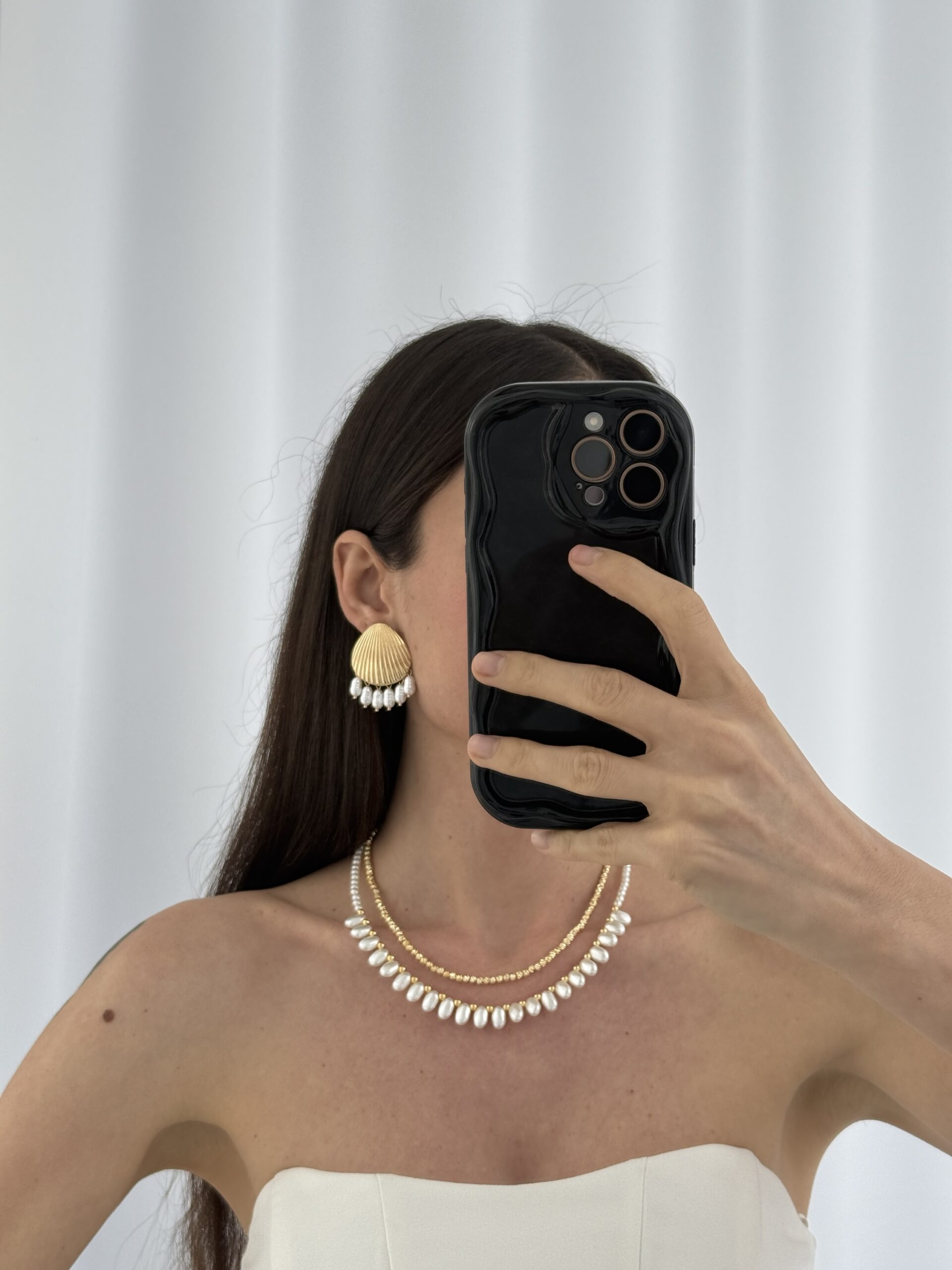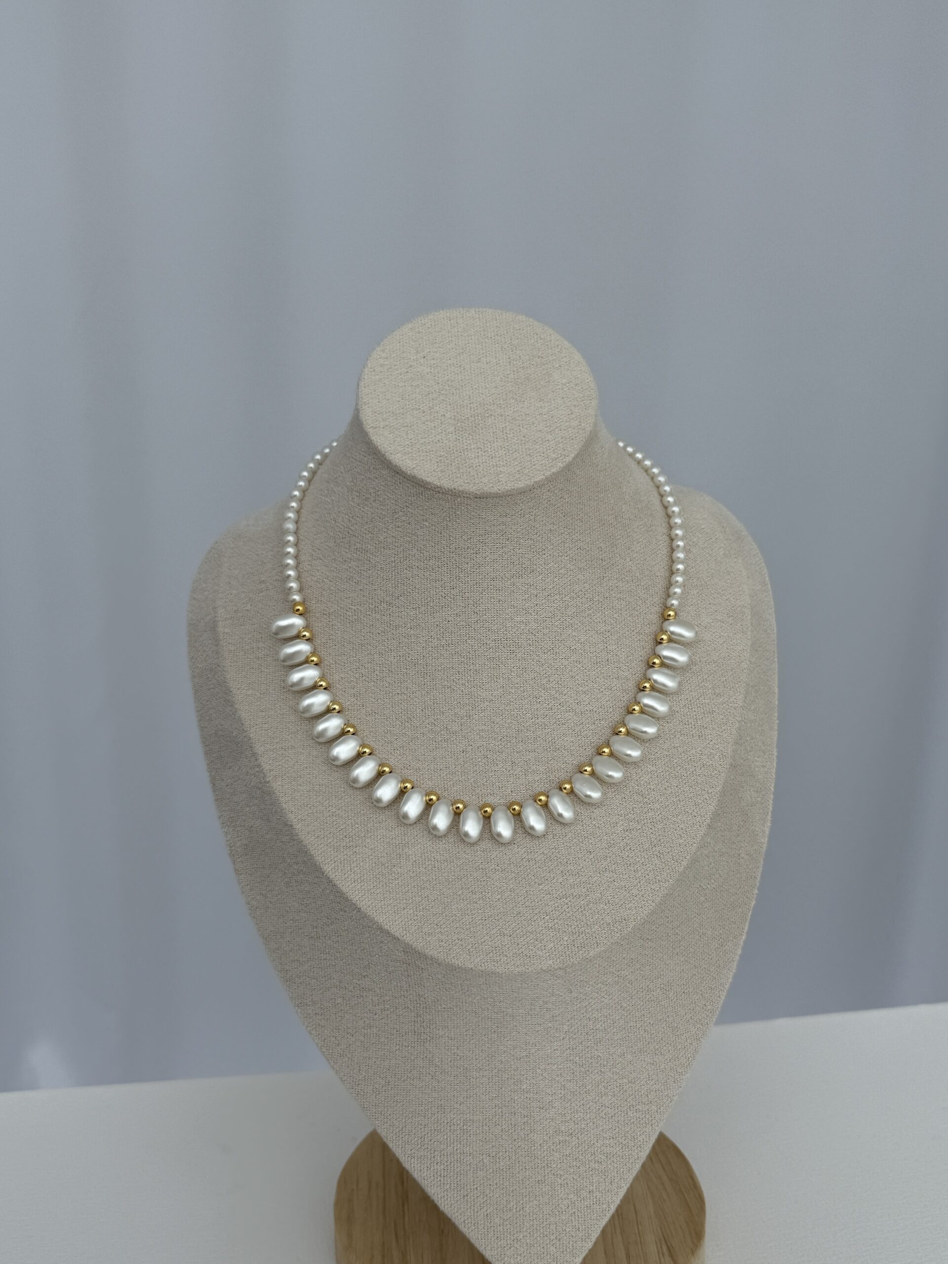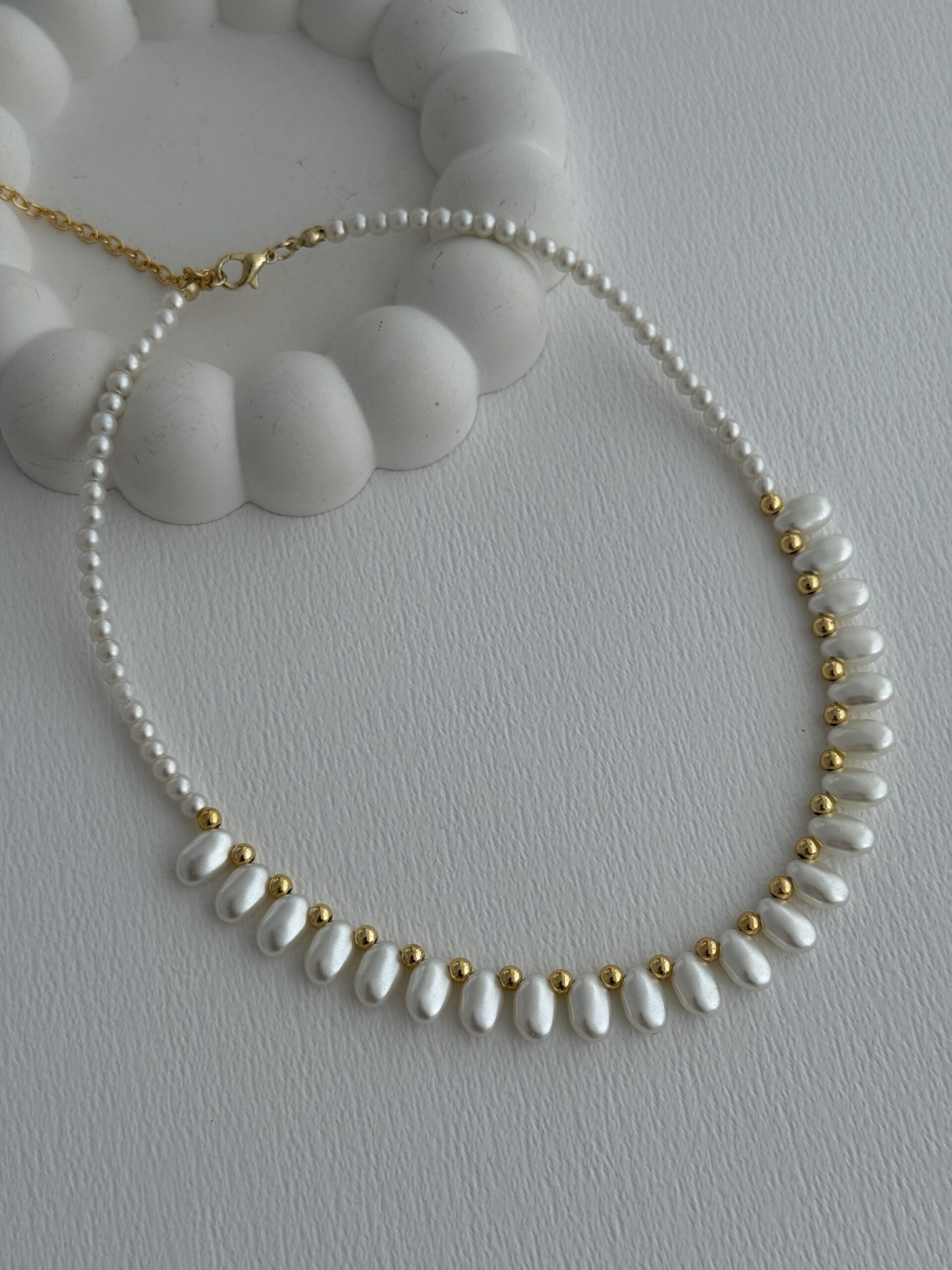 Özel Seri Damla İnci Sıralı Gold Kolye