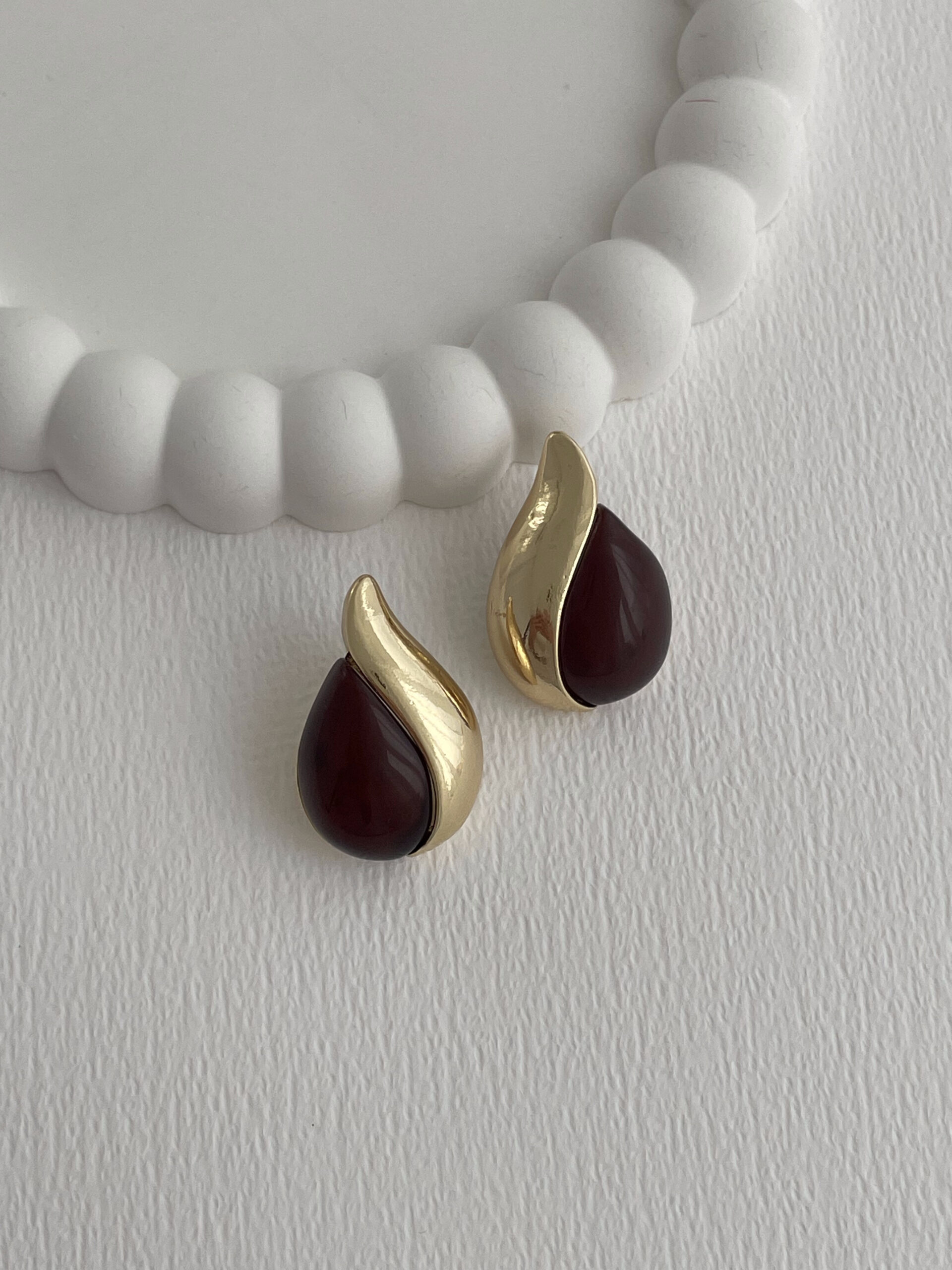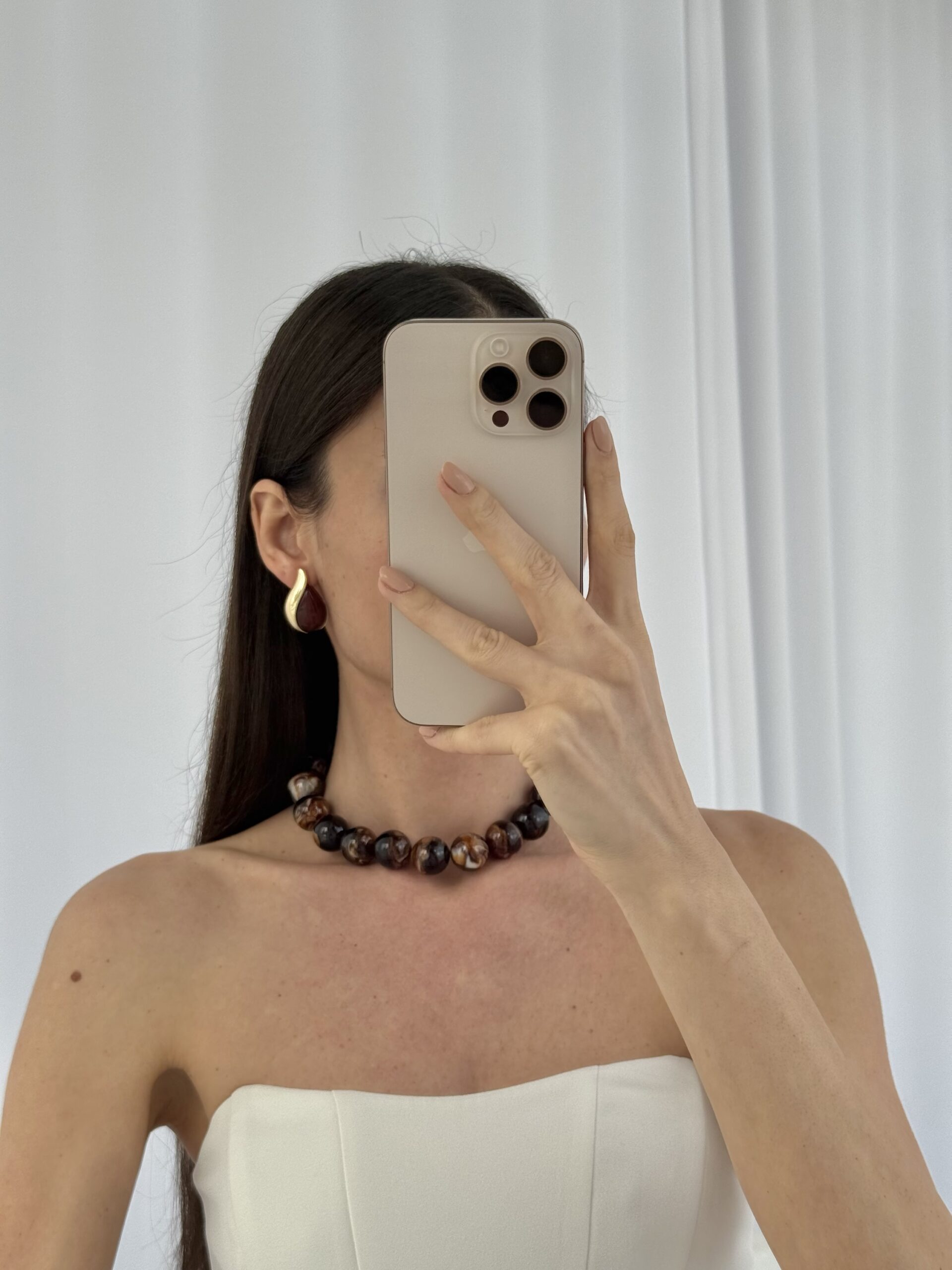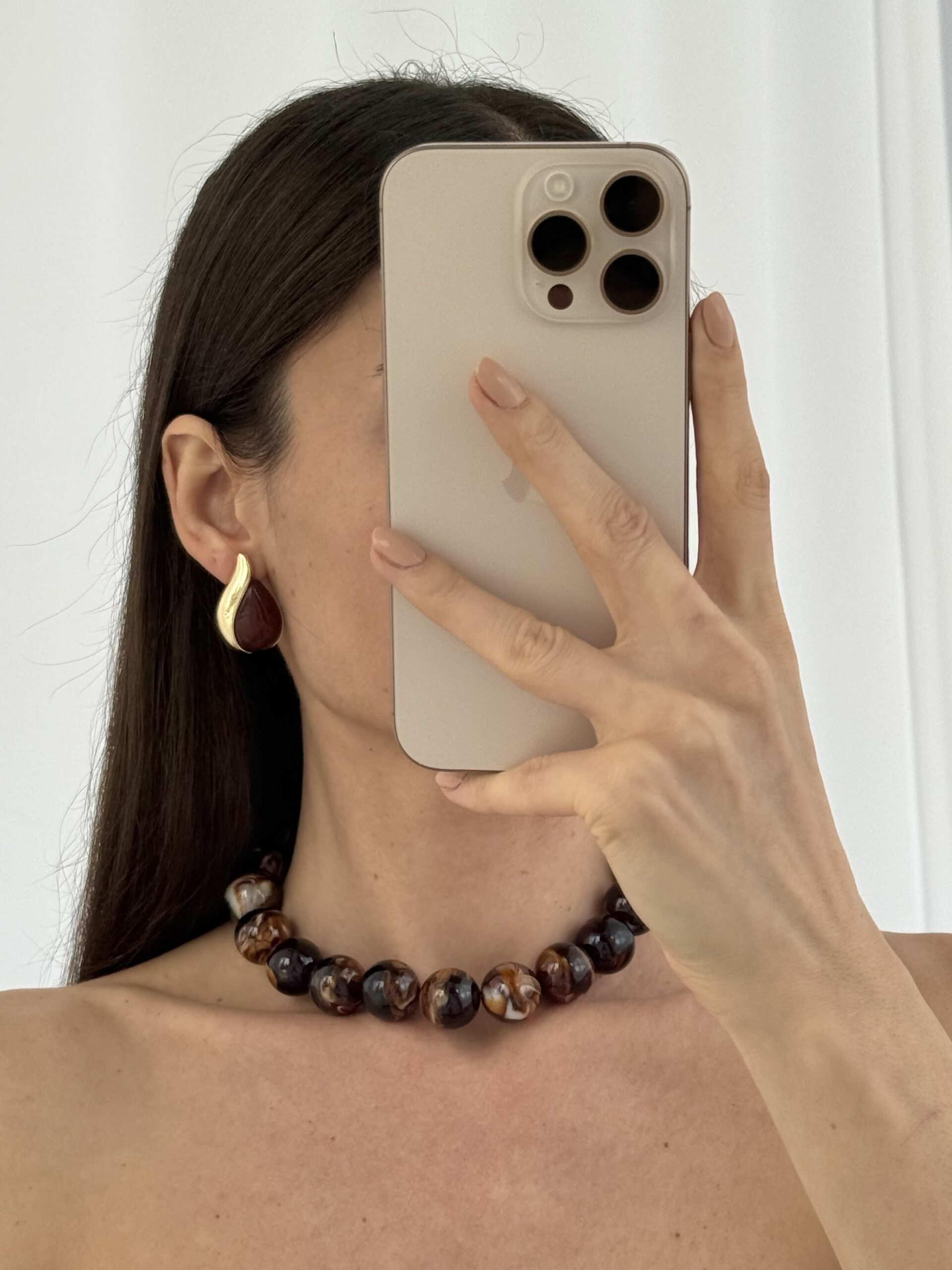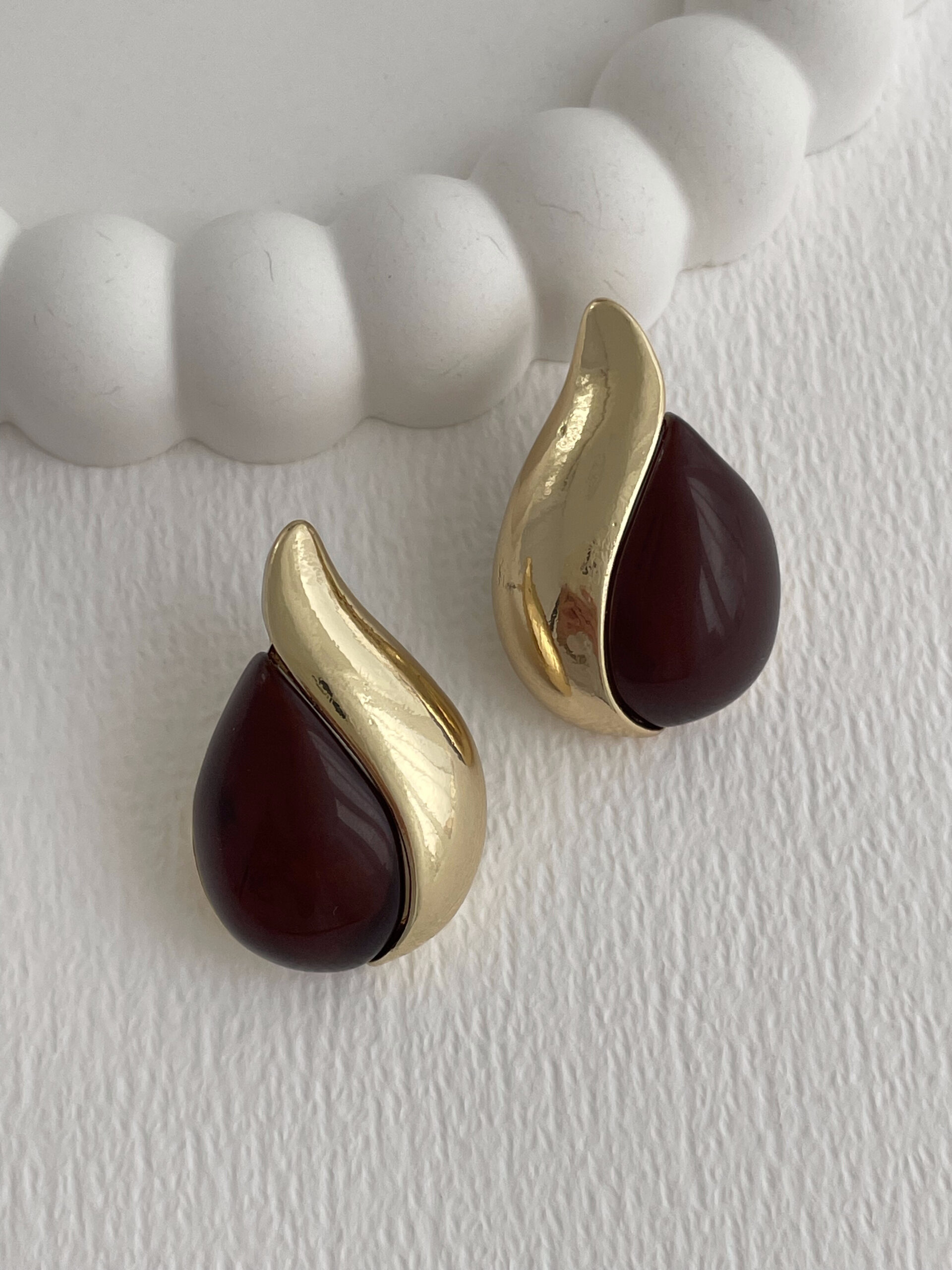 Özel Seri Damla Model Kahverengi Mineli Gold Küpe