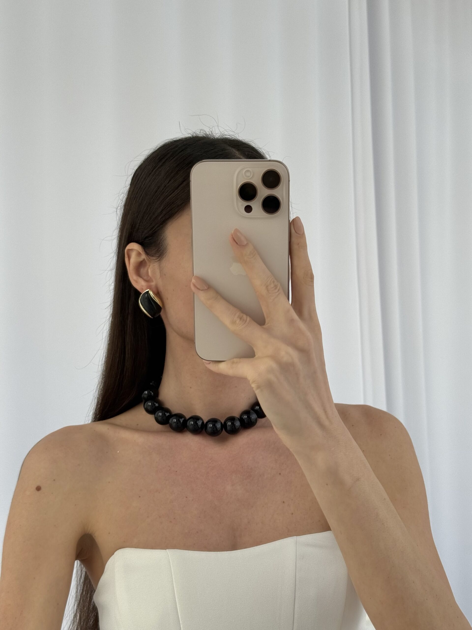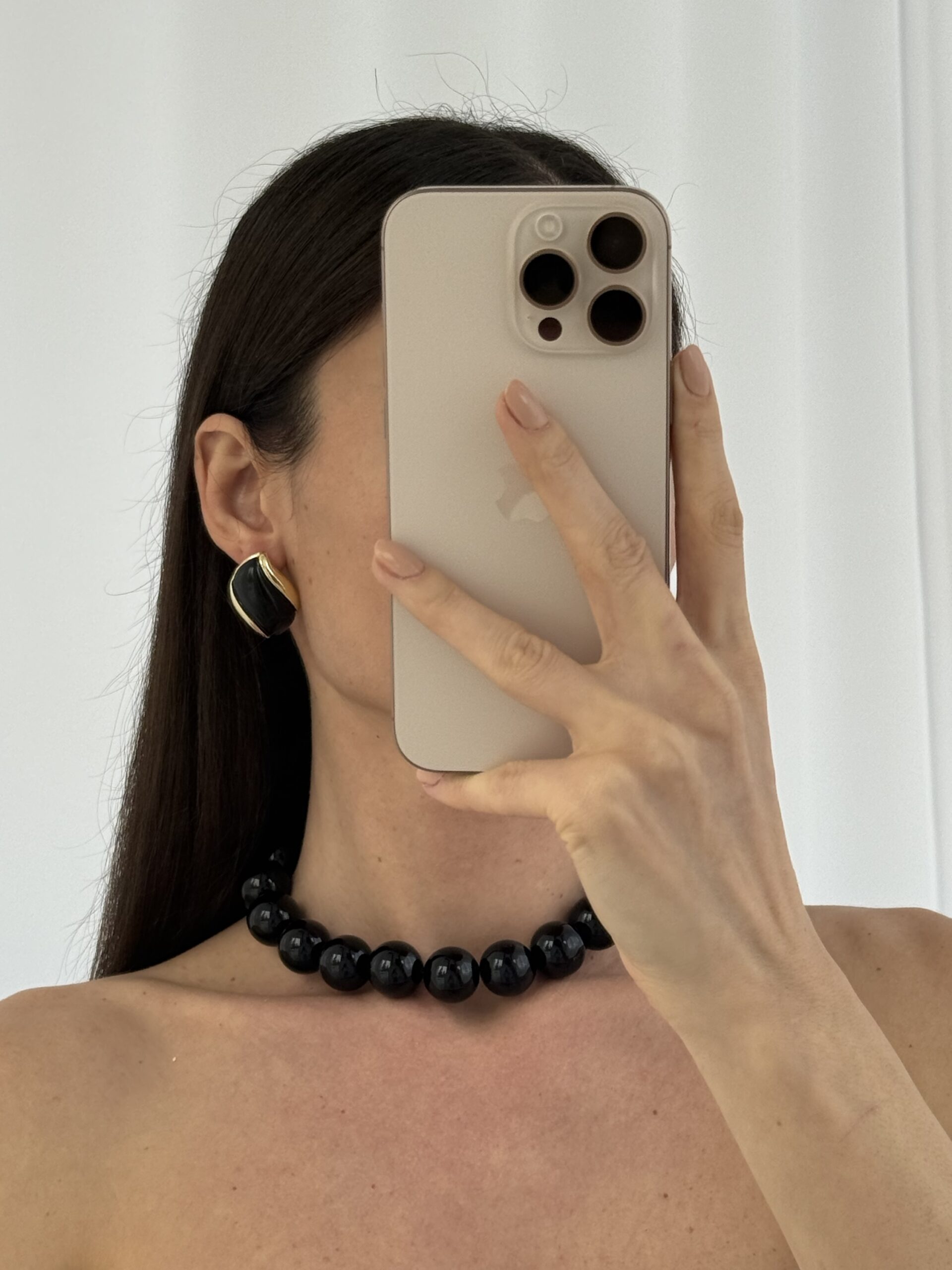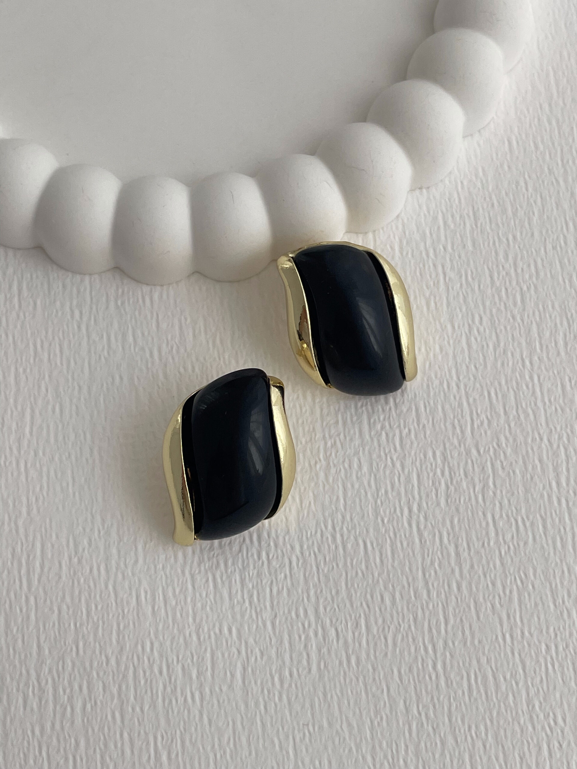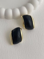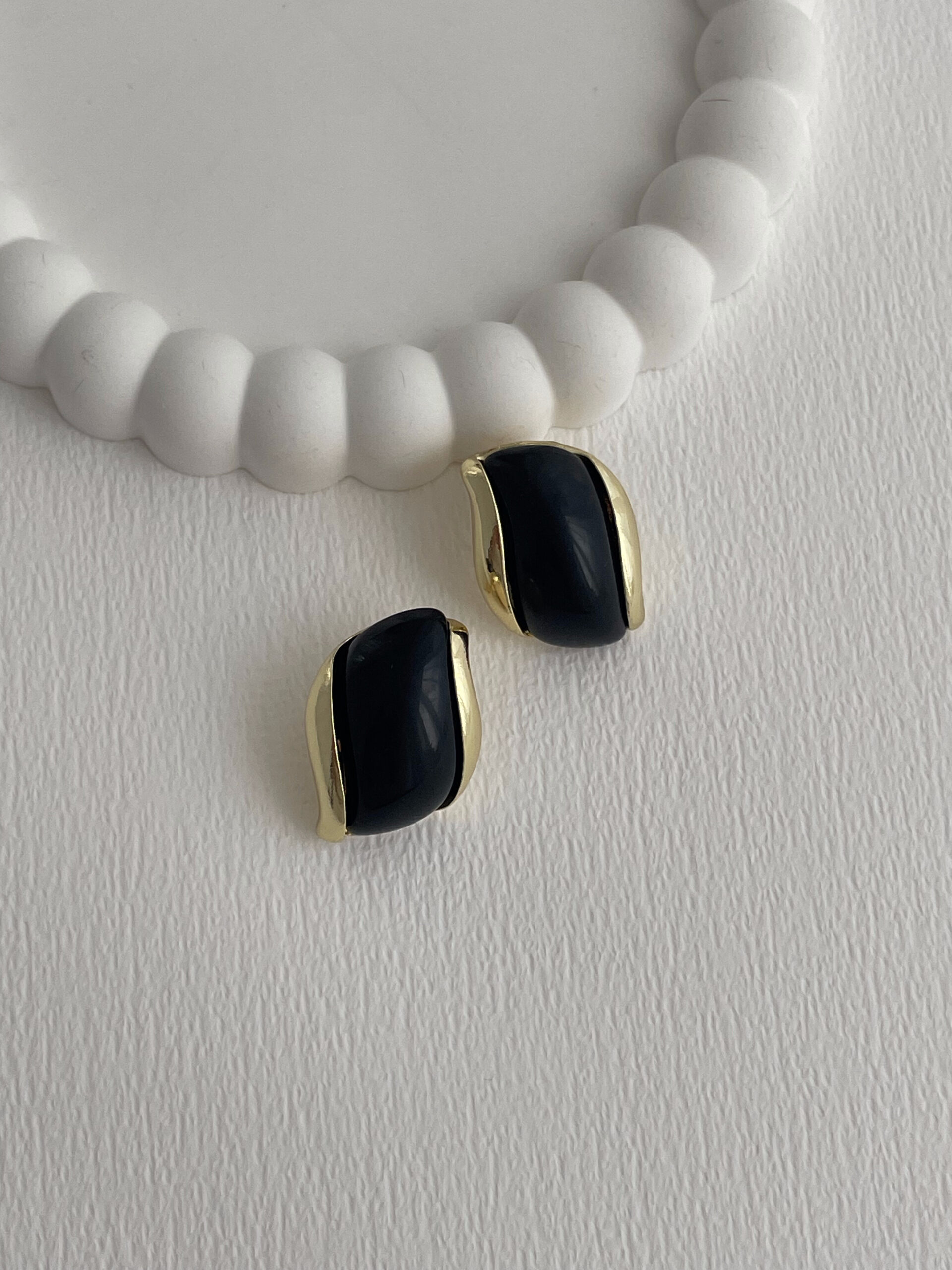 Özel Seri Damla Model Siyah Kemik Detay Gold Küpe