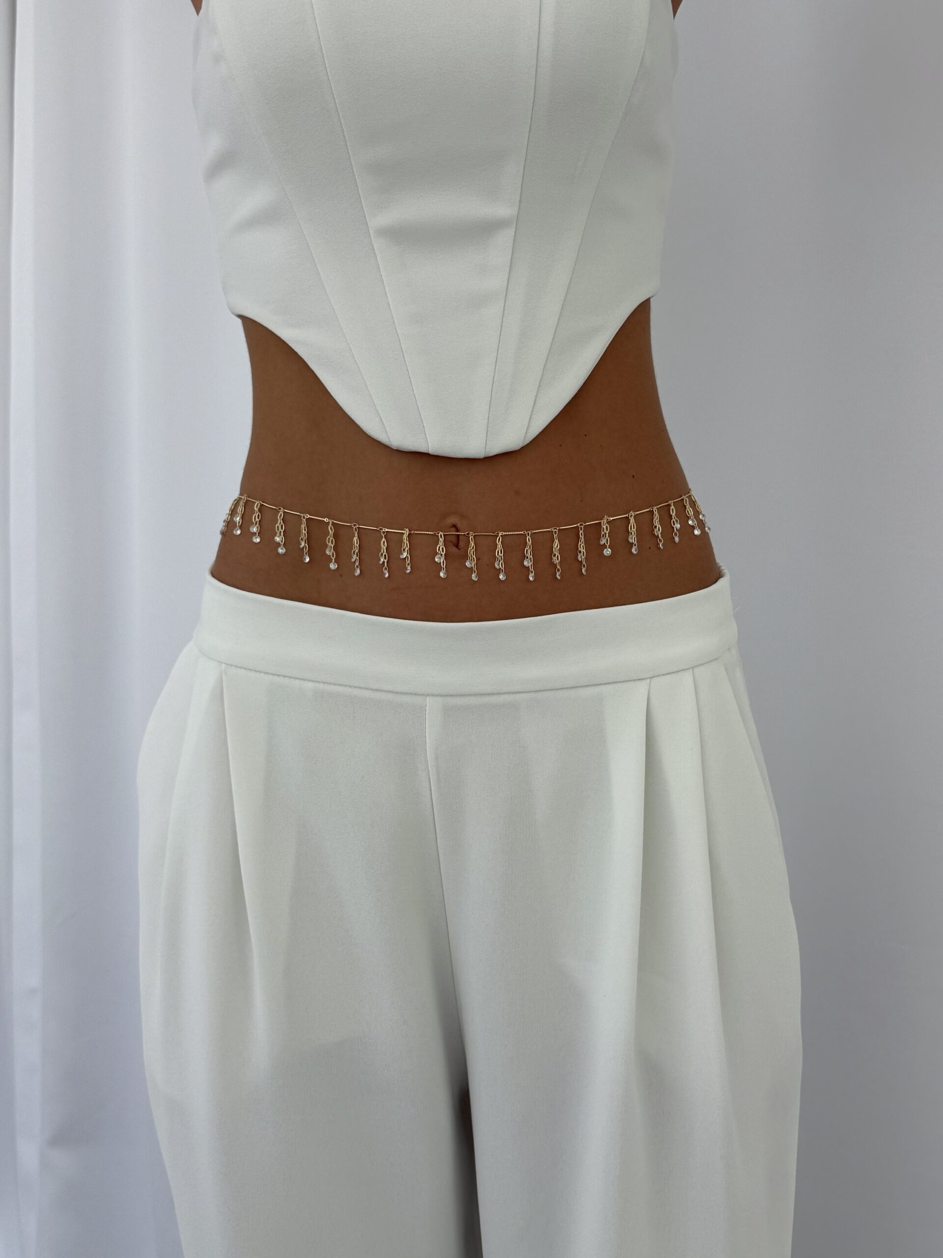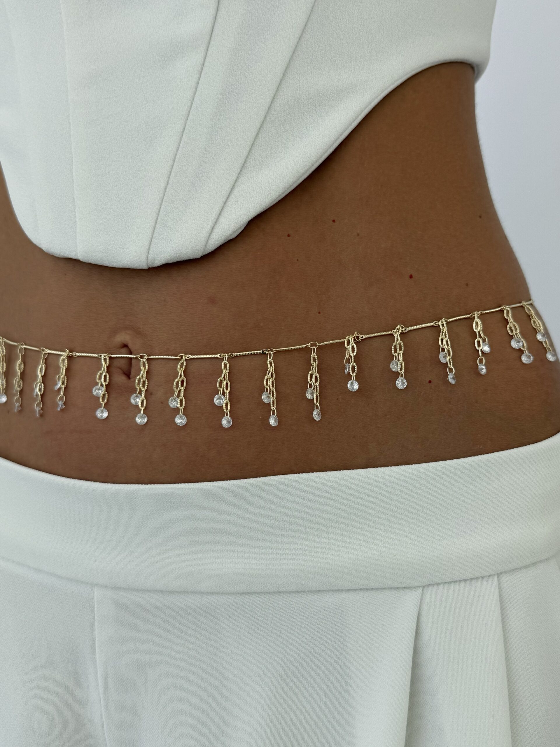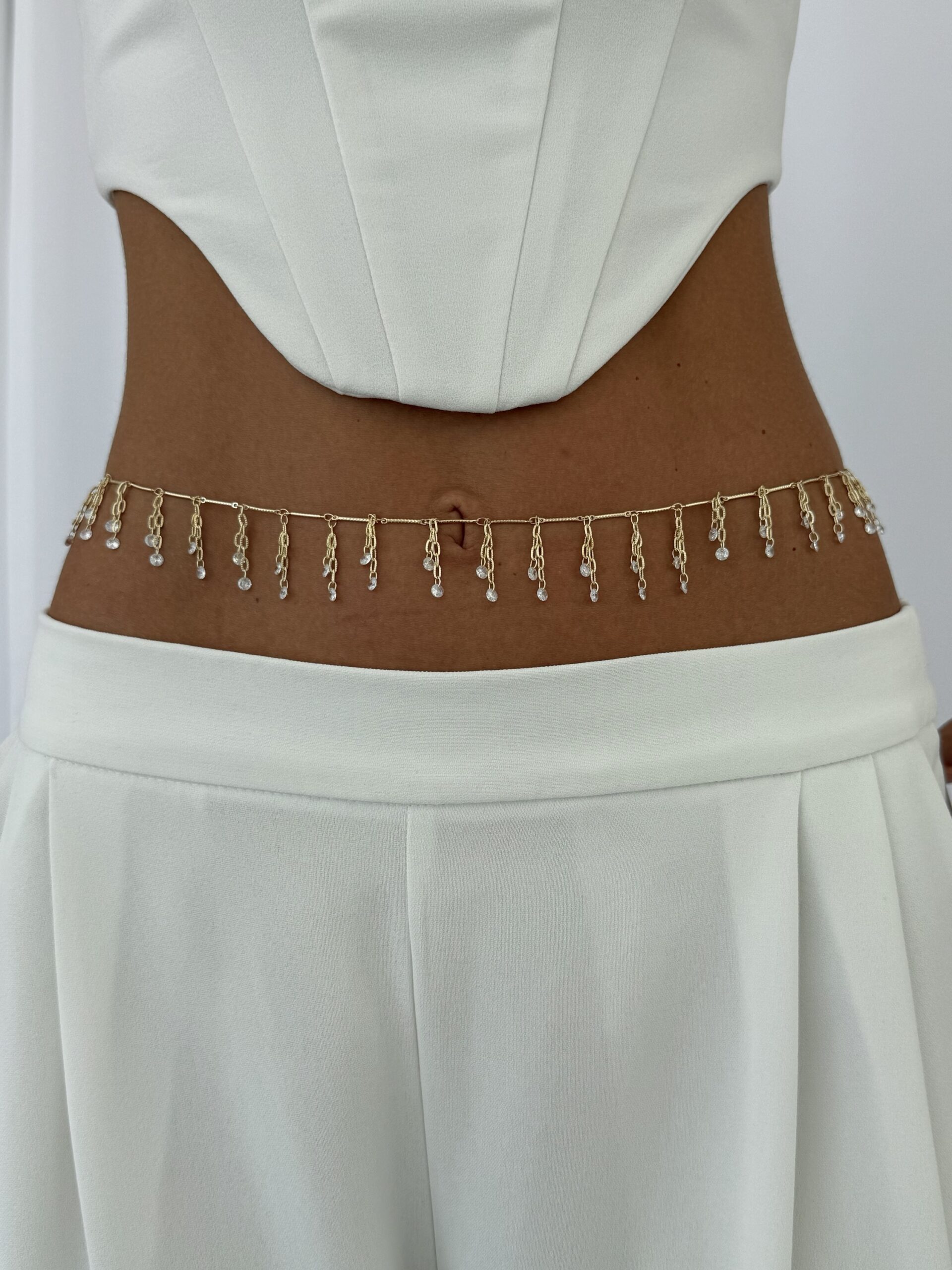 Özel Seri Damla Taş Sallantılı Gold Zincir Bel Zinciri