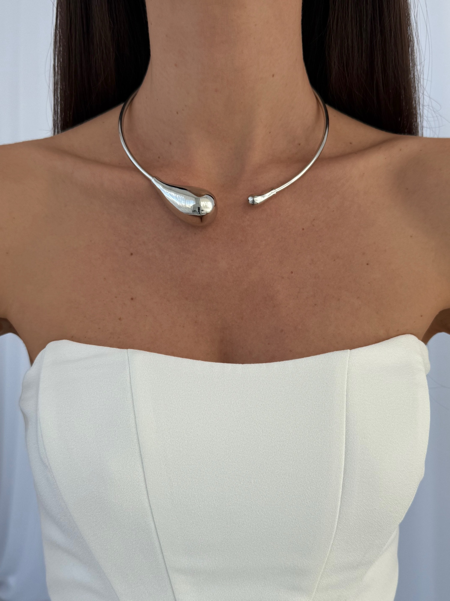 Özel Seri Damla Tasarım Gümüş Choker Kolye
