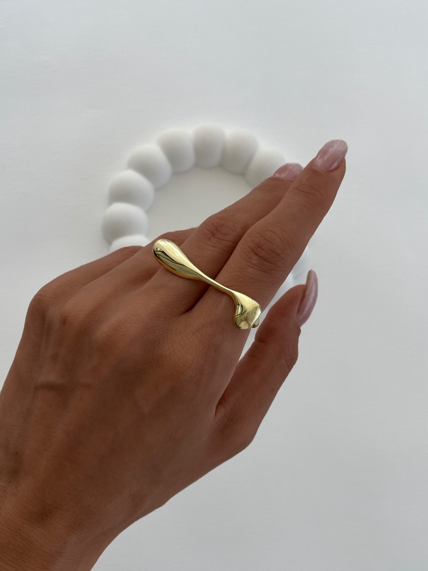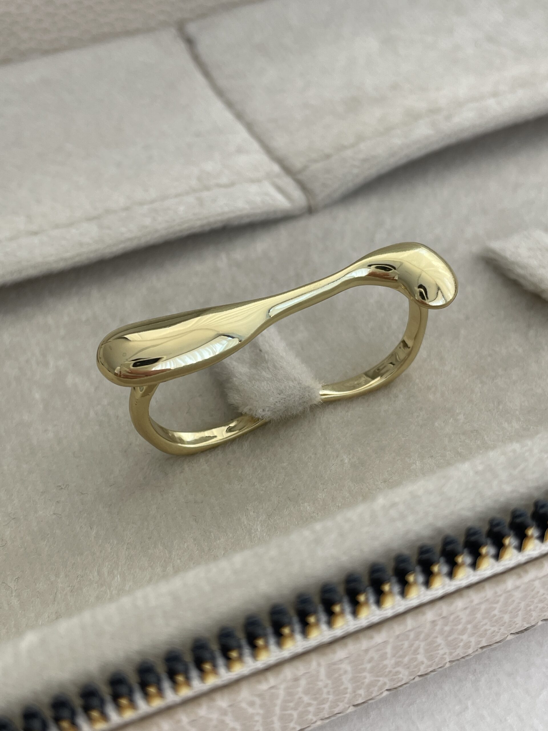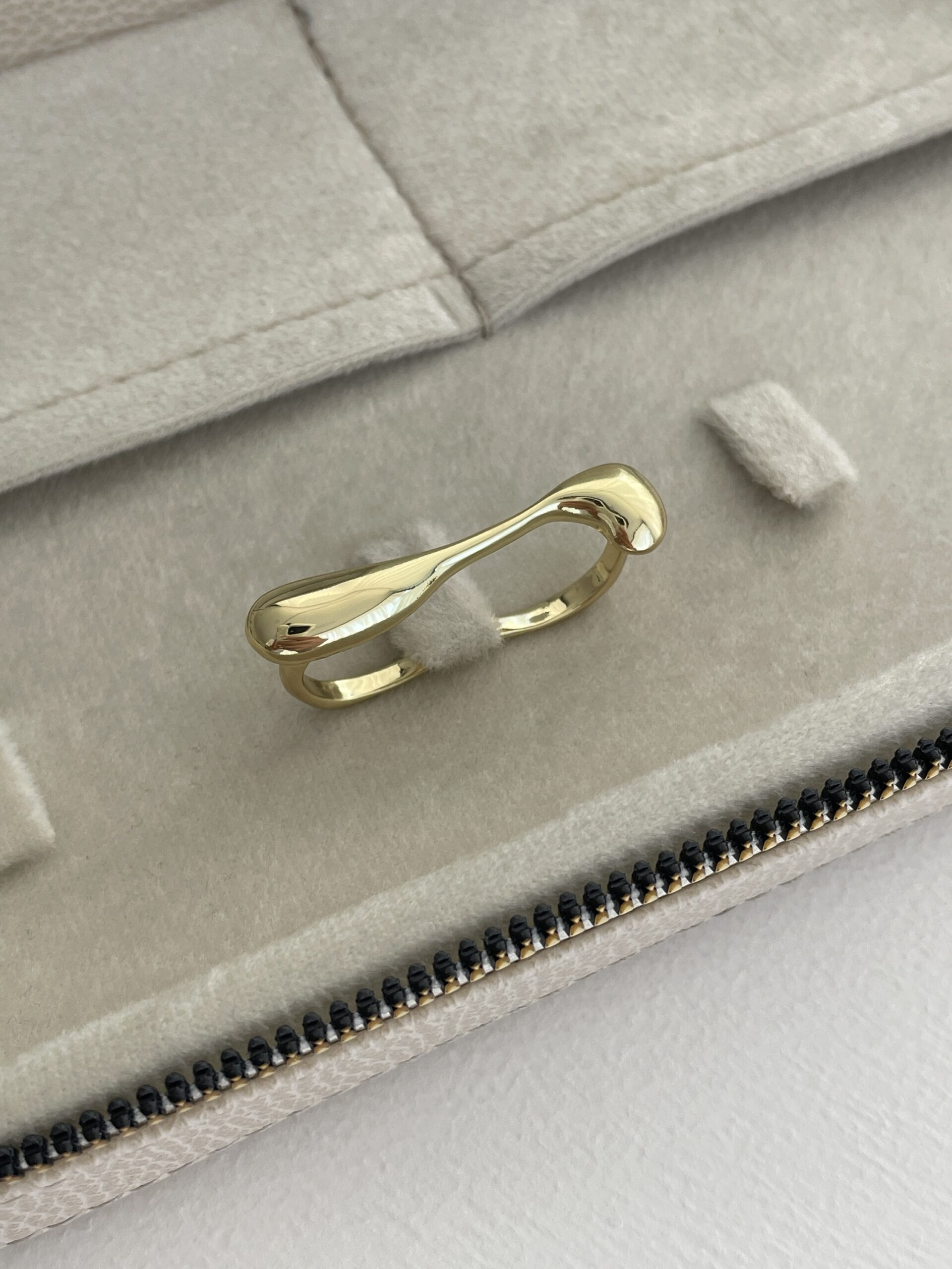 Özel Seri Damla Tasarım İkili Parmak Geçmeli Gold Yüzük