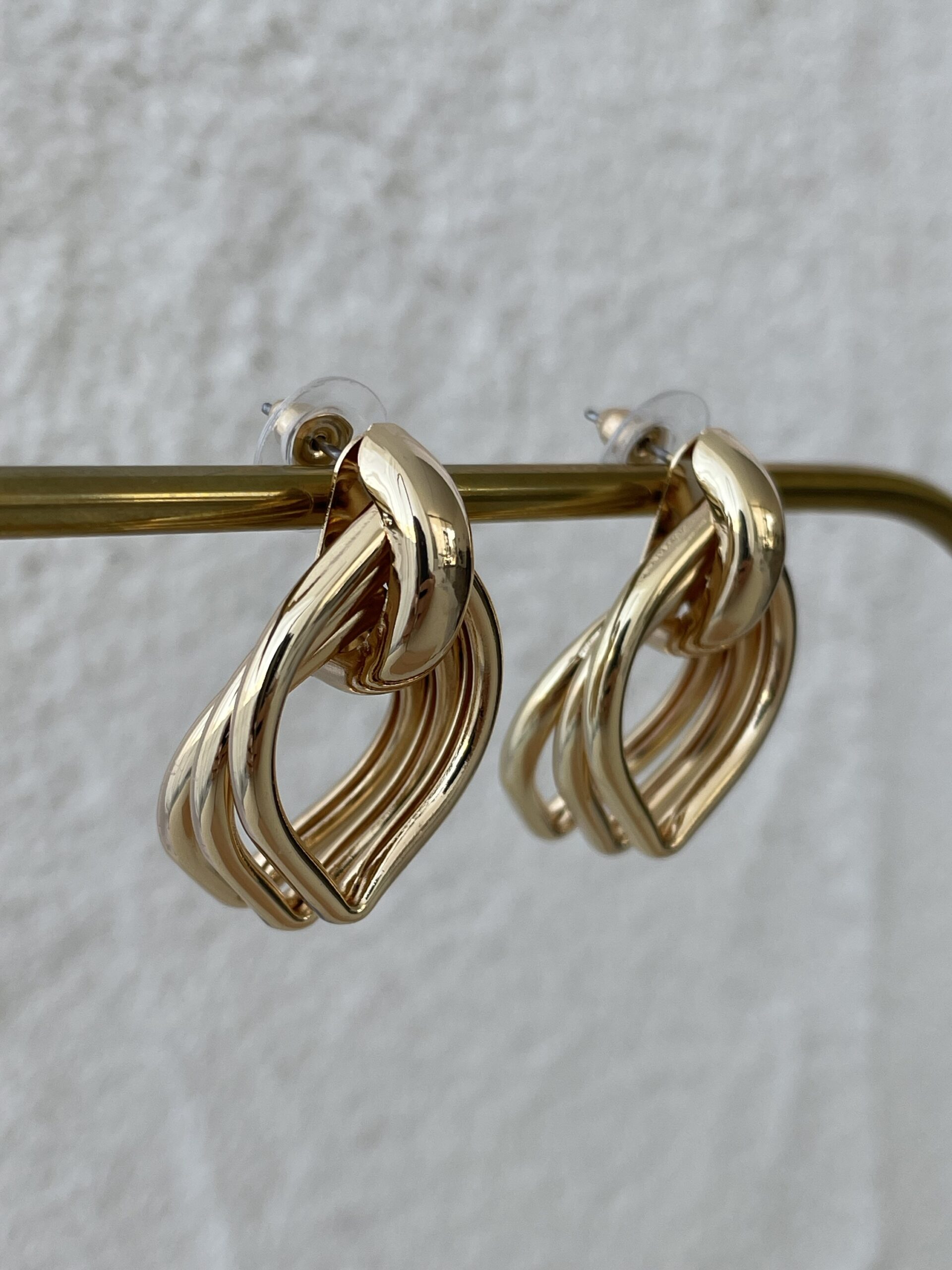 Özel Seri Damla Tasarım Üçlü Gold Küpe