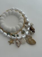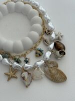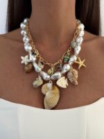 Özel Seri Deniz Kabuğu Charm İnci Gold İkili Marka Model Kolye