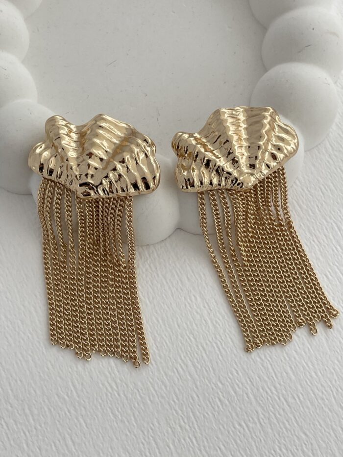 Özel Seri Deniz Kabuğu Tasarım Maksi Boy Gold Küpe