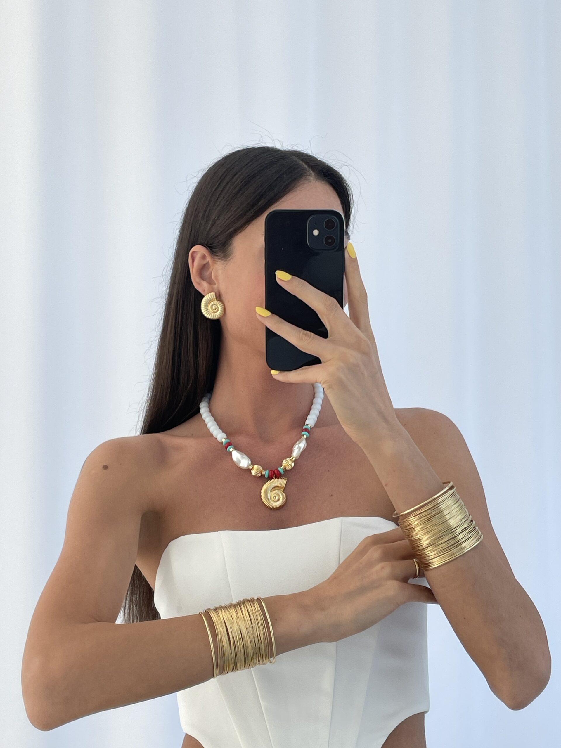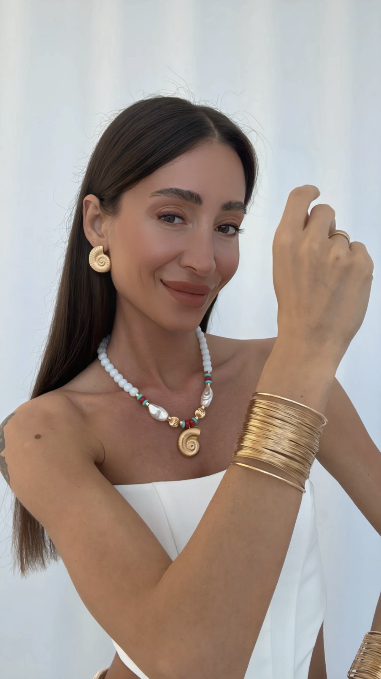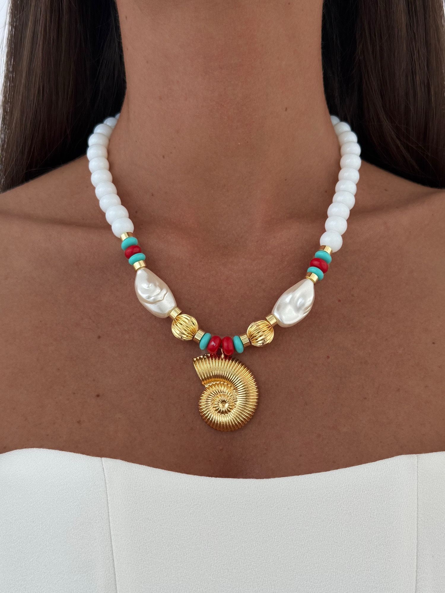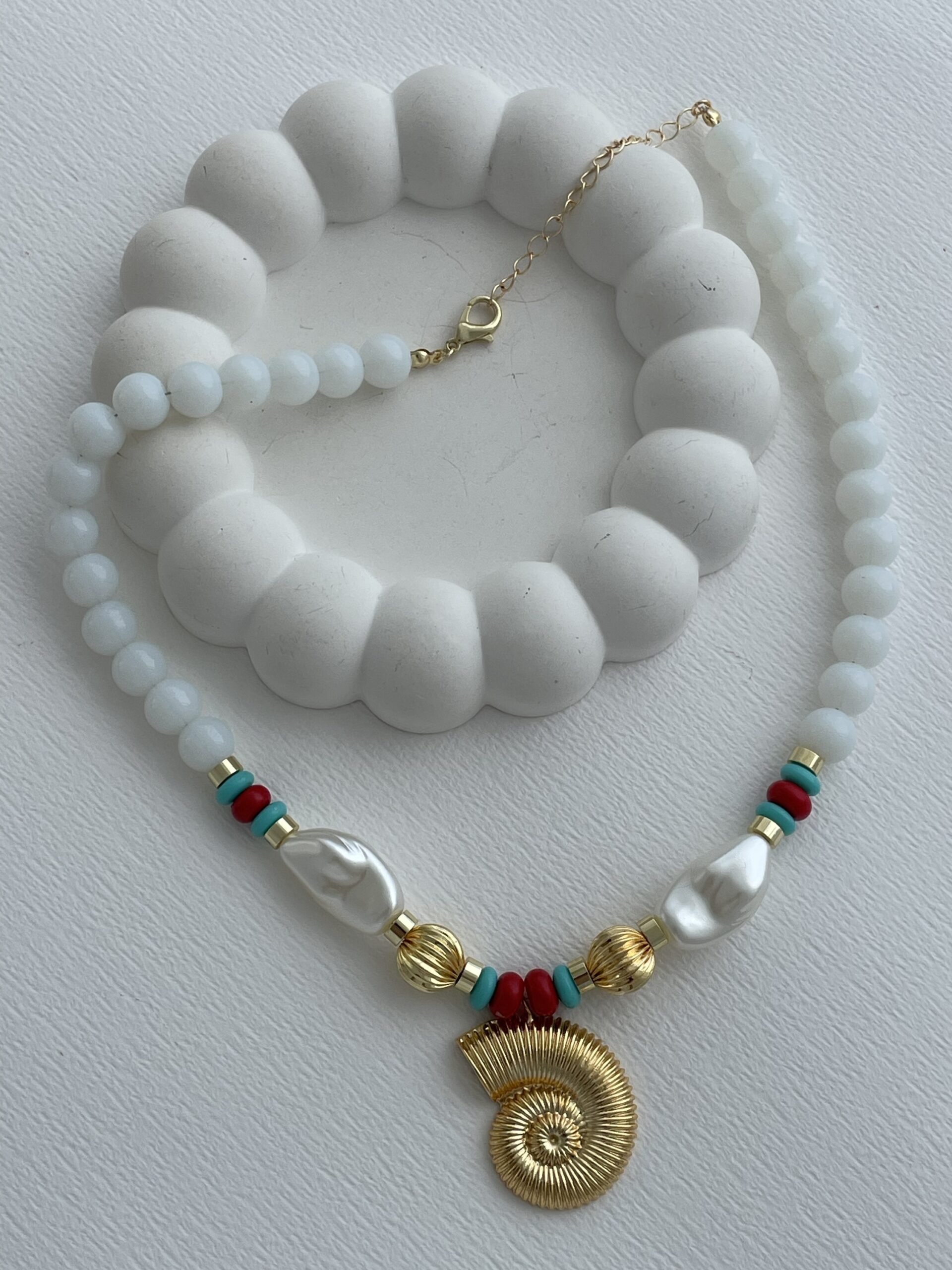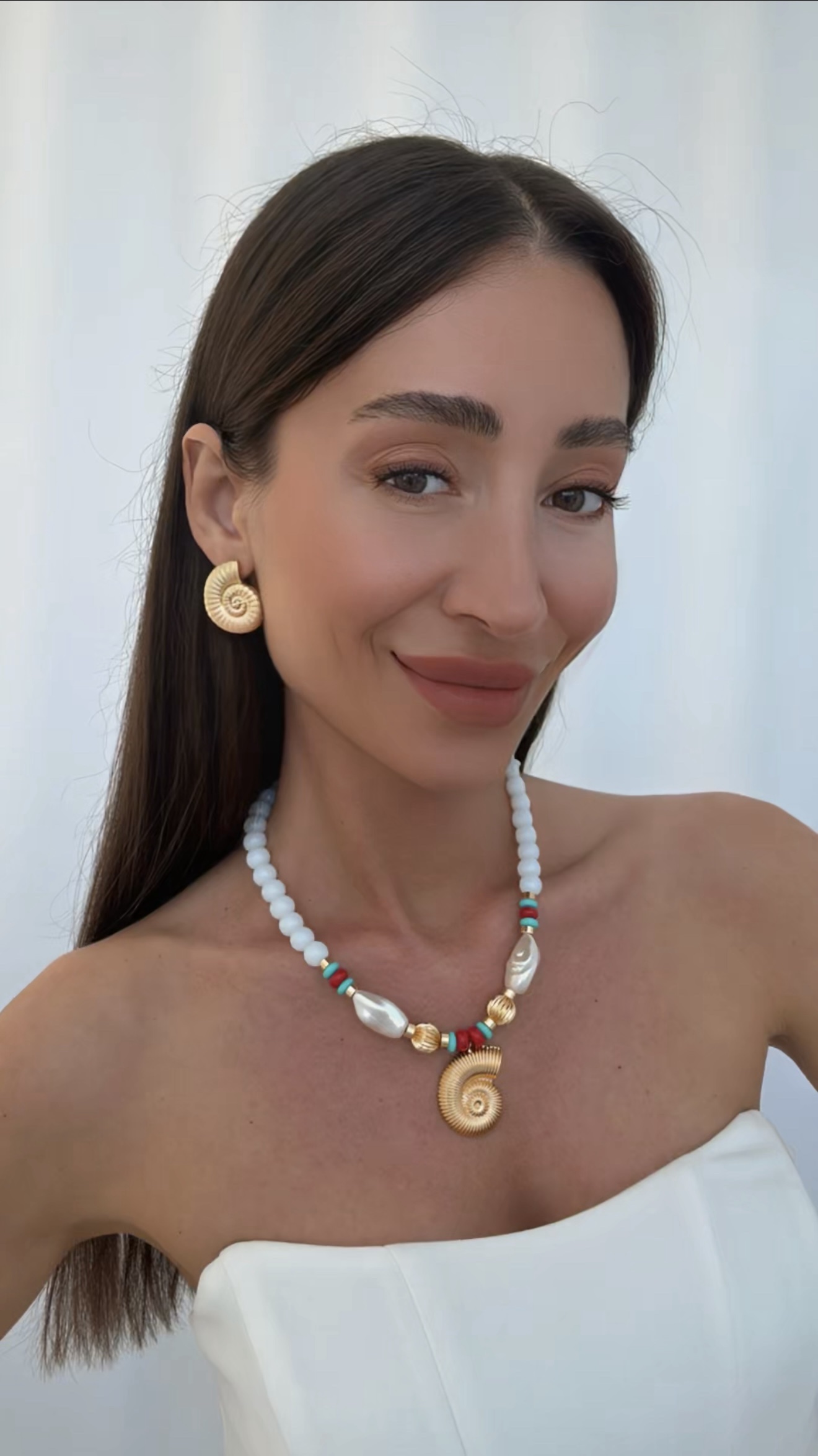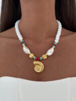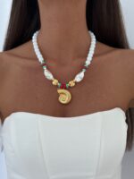 Özel Seri Deniz Kabuğu & İnci Beyaz Gold Kolye