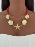 Özel Seri Deniz Kabuğu & Yıldız Kırmızı Gold Kolye