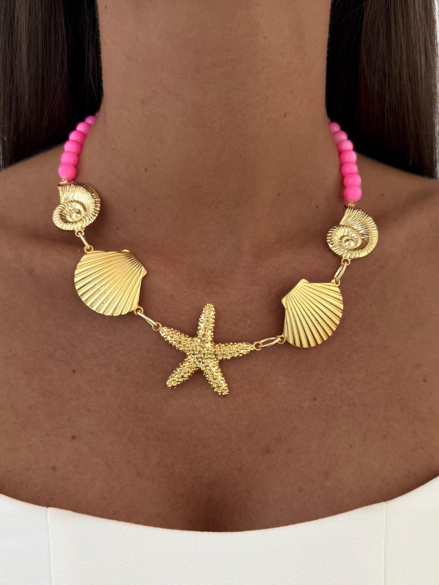 Özel Seri Deniz Kabuğu & Yıldız Pembe Gold Kolye