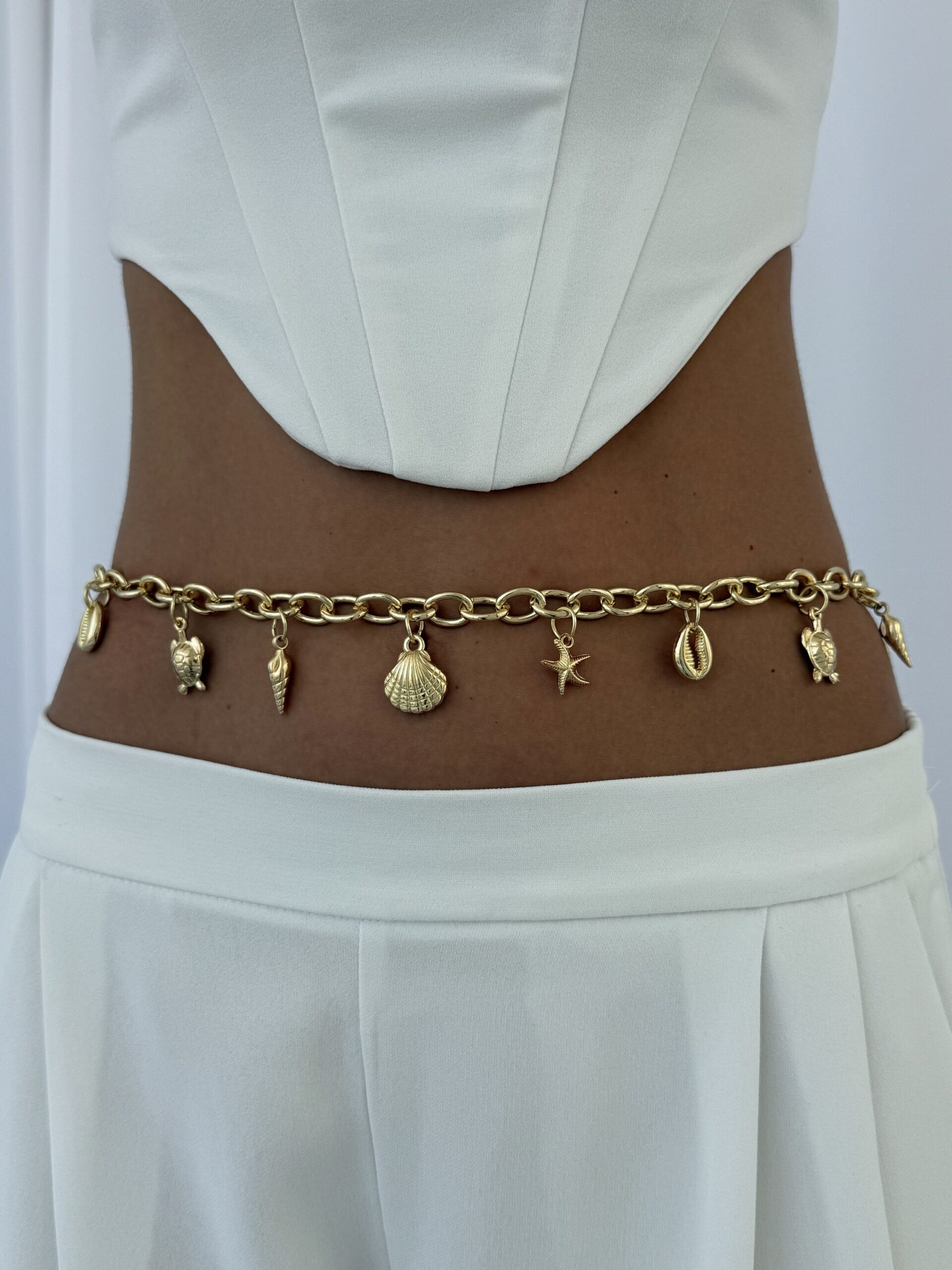 Özel Seri Deniz Kabuğu & Yıldızı Tasarım Gold Bel Zinciri