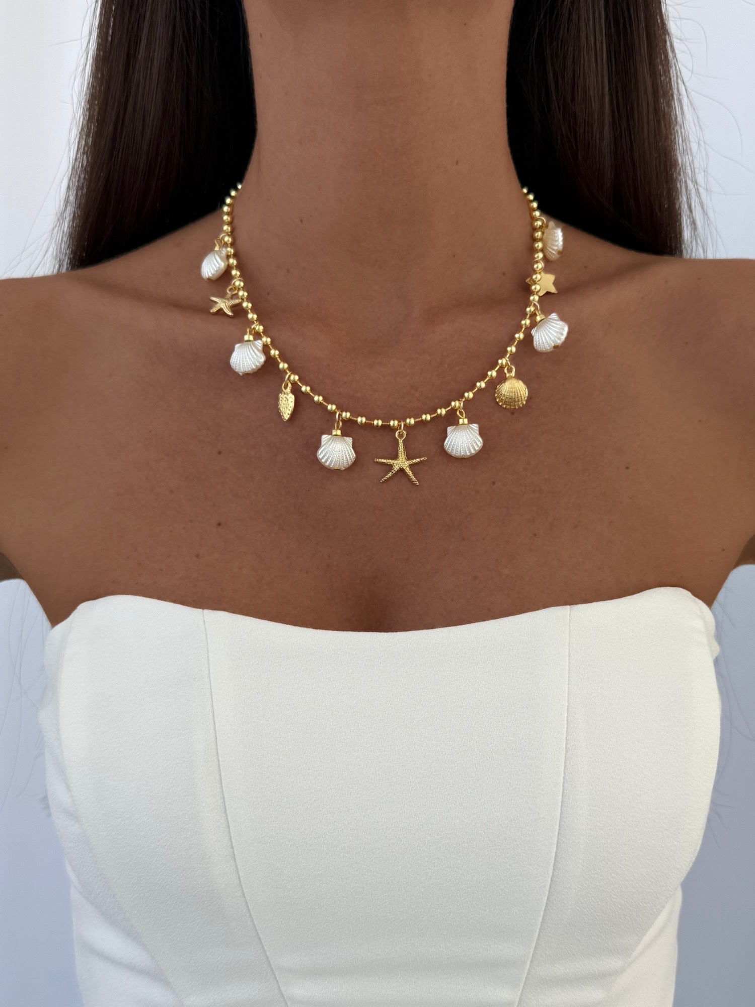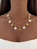 Özel Seri Deniz Kabuğu & Yıldızı Tasarım Gold Top Kolye