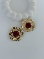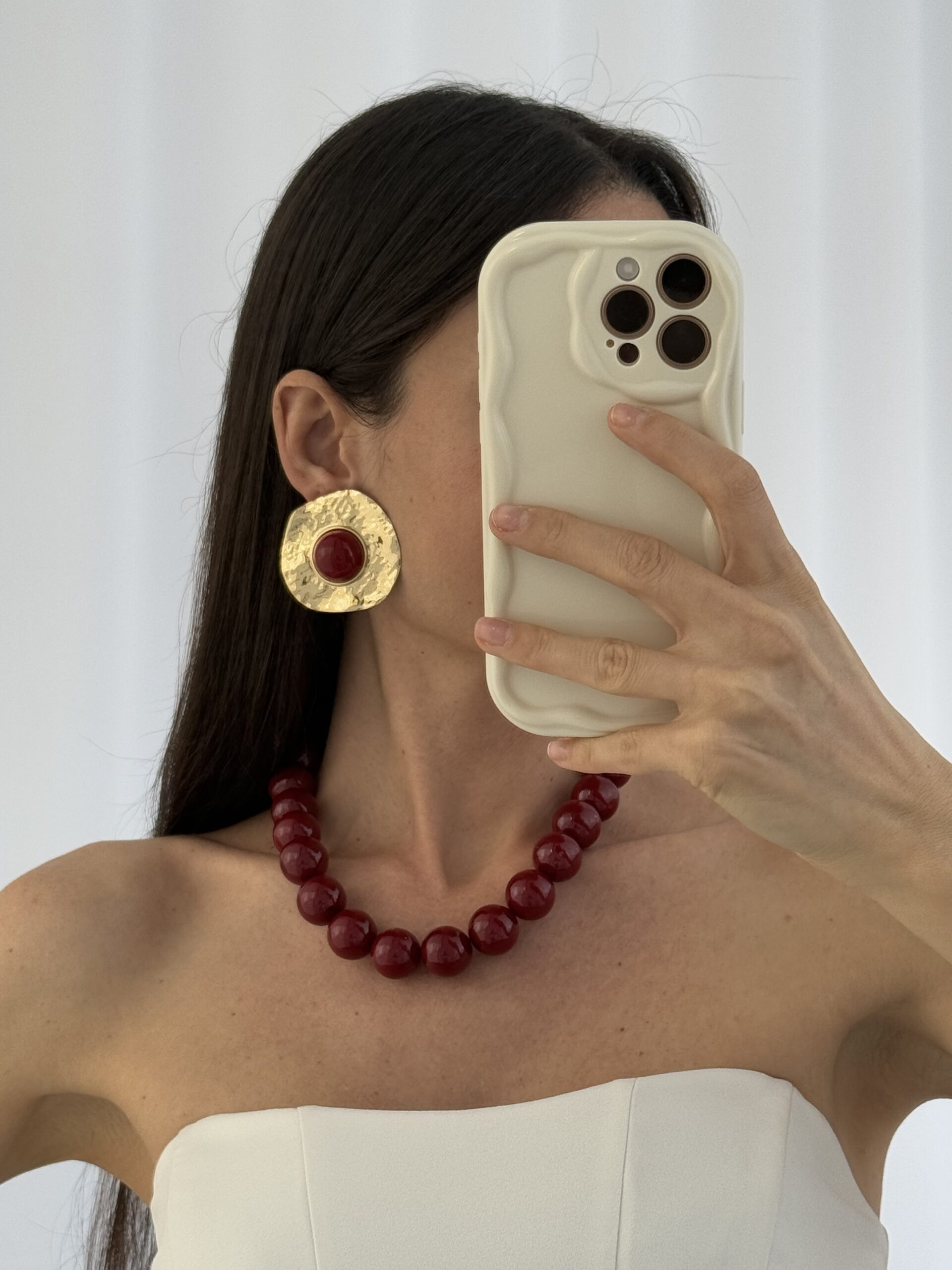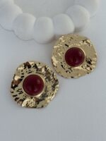 Özel Seri Desenli Asimetrik Kıvrım Gold Bordo Küpe