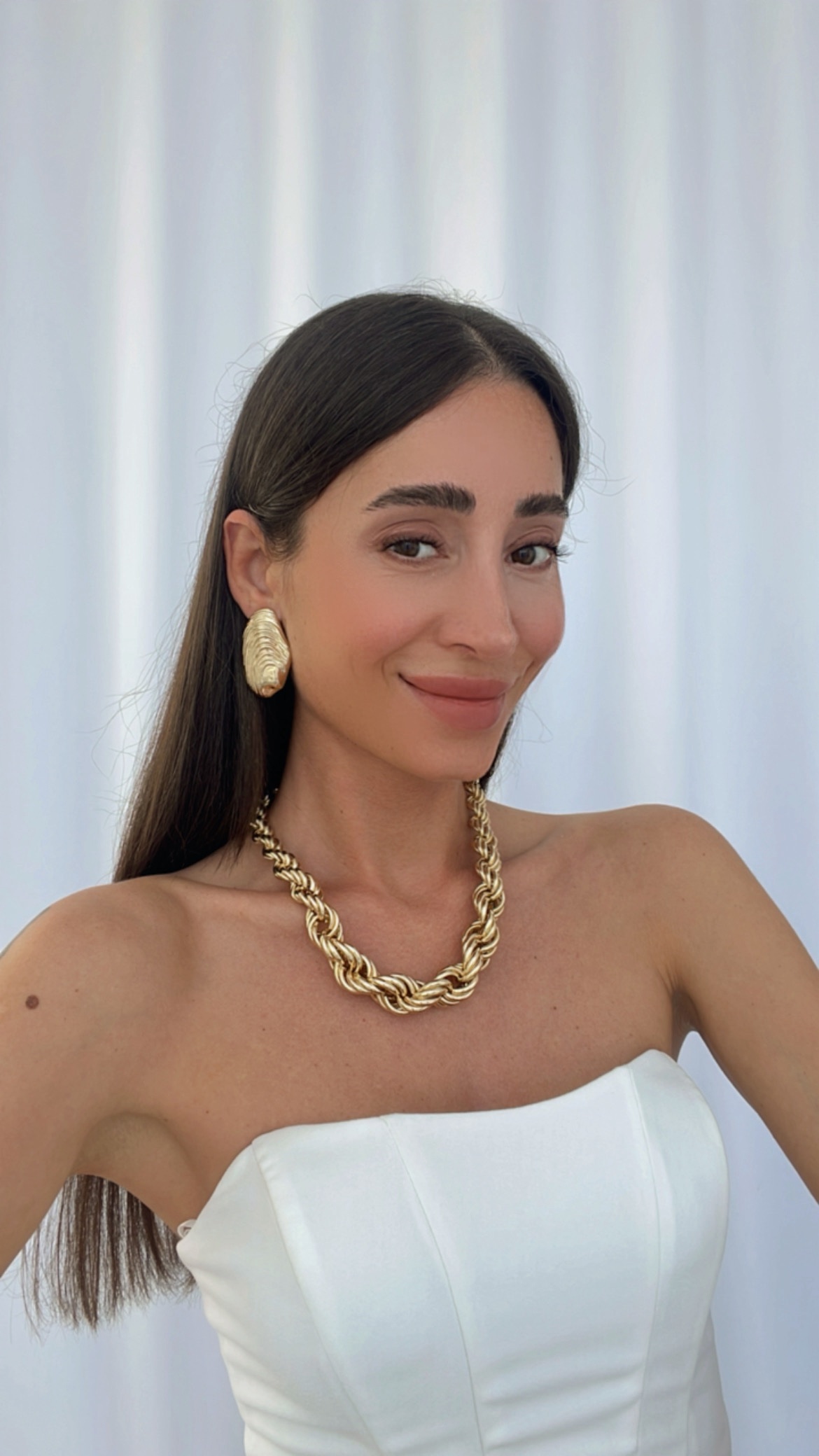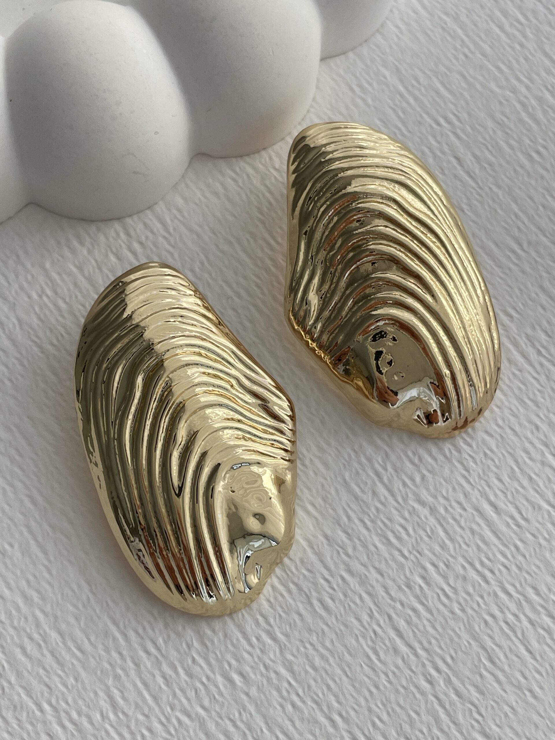 Özel Seri Desenli Asimetrik Kıvrım Gold Küpe