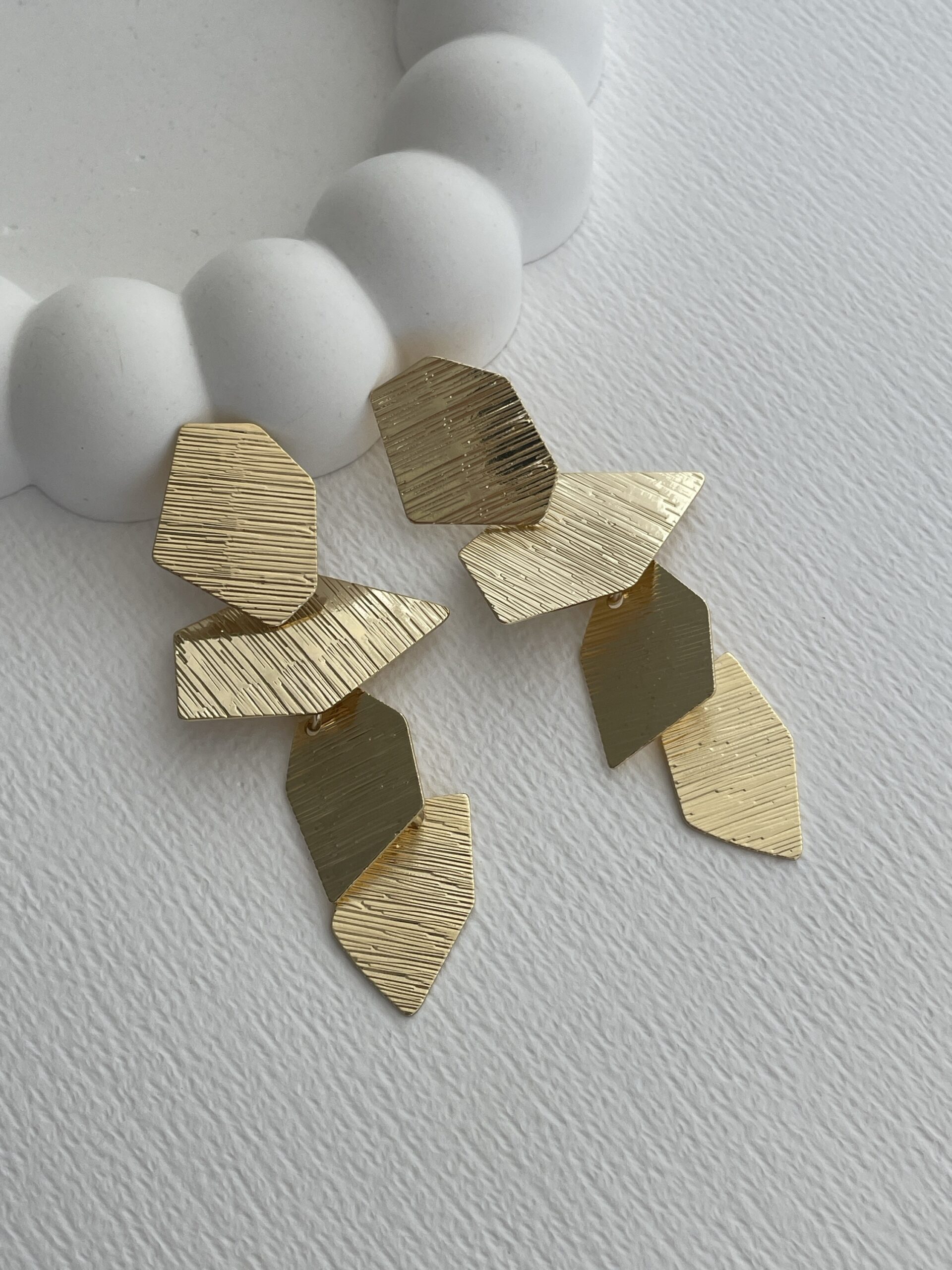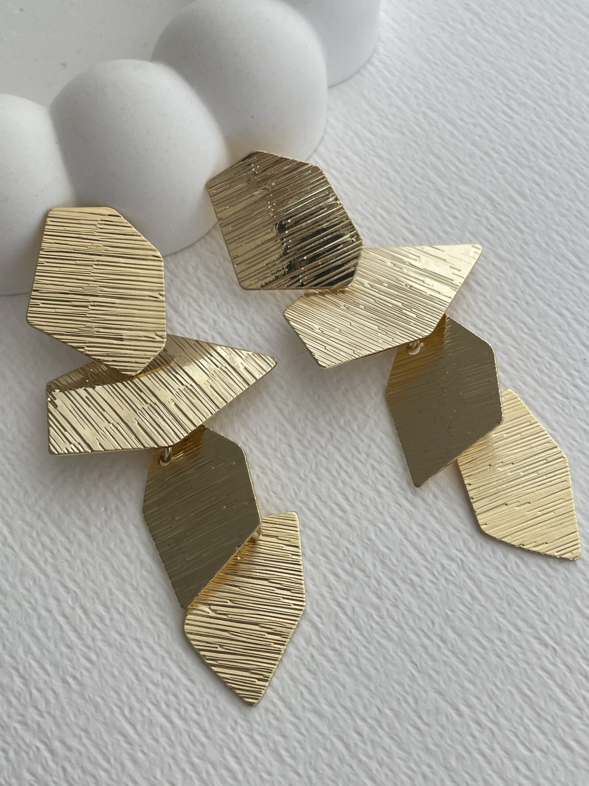Özel Seri Desenli Asimetrik Yaprak Tasarım Gold Küpe