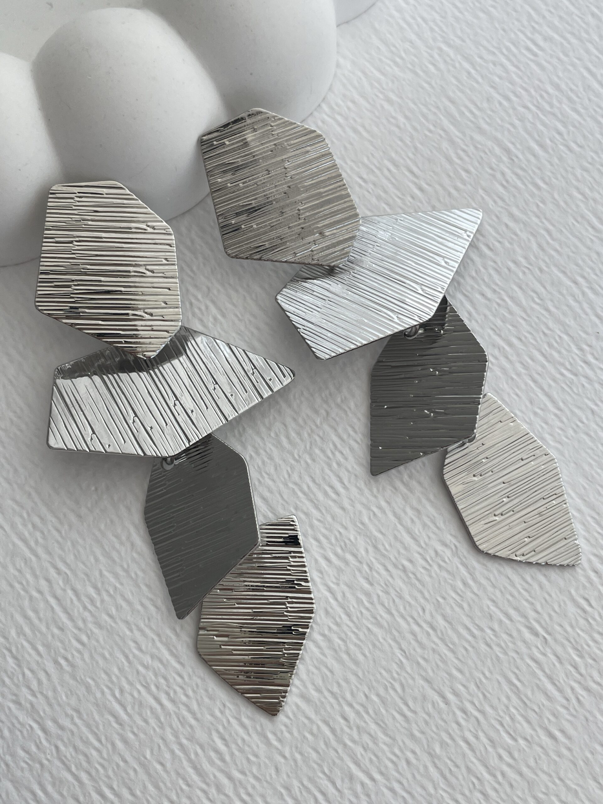 Özel Seri Desenli Asimetrik Yaprak Tasarım Gümüş Küpe