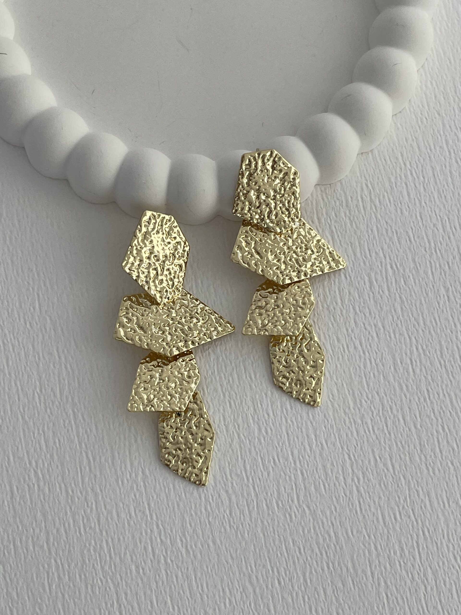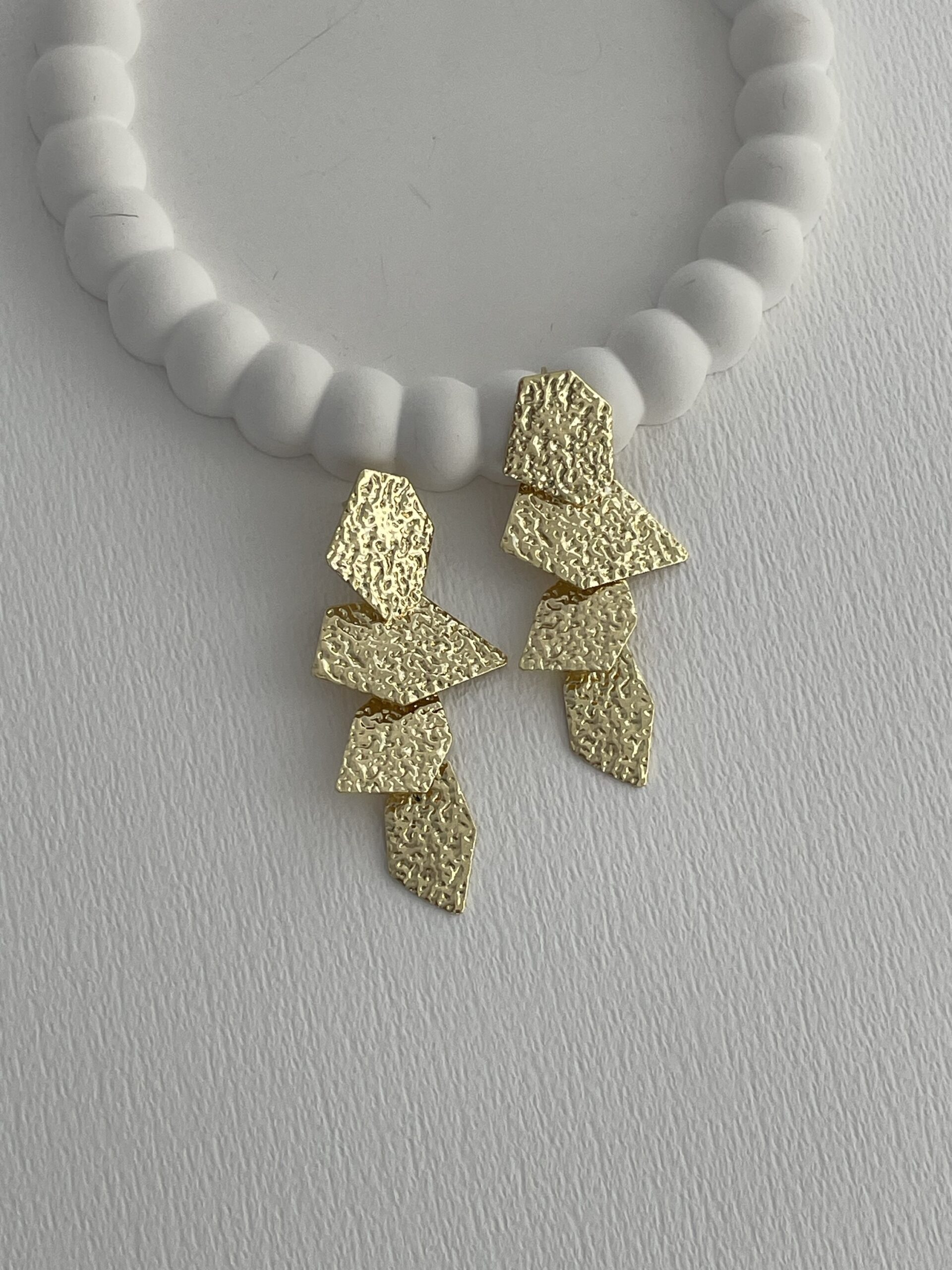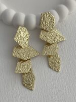 Özel Seri Desenli Dörtlü Yaprak Tasarım Gold Küpe