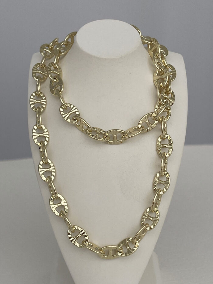 Özel Seri Desenli Düğme Tasarım Gold Zincir Kolye 60 Cm