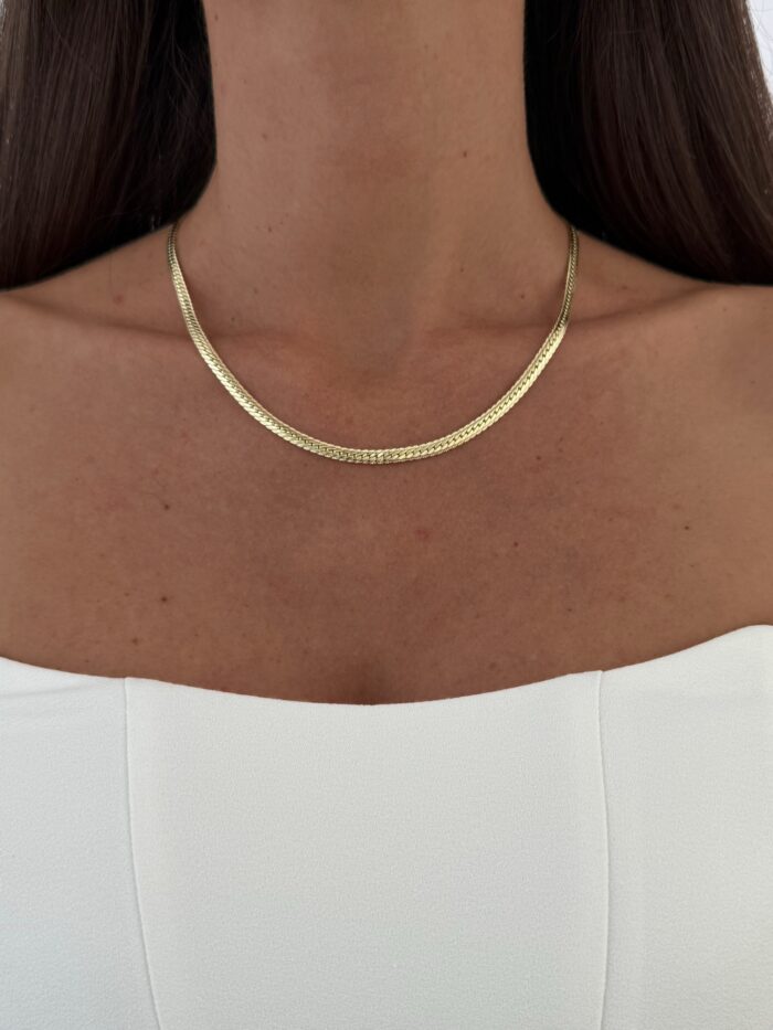 Özel Seri Desenli Ezme İtalyan Zincir 14k Gold Kolye