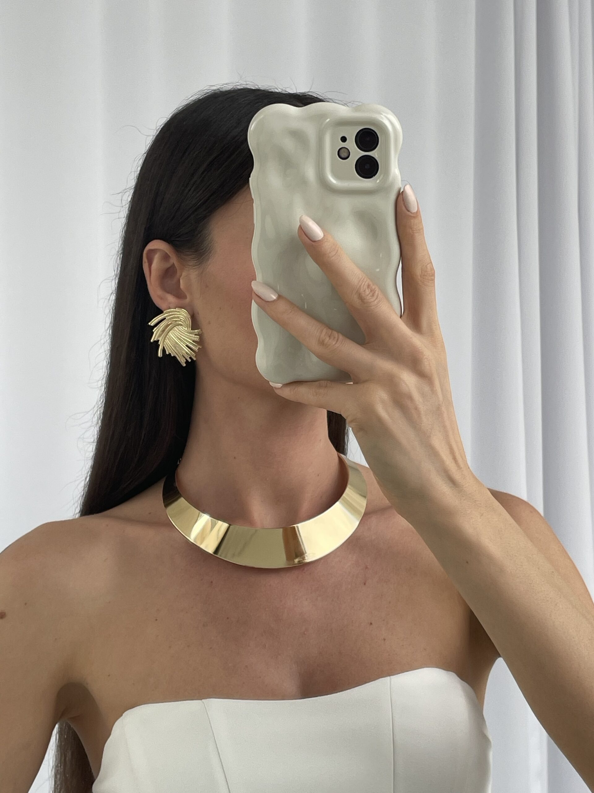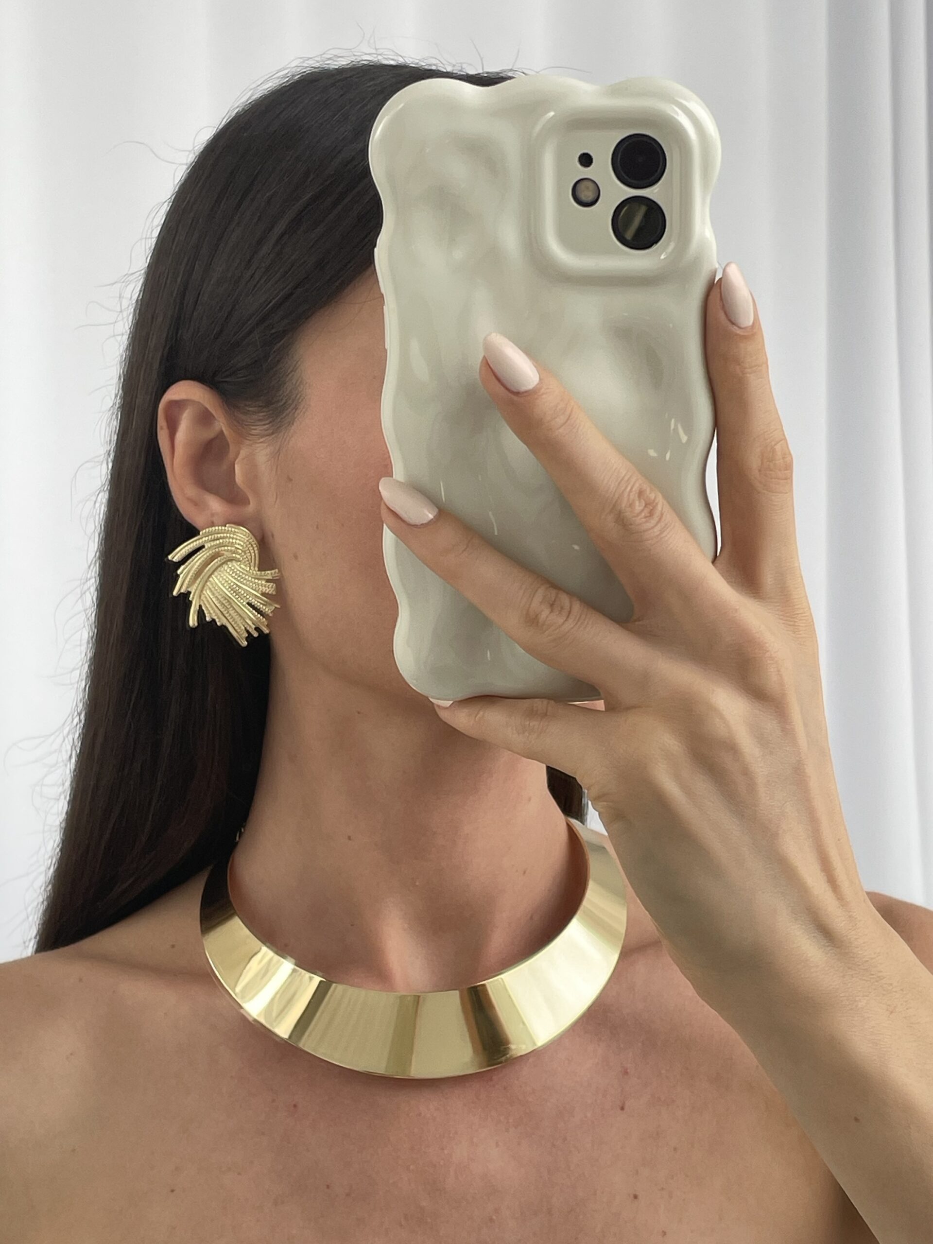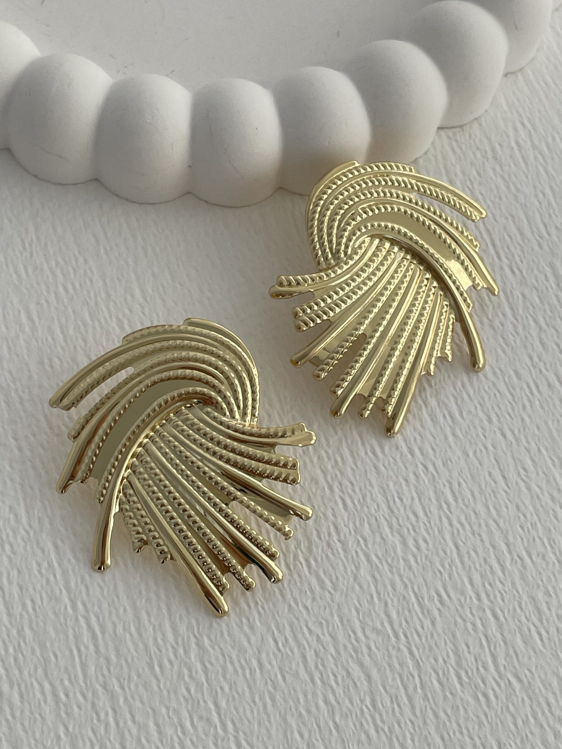 Özel Seri Desenli Geometrik Tasarım Gold Küpe