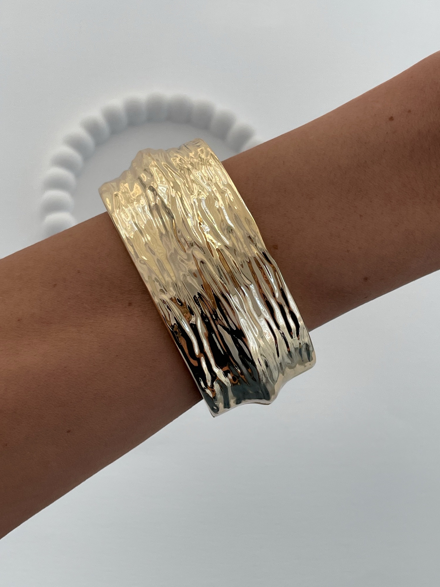 Özel Seri Desenli Gold Kalın Kelepçe Bileklik