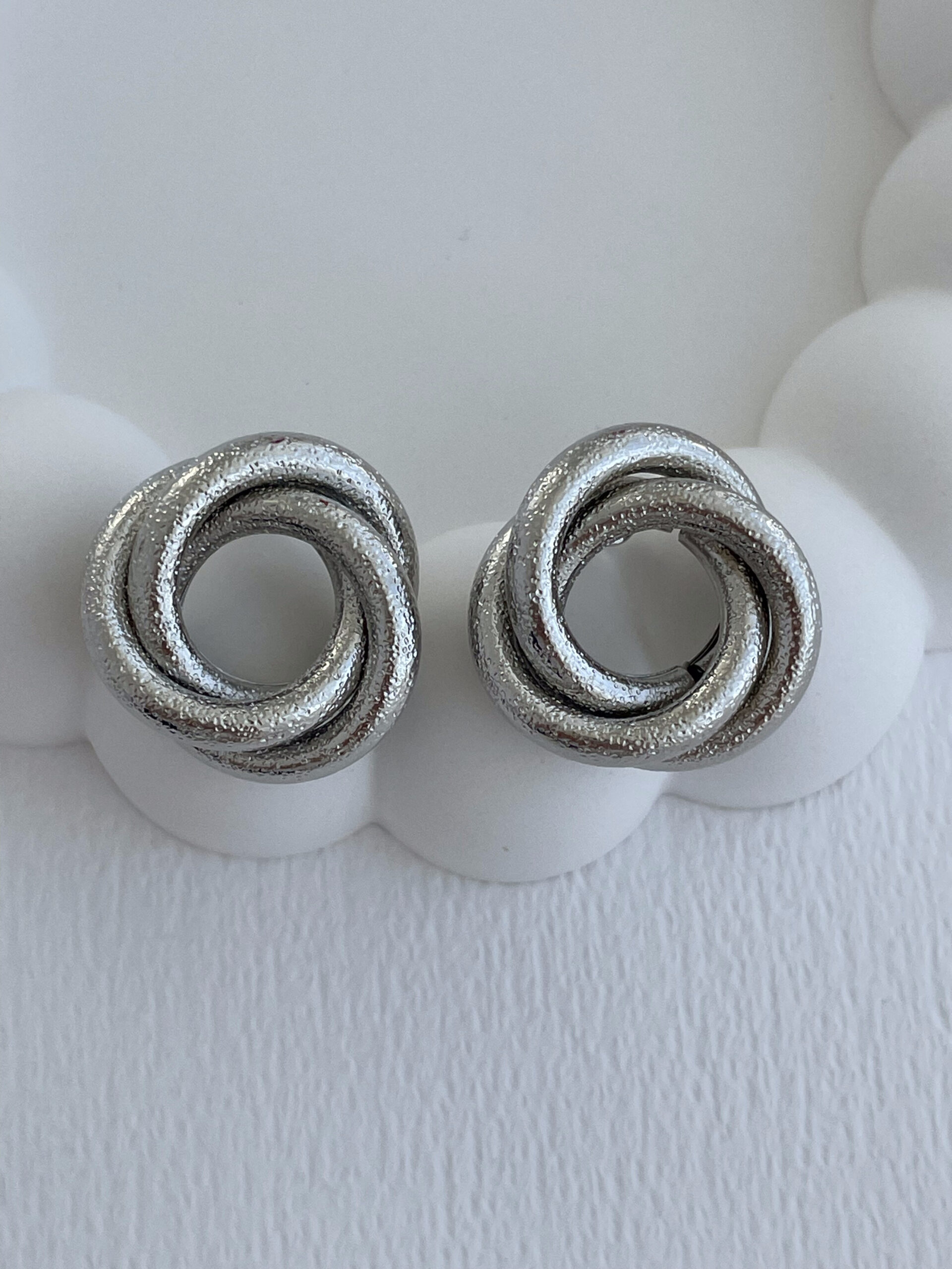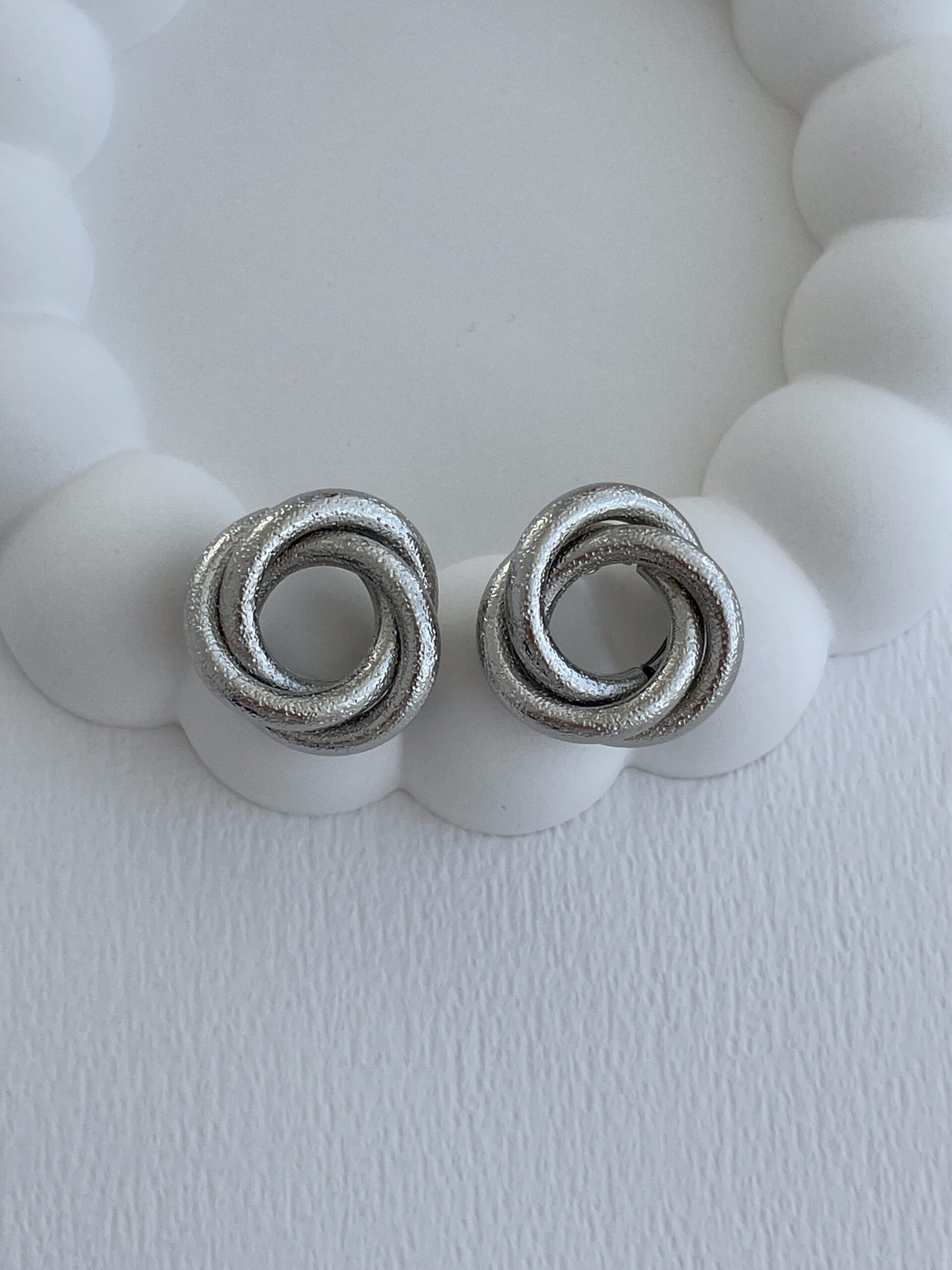 Özel Seri Desenli Gül Tasarım Orta Boy Gümüş Küpe