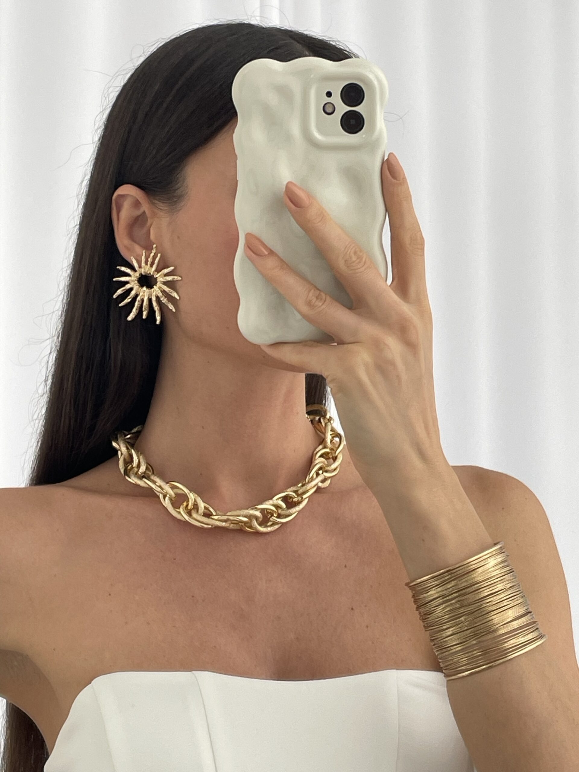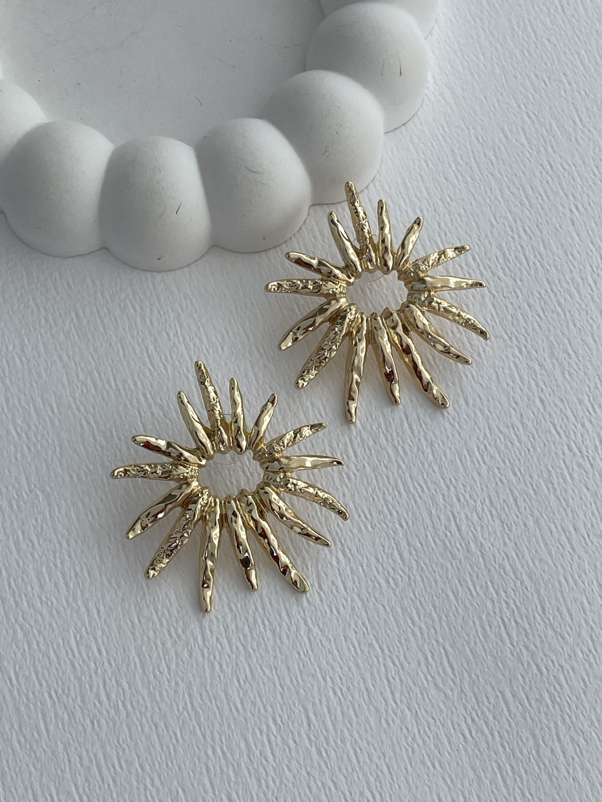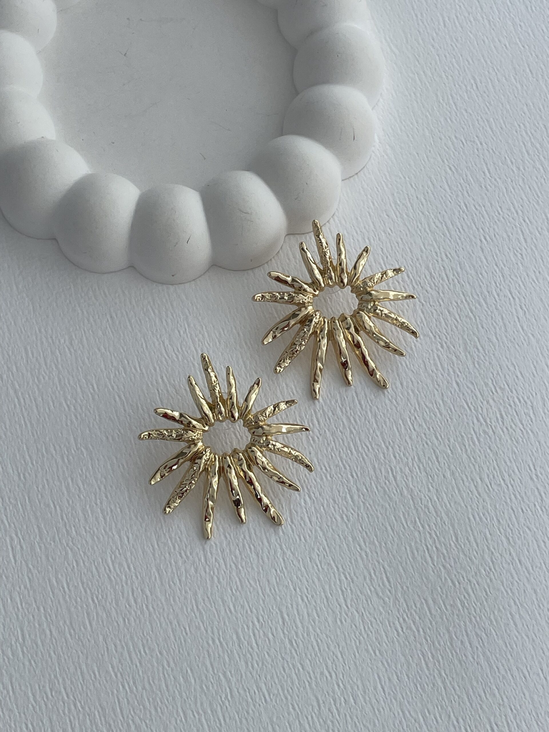 Özel Seri Desenli Güneş Tasarım Gold Küpe