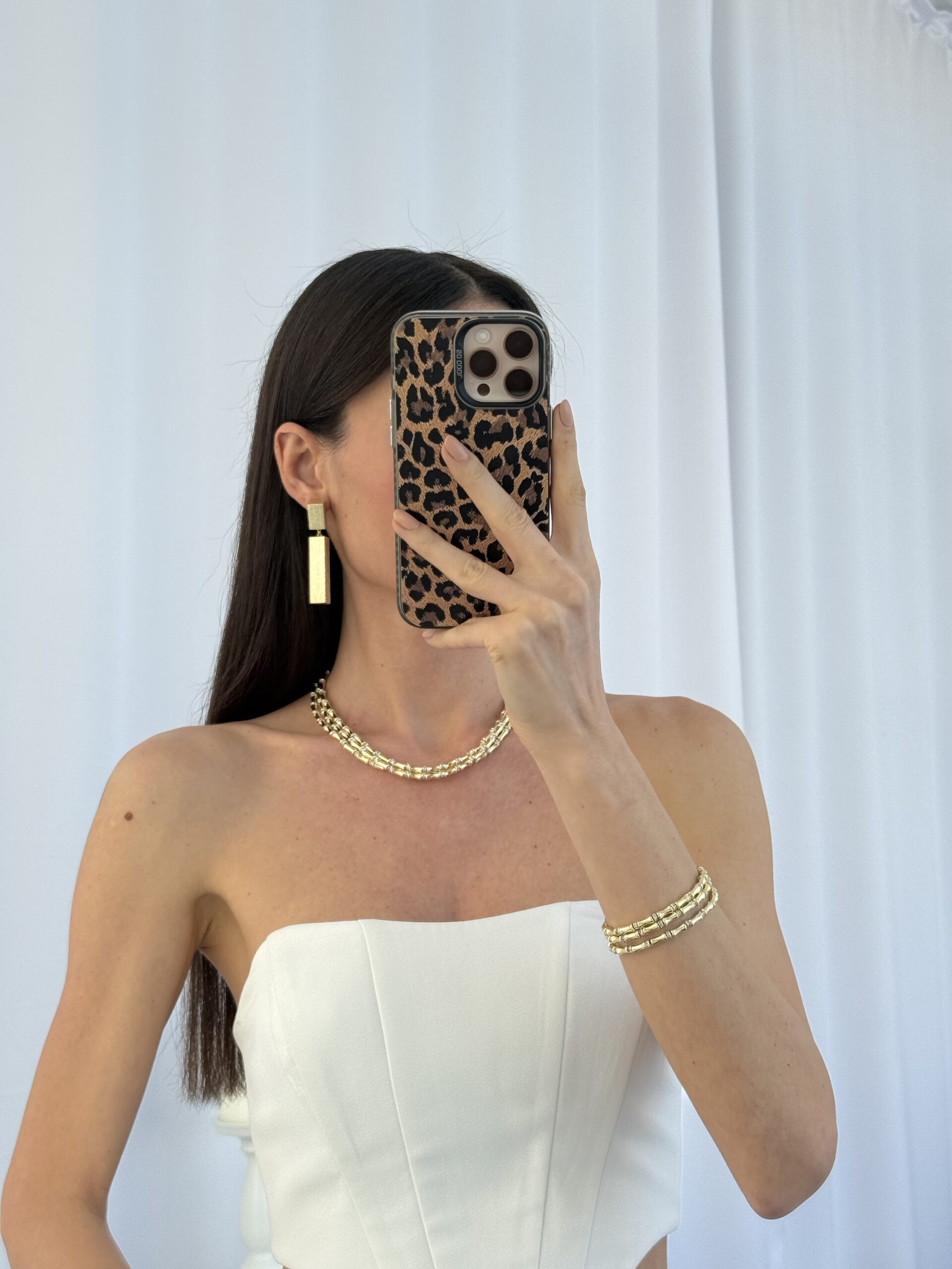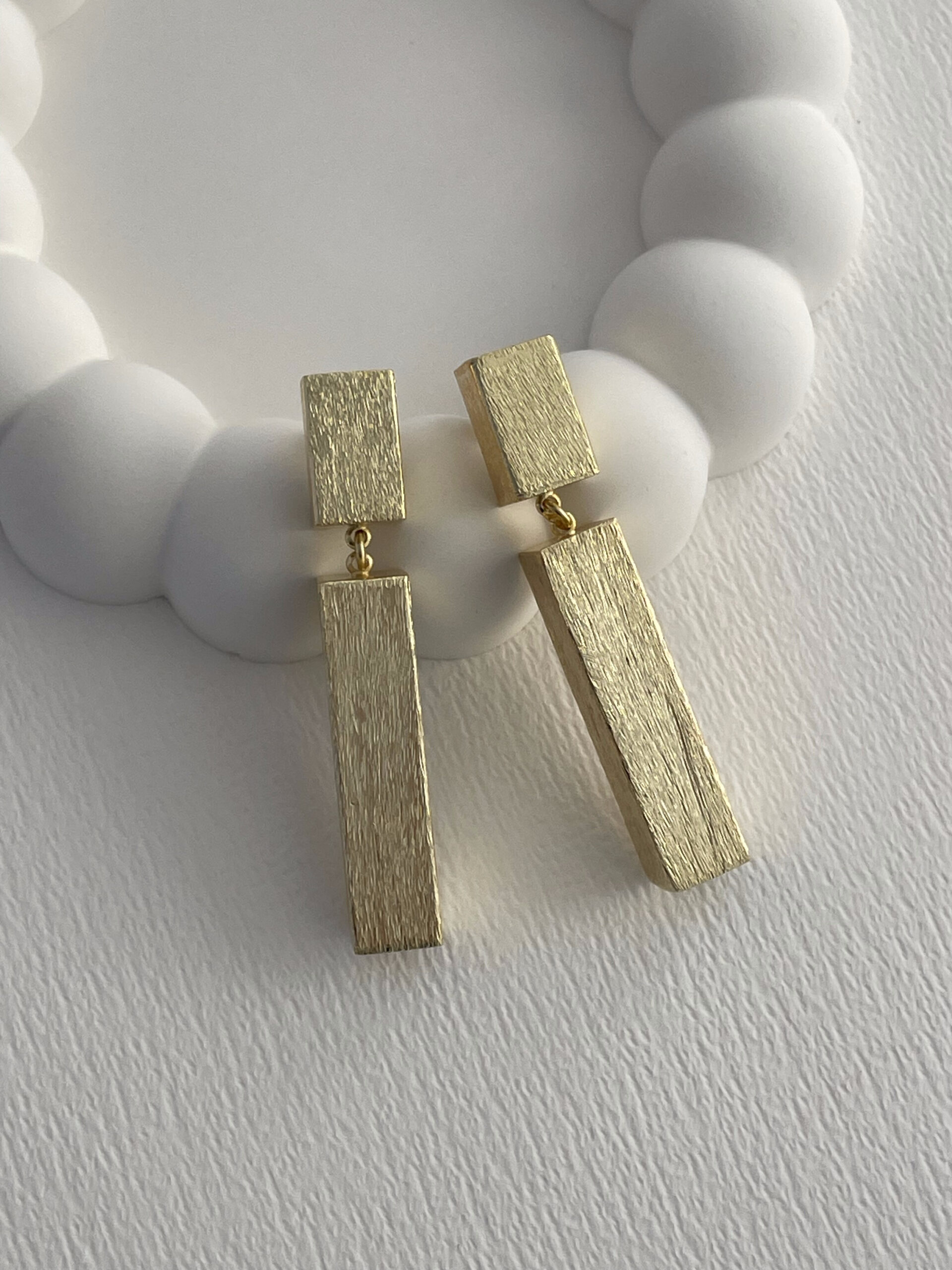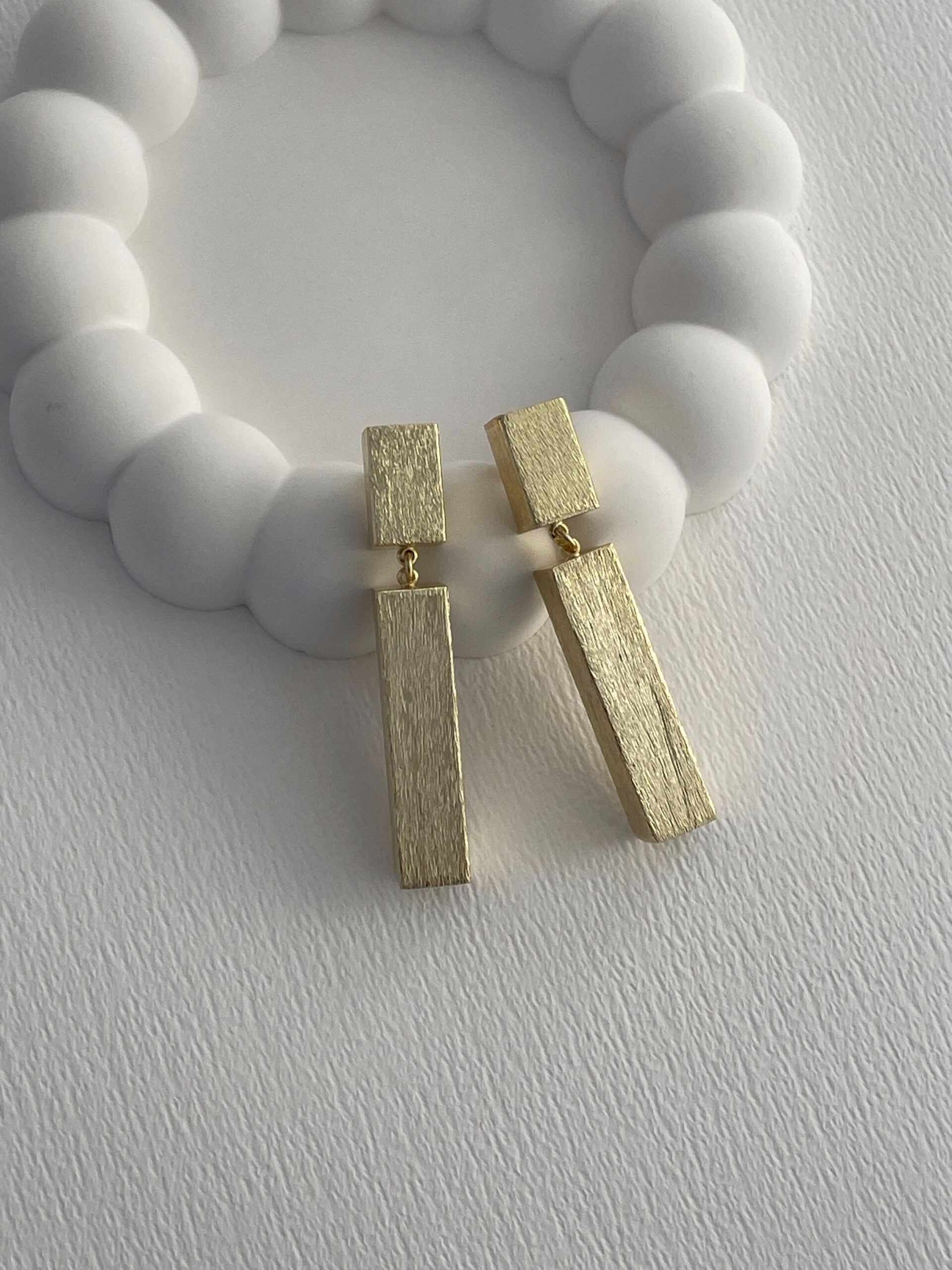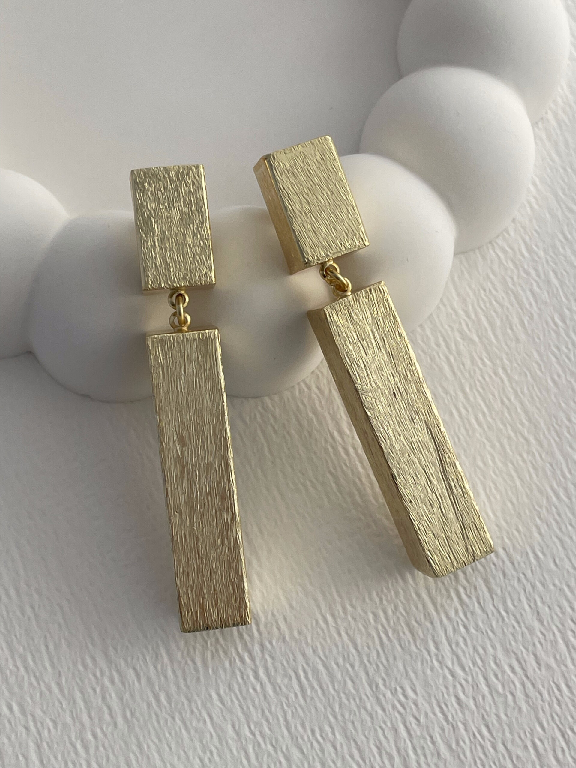 Özel Seri Desenli İkili Blok Tasarım Gold Küpe