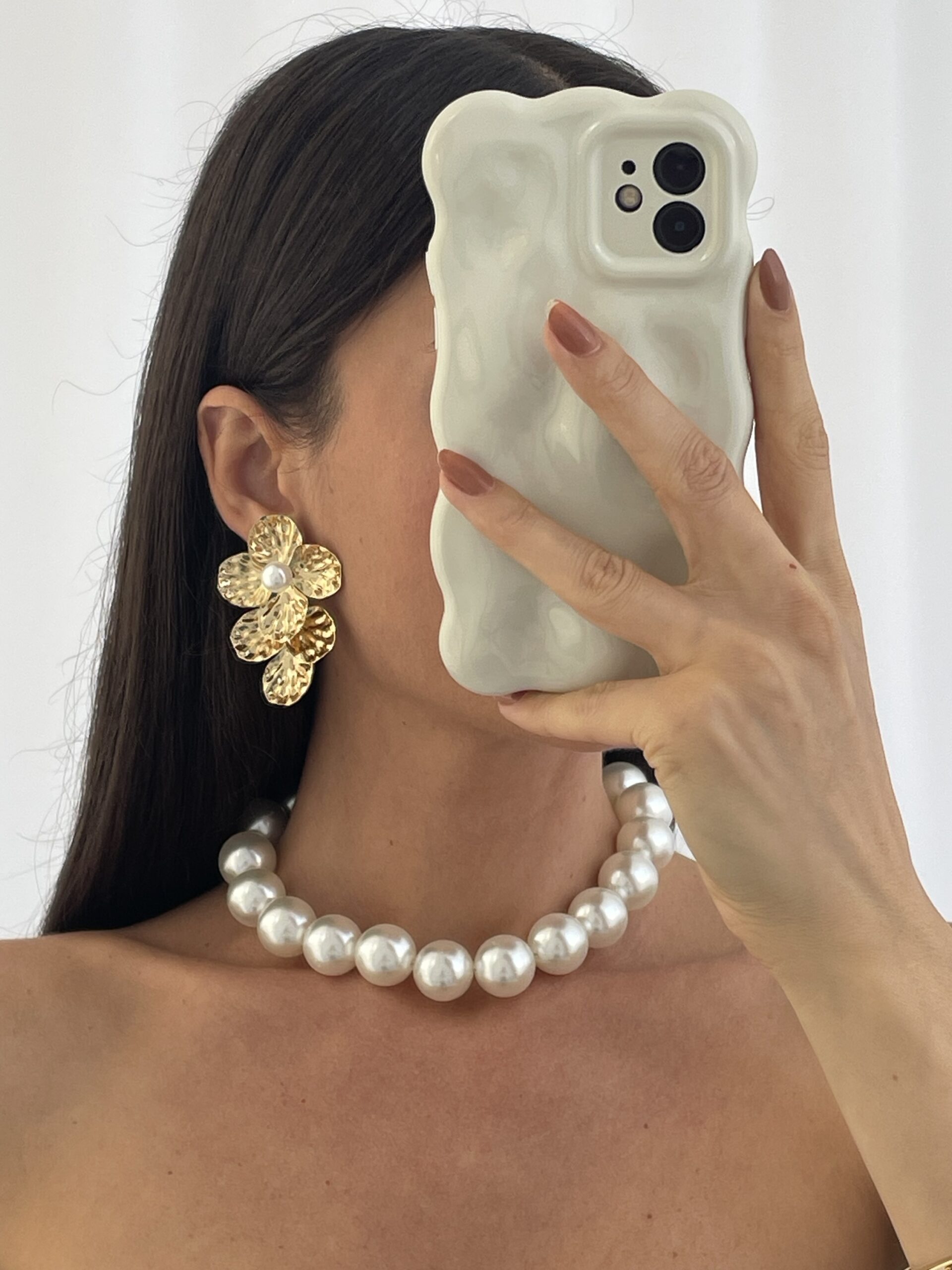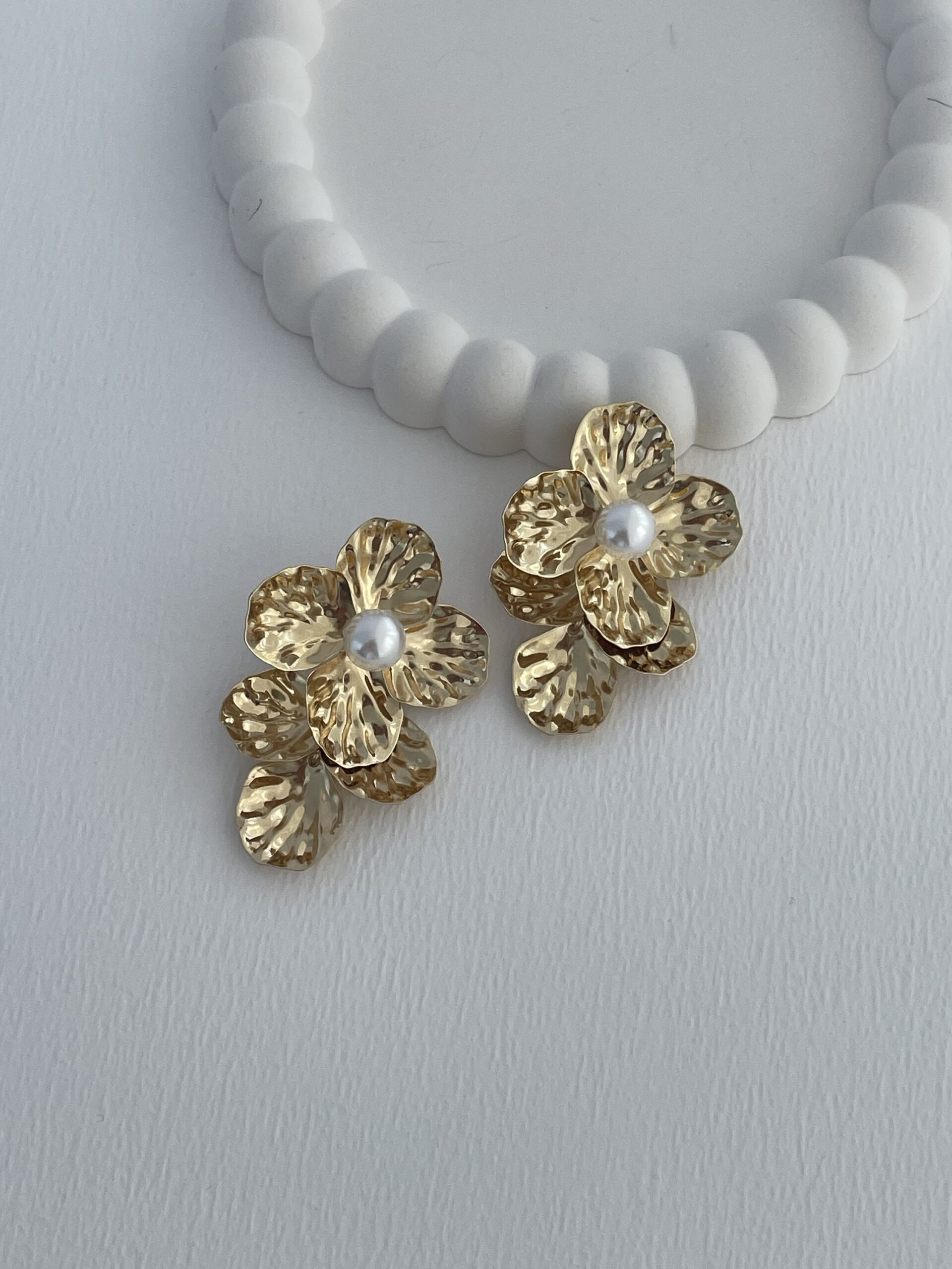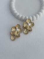 Özel Seri Desenli İnci Detay Çiçek Gold Küpe