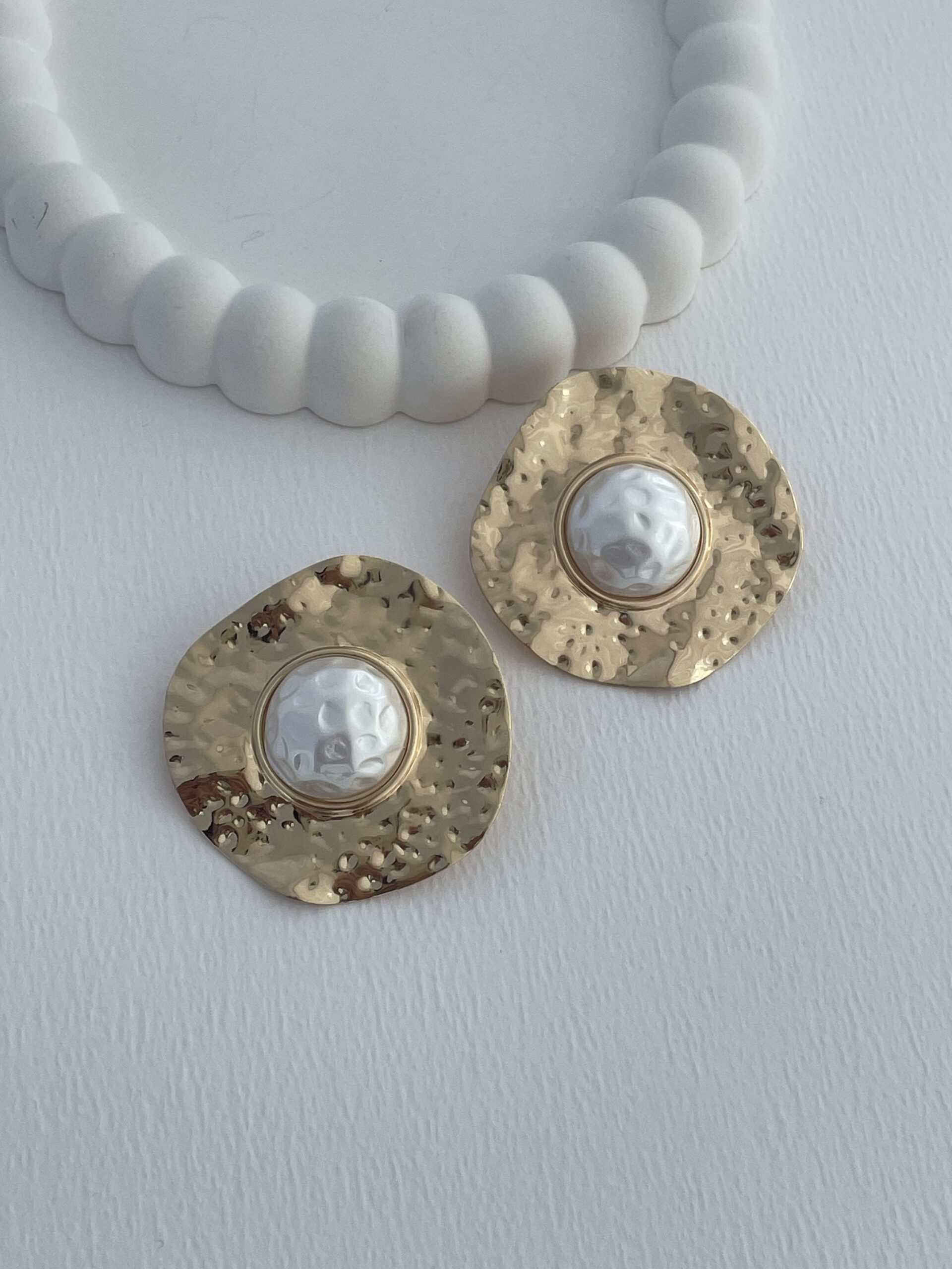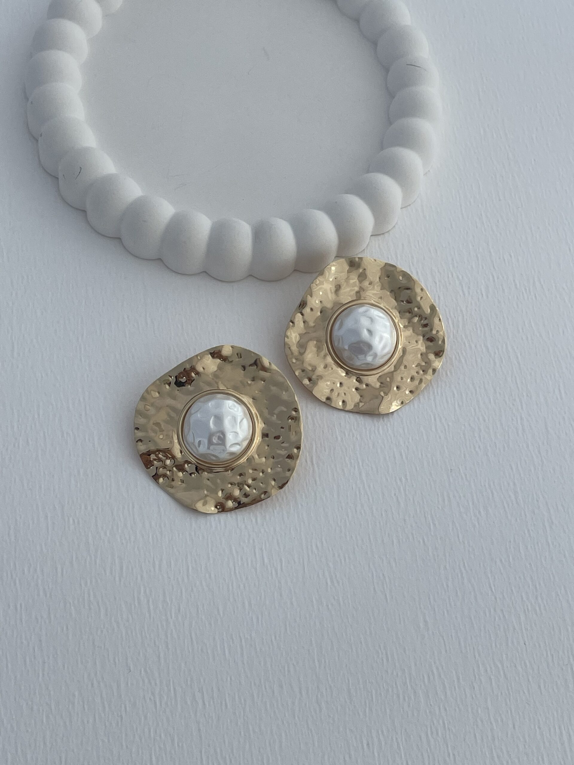 Özel Seri Desenli İnci Detay Yuvarlak Gold Küpe