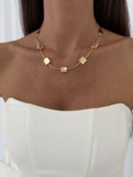 Özel Seri Desenli Kare Tasarım Marka Model Gold Kolye