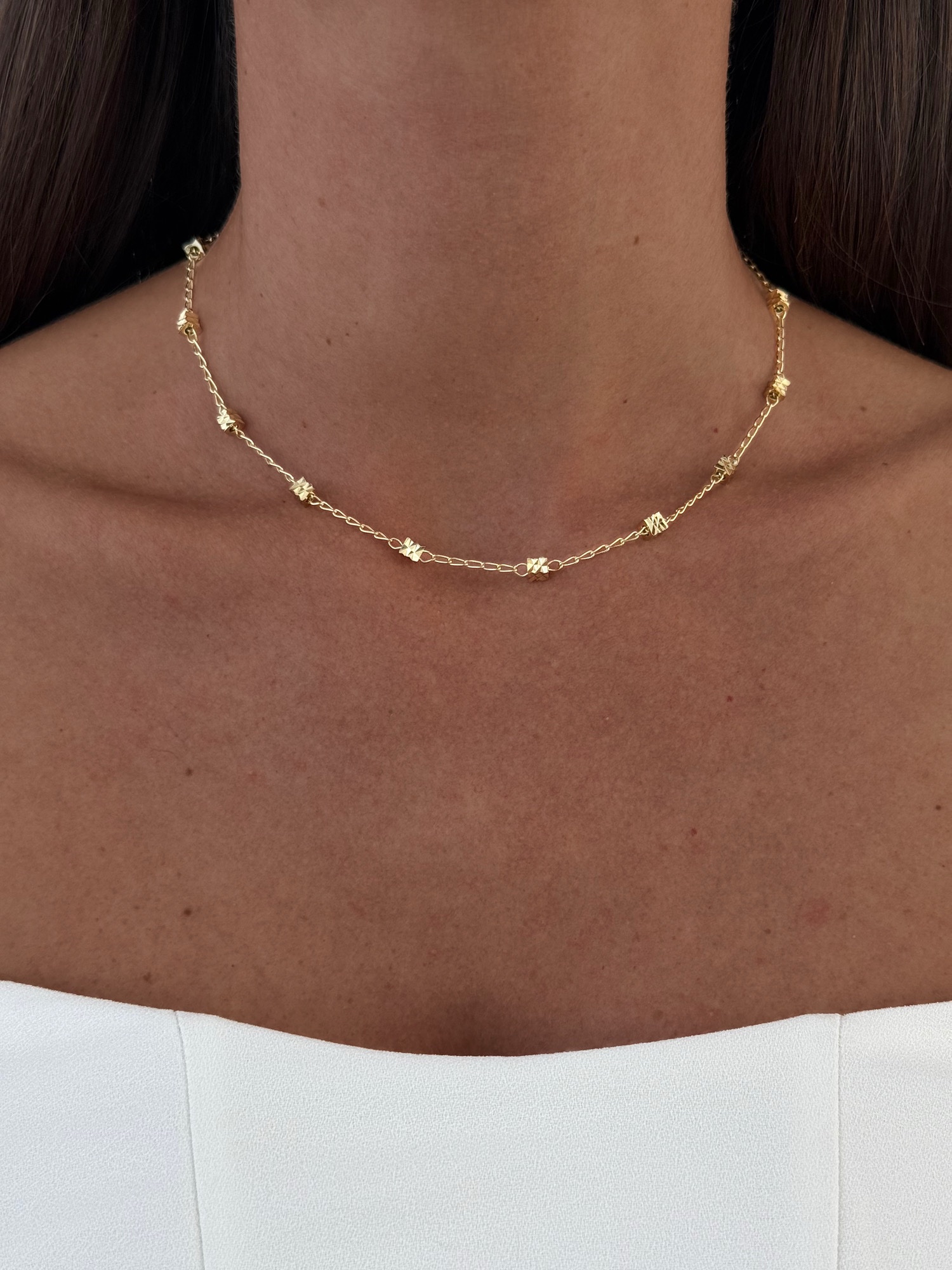 Özel Seri Desenli Küp Tasarım Gold Zincir Kolye