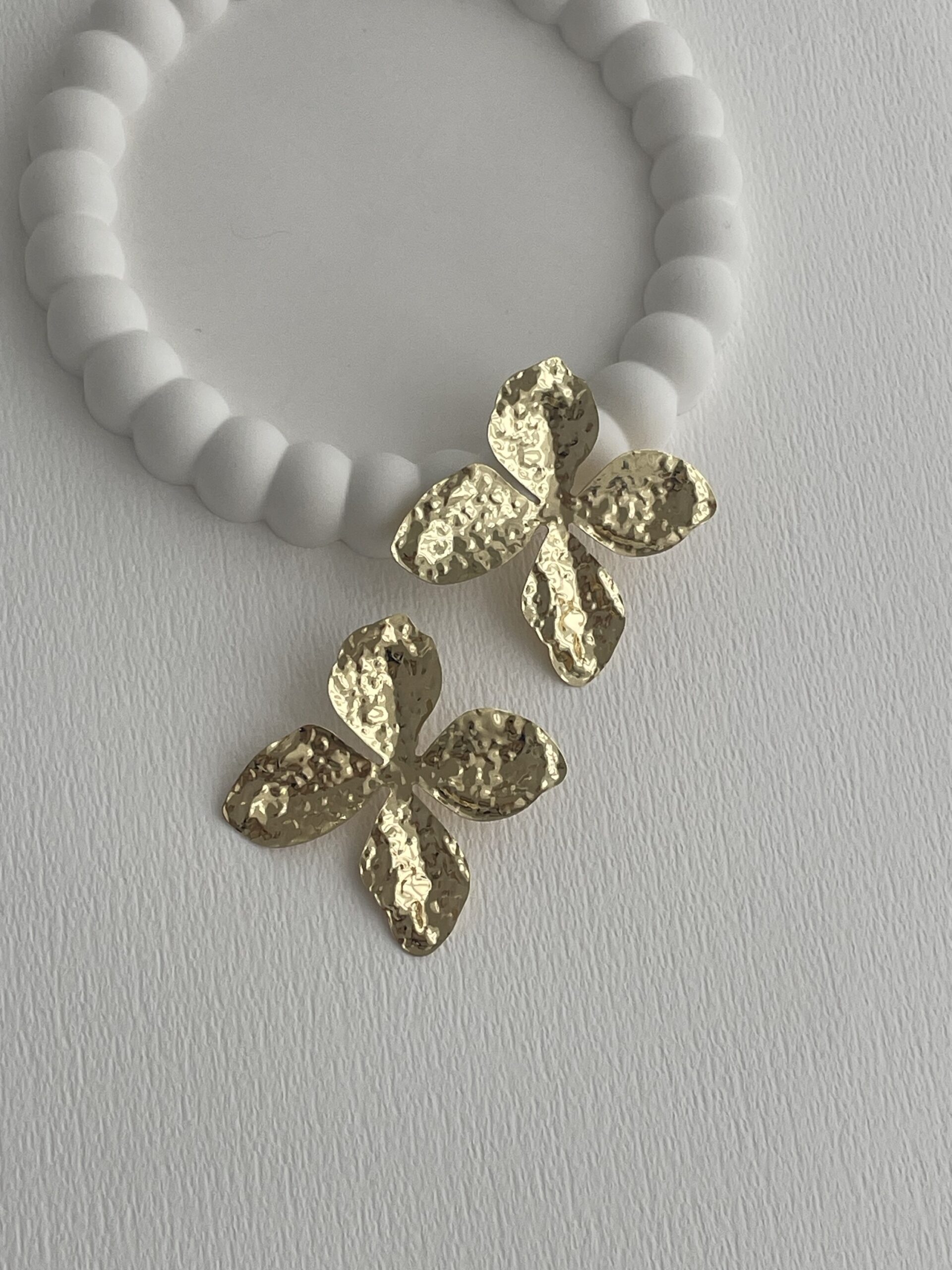 Özel Seri Desenli Maksi Boy Çiçek Tasarım Gold Küpe