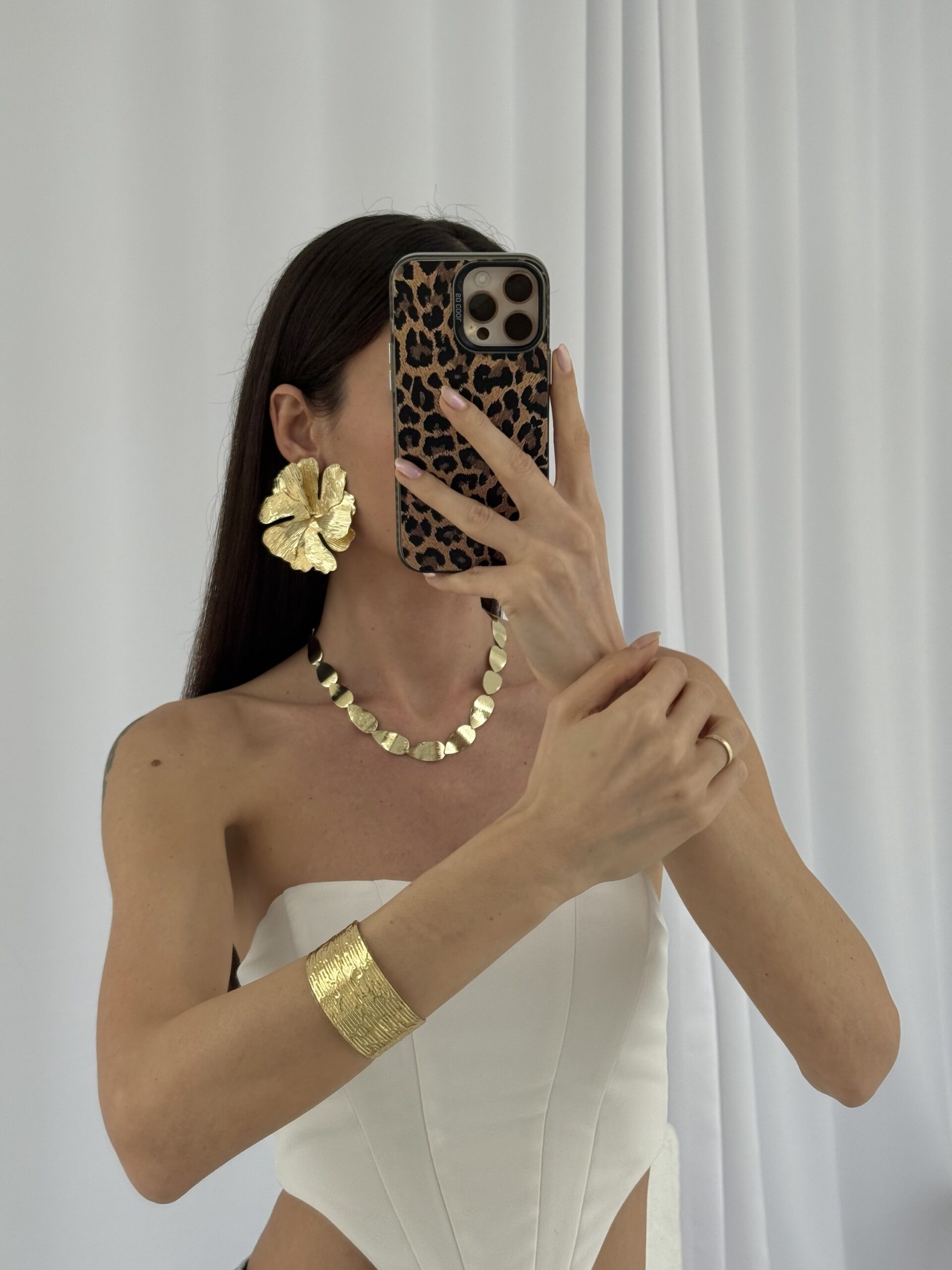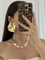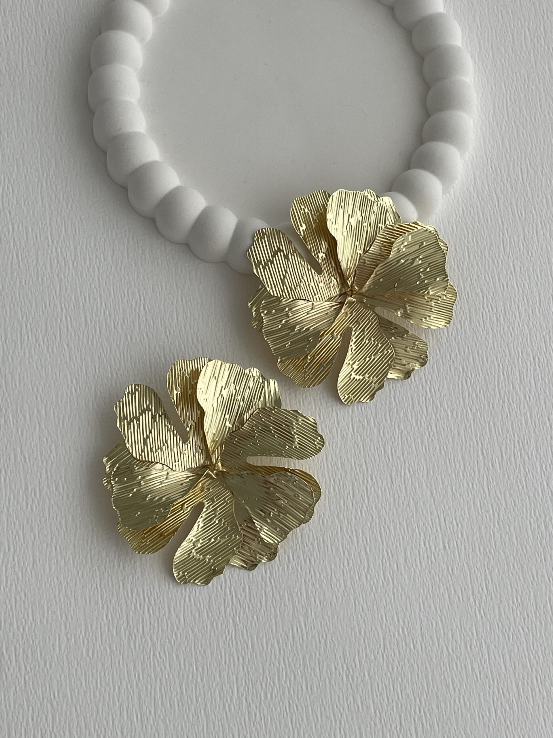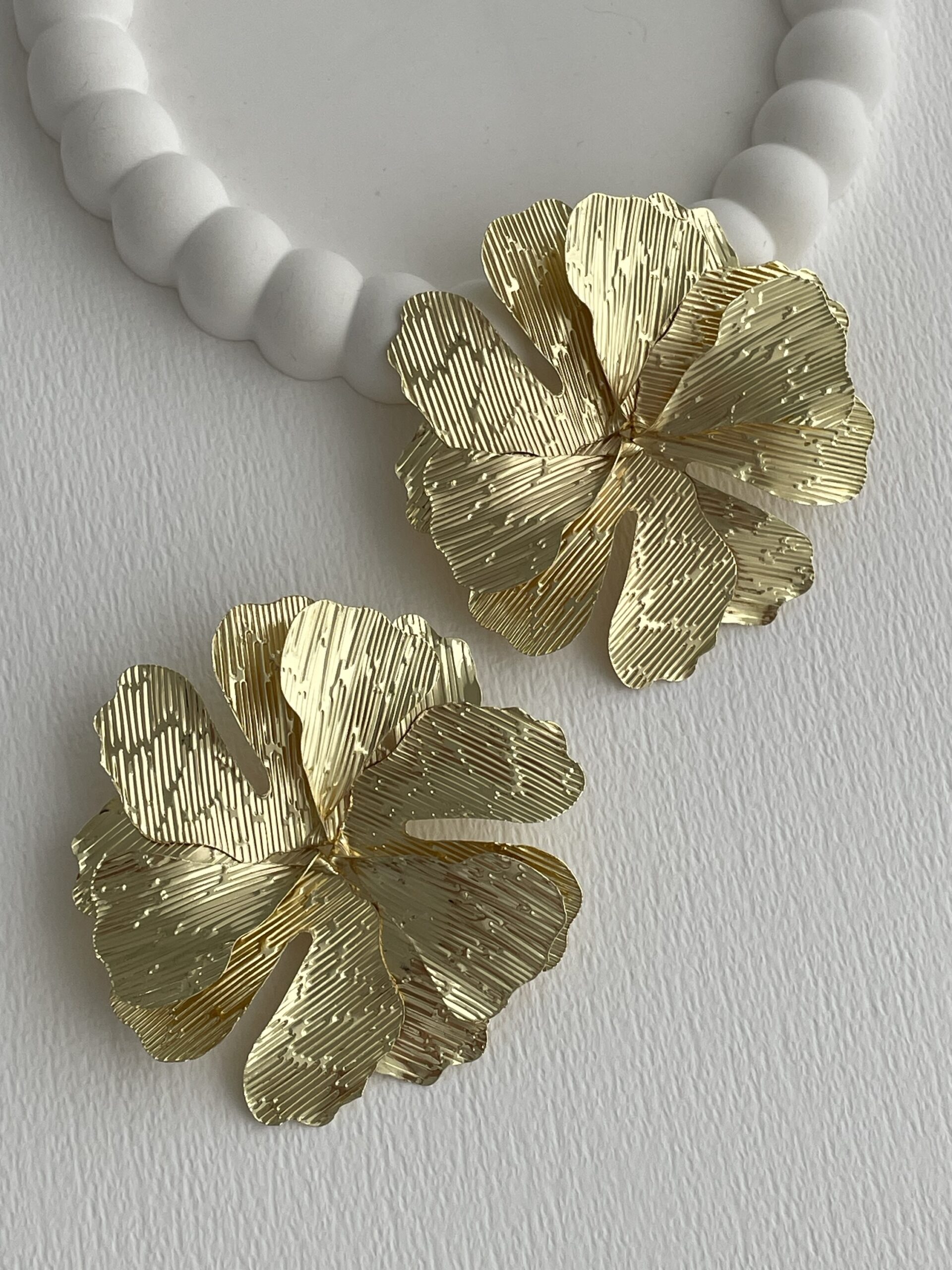 Özel Seri Desenli Maksi Boy Yaprak Tasarım Gold Küpe