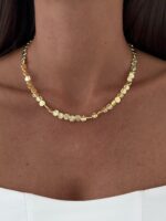 Özel Seri Desenli Mini Yuvarlak Plaka Zincir Gold Kolye