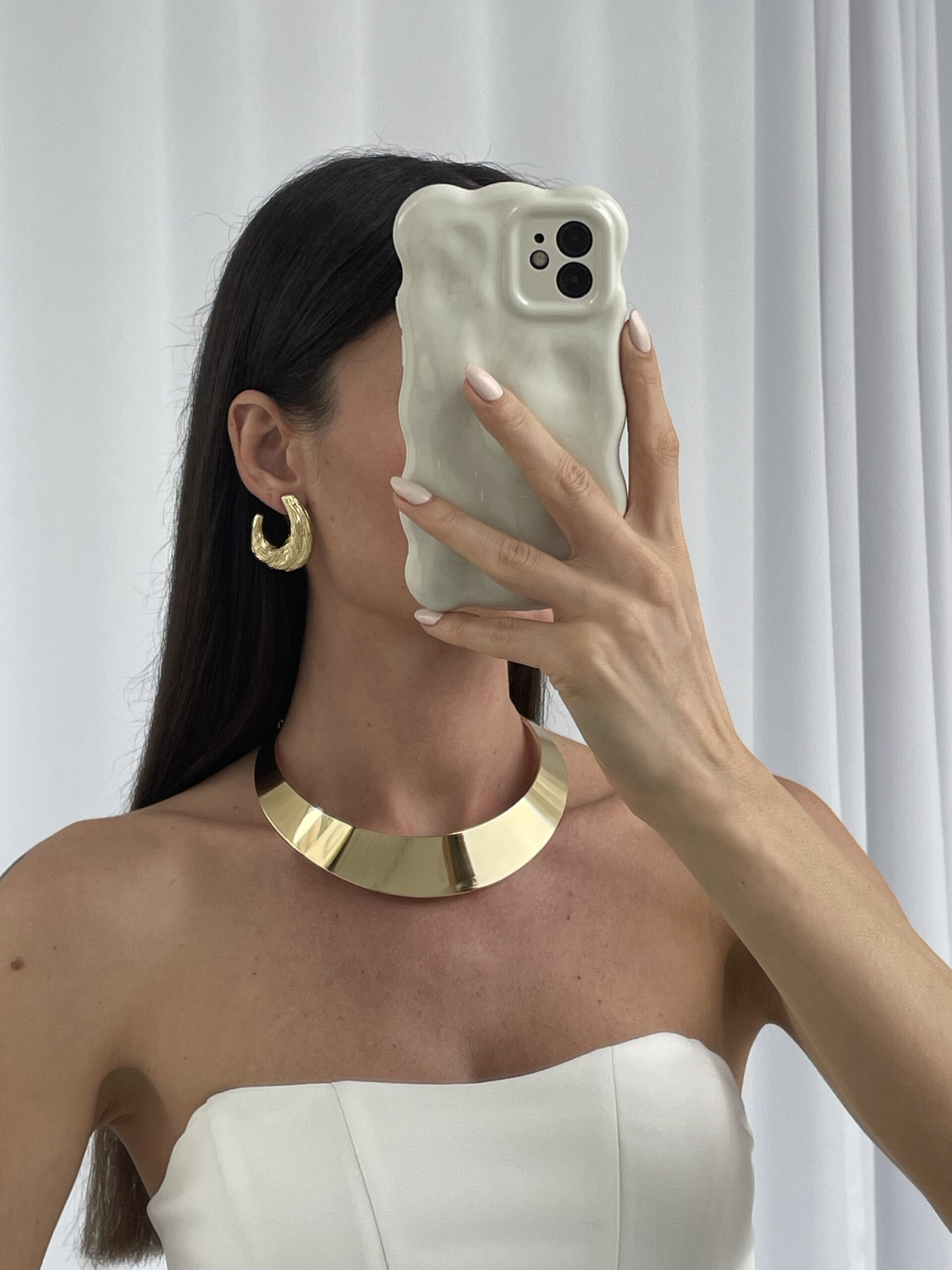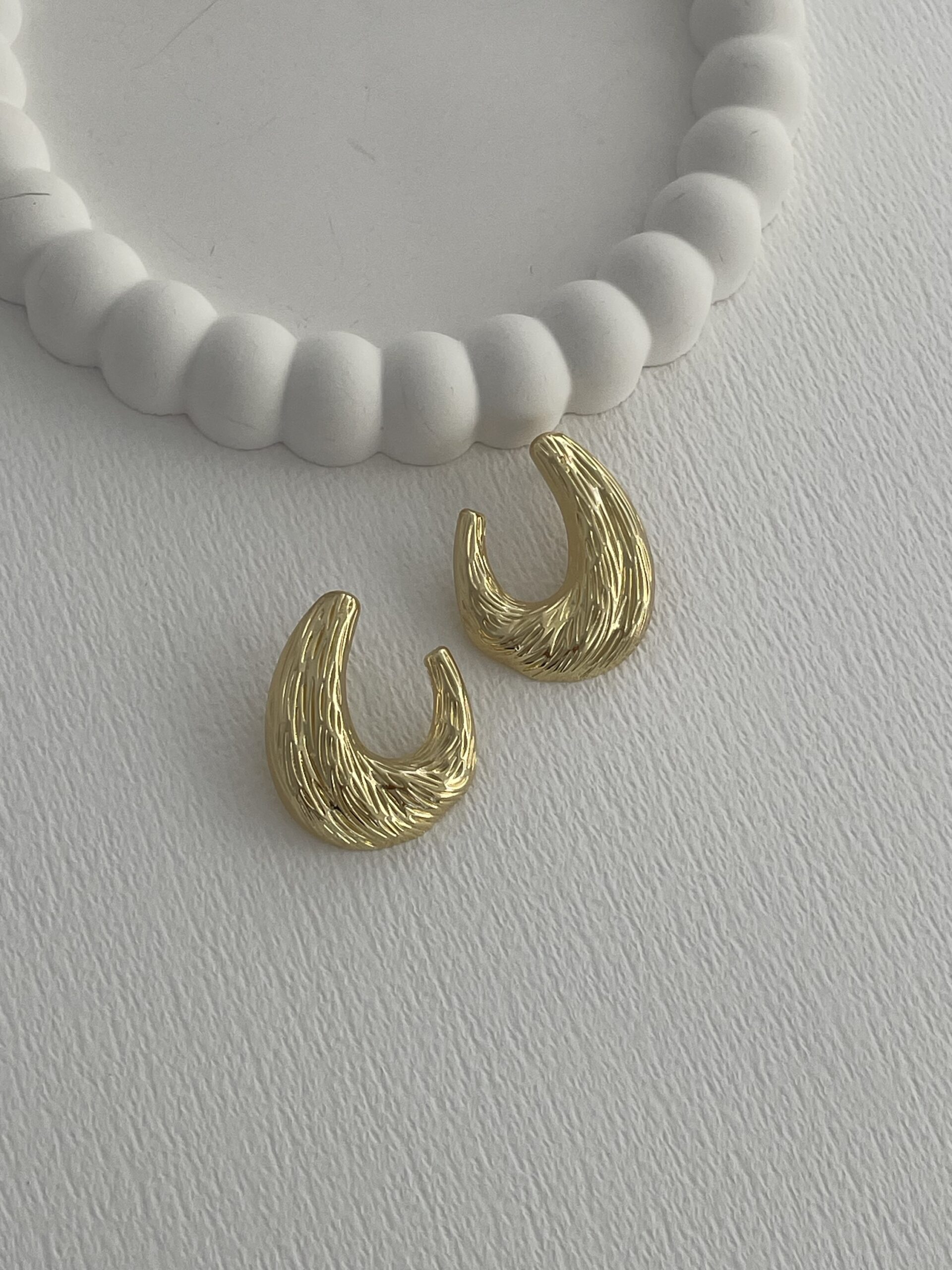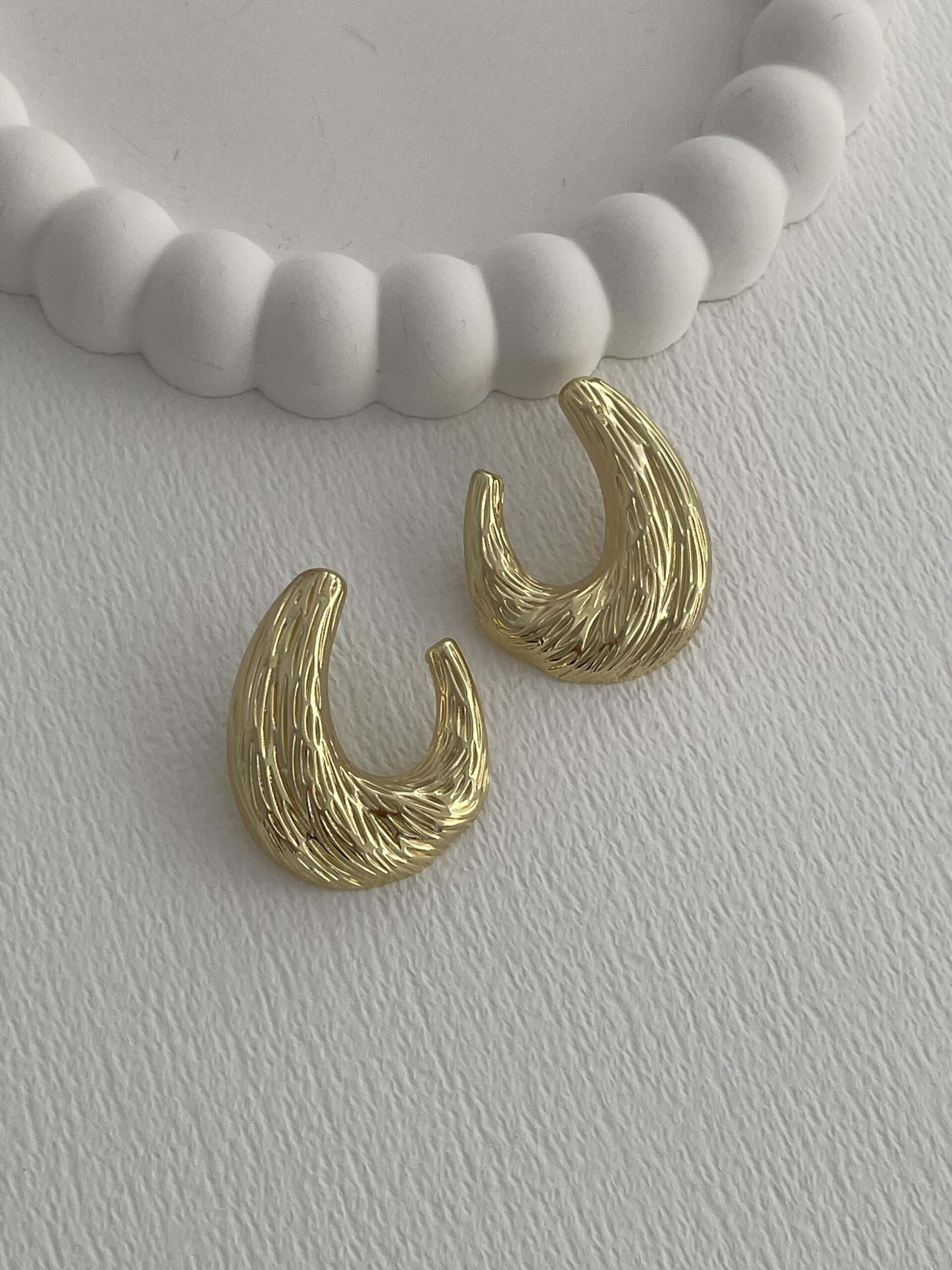 Özel Seri Desenli Oval Tasarım Gold Küpe