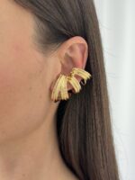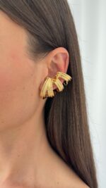 Özel Seri Desenli Dörtlü Sarmal Tasarım Gold Küpe