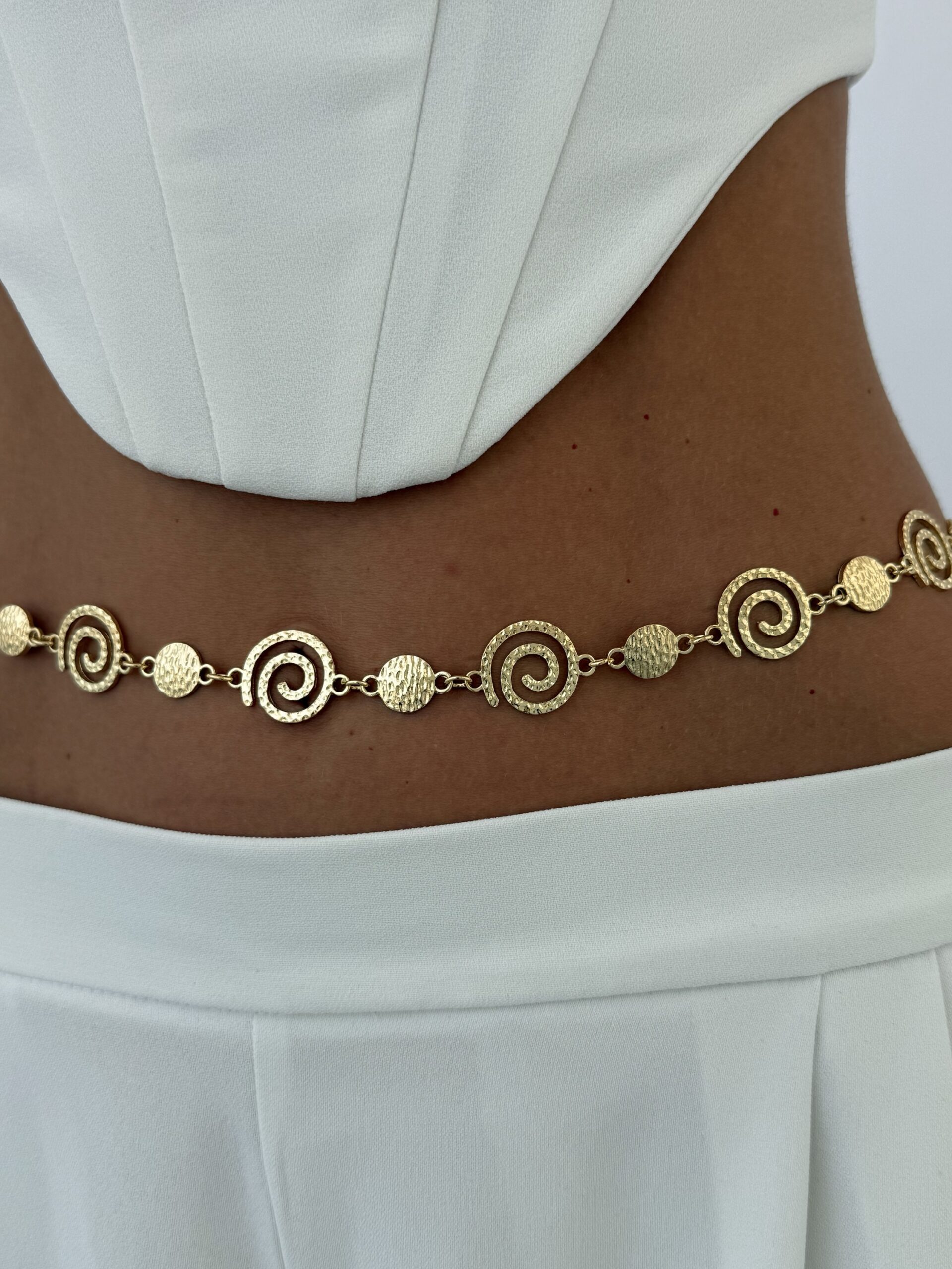 Özel Seri Desenli Spiral Tasarım Gold Bel Zinciri