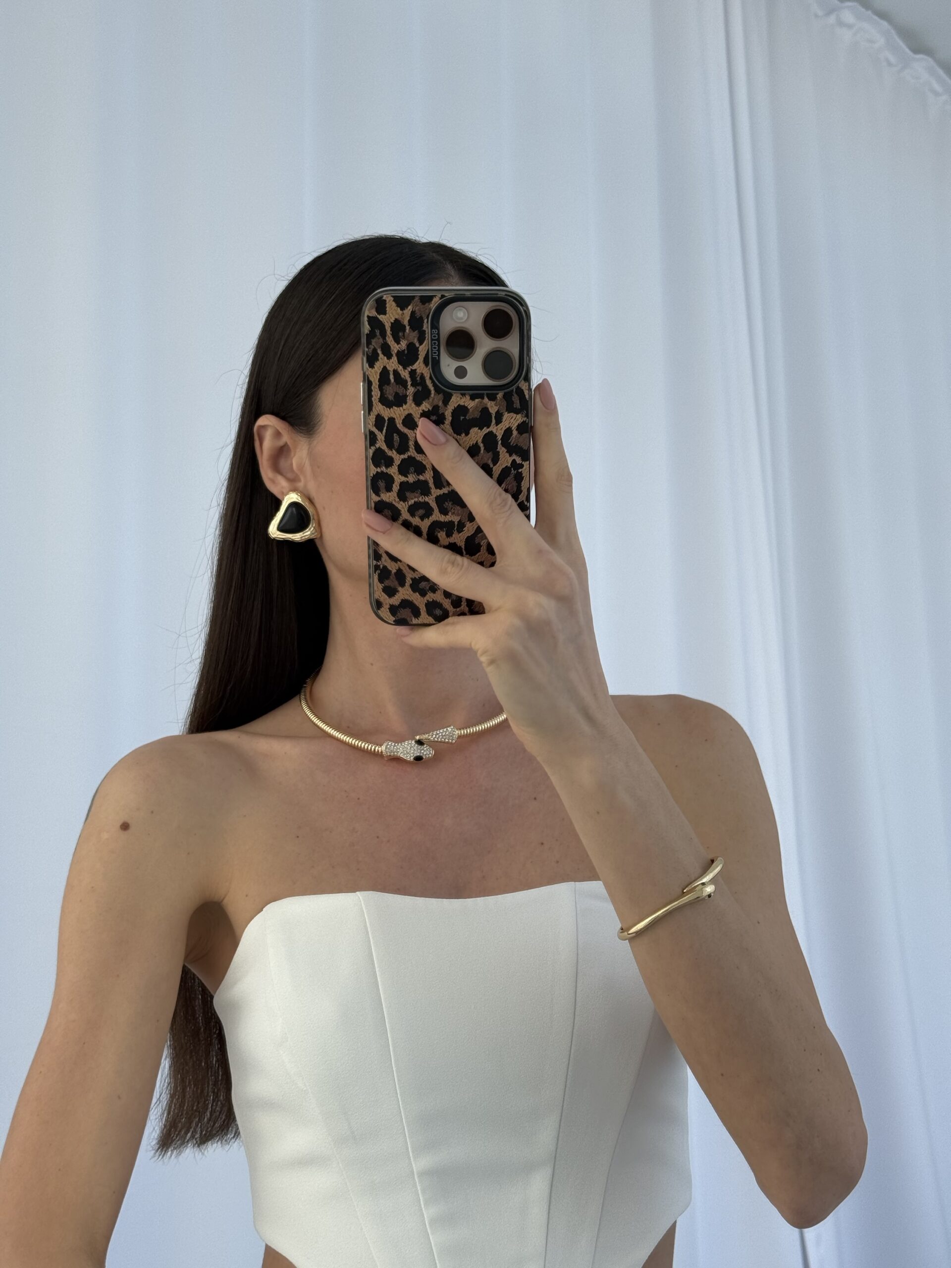 Özel Seri Desenli Üçgen Tasarım Siyah Mineli Gold Küpe