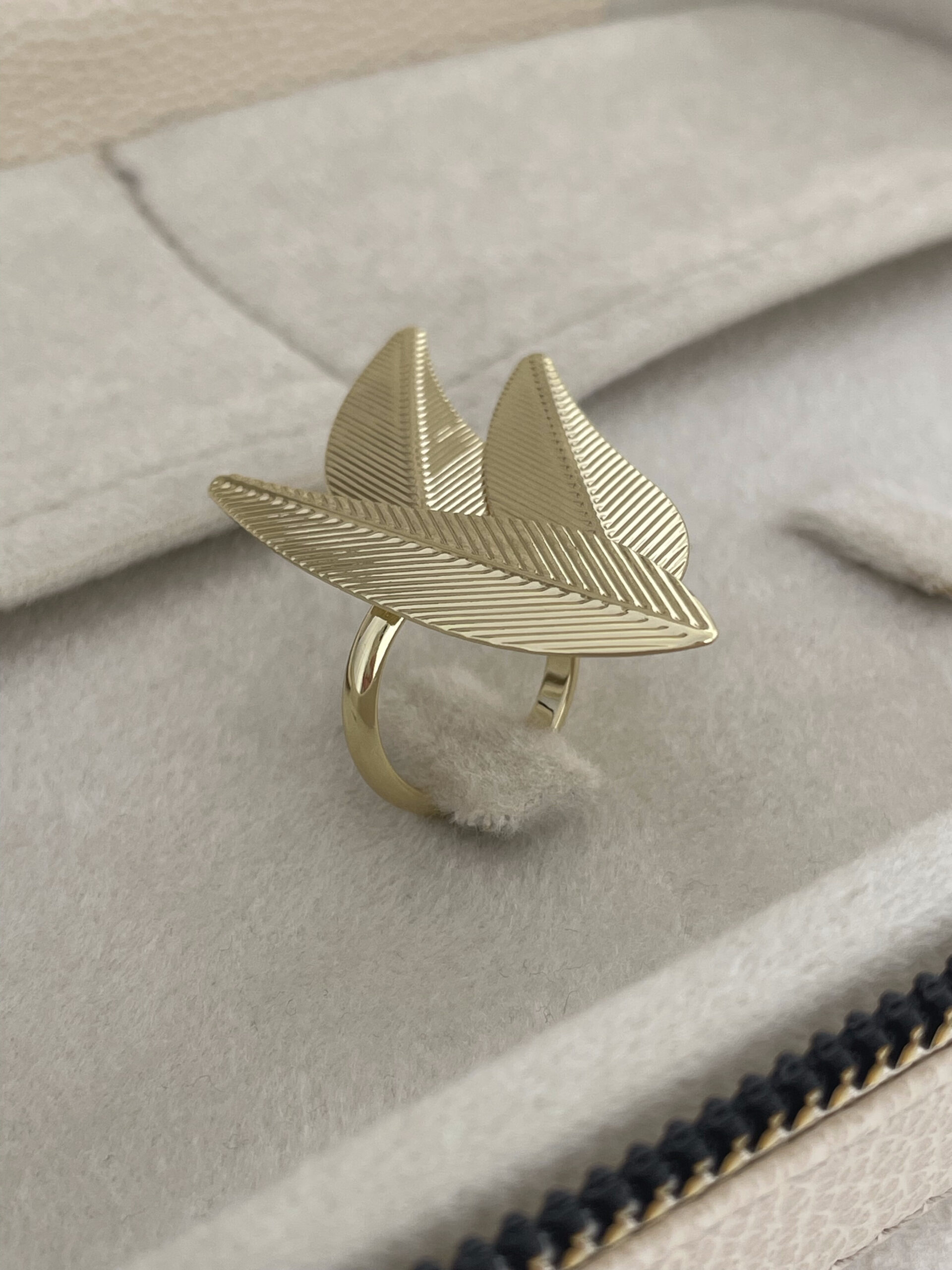 Özel Seri Desenli Yaprak Model Ayarlanabilir Gold Yüzük
