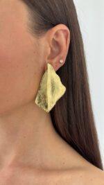 Özel Seri Desenli Yaprak Tasarım Gold Maksi Boy Küpe