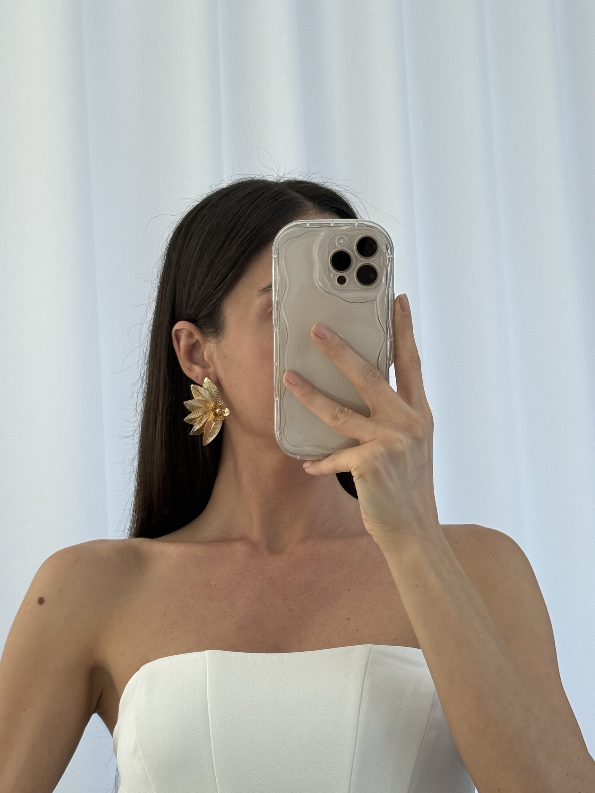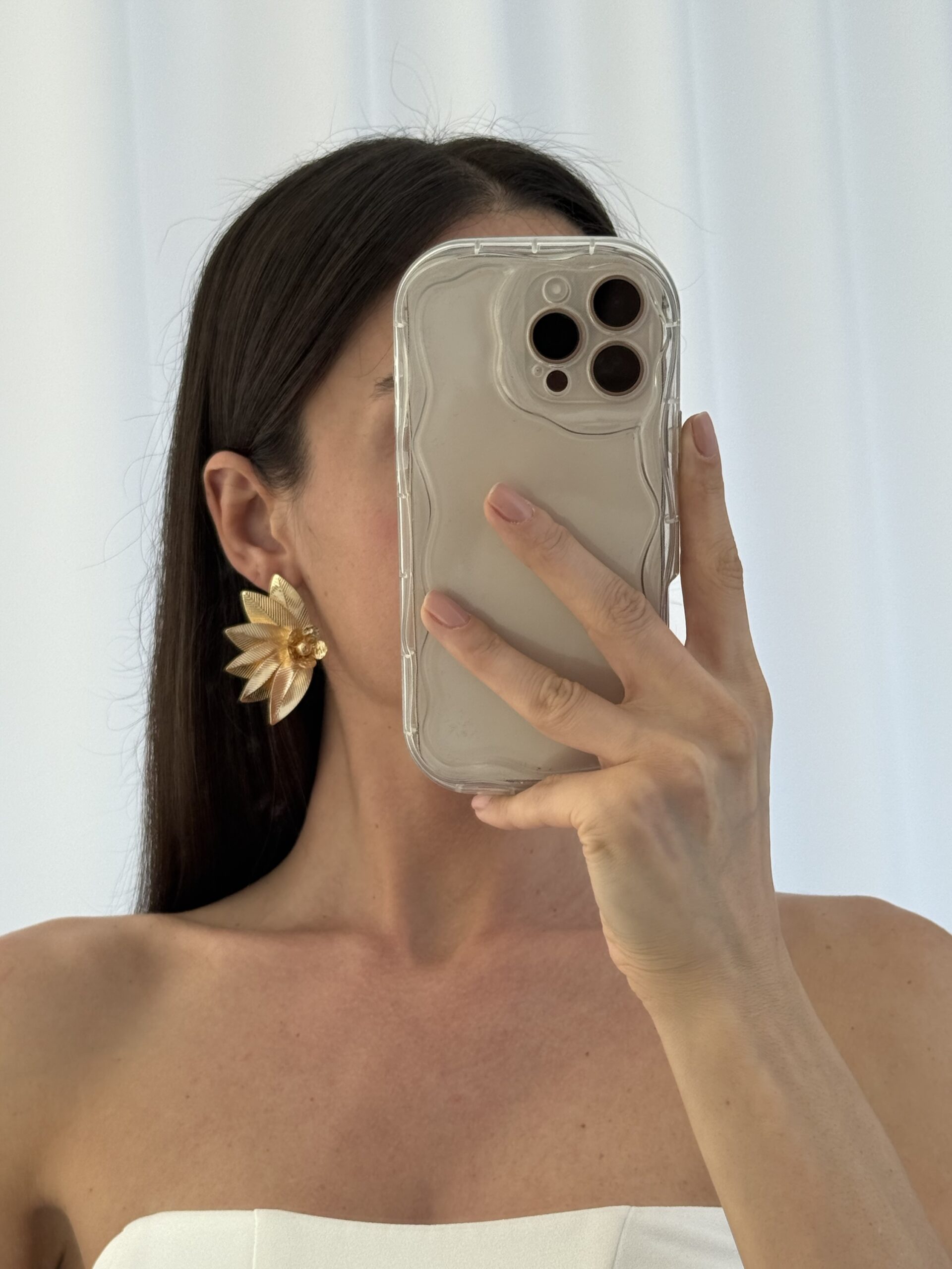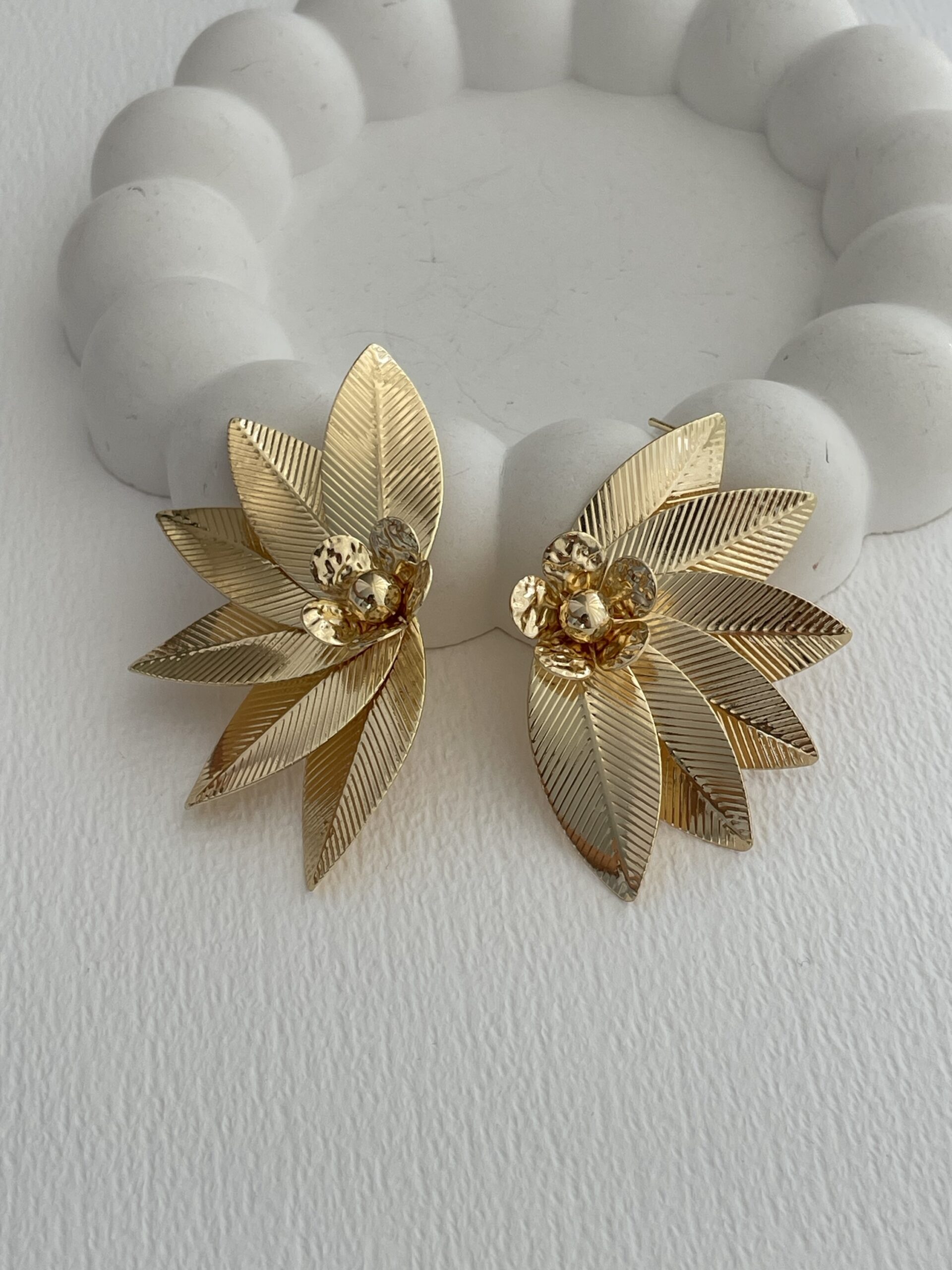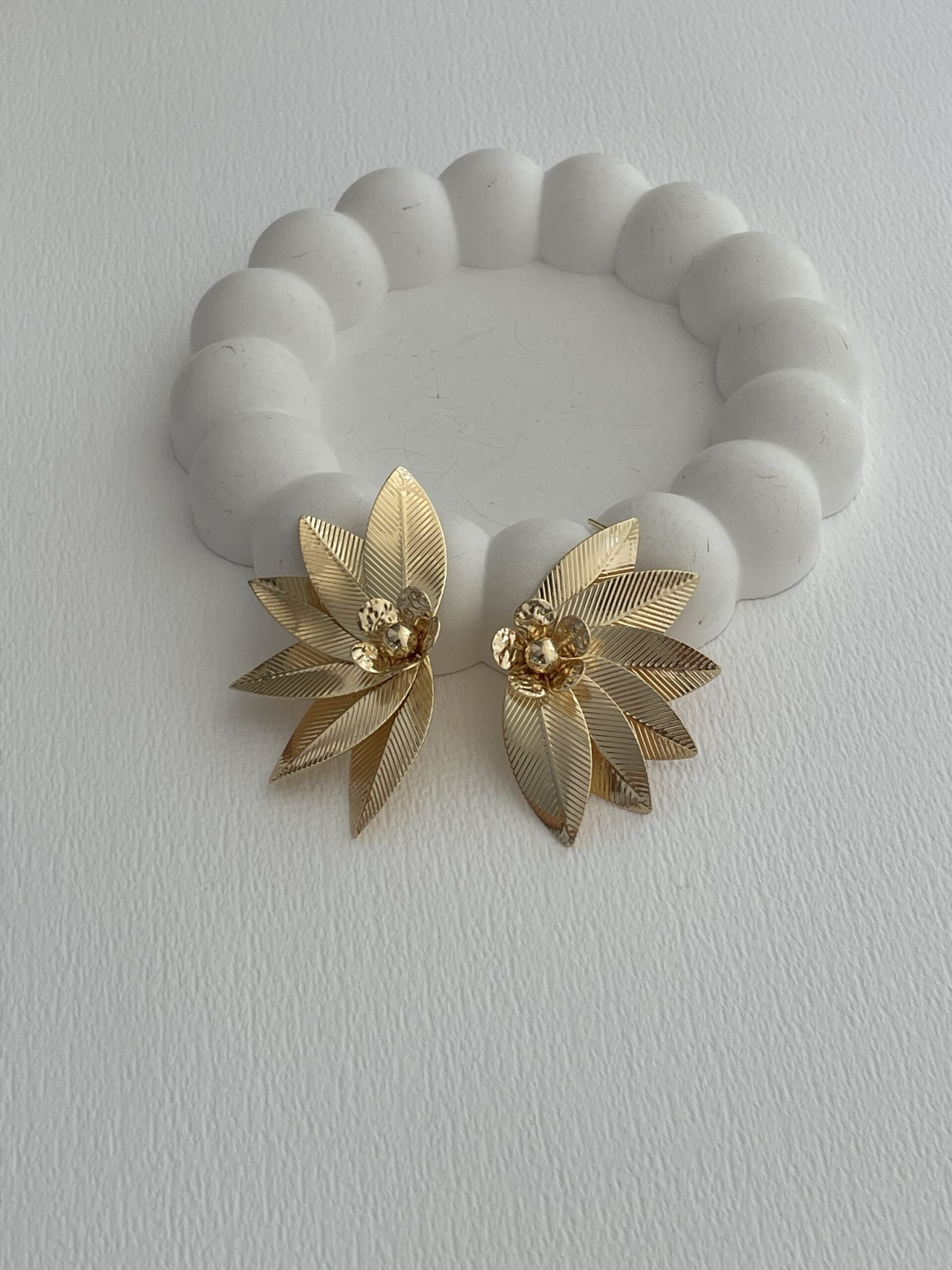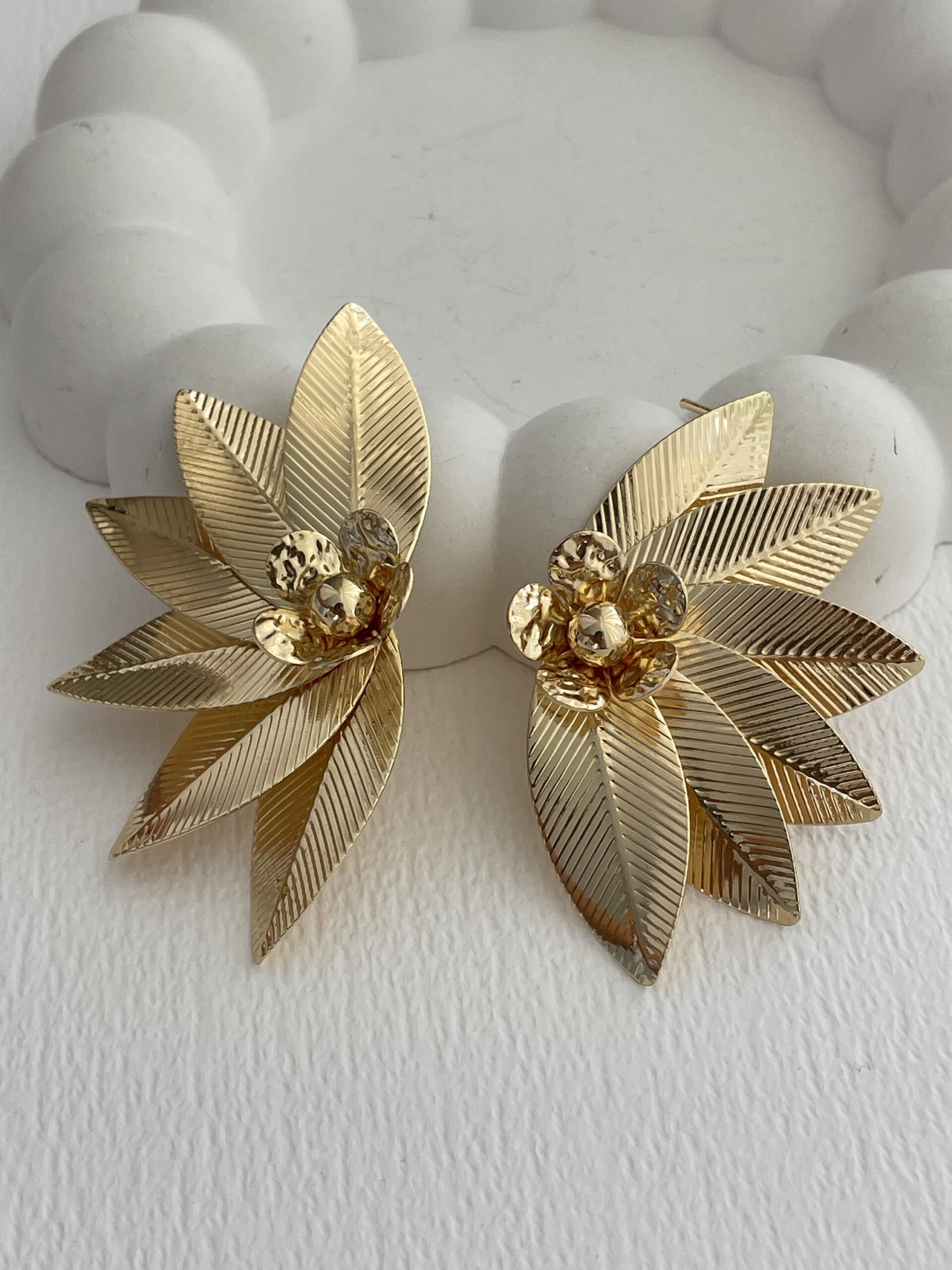 Özel Seri Desenli Yarım Çiçek Tasarım Gold Küpe