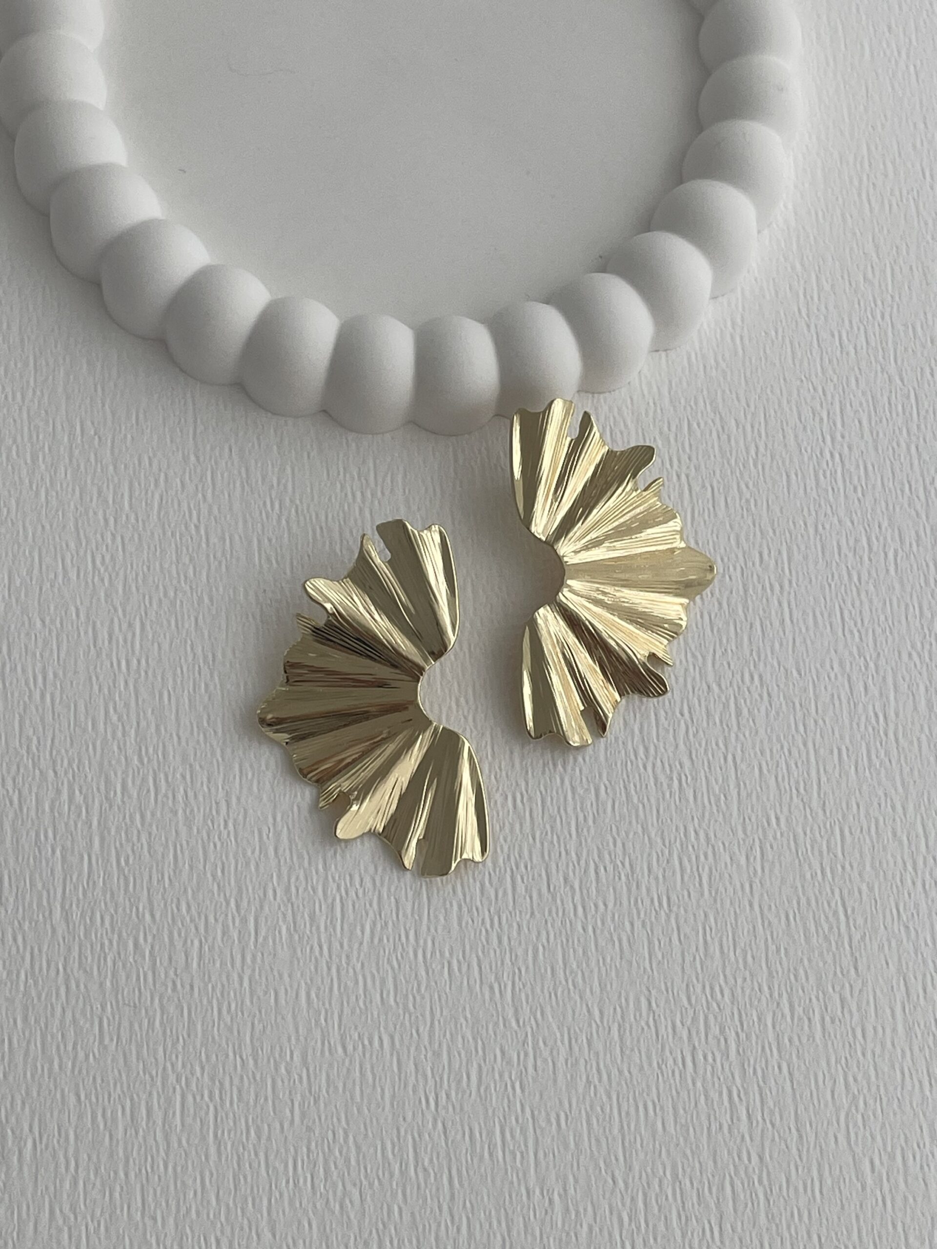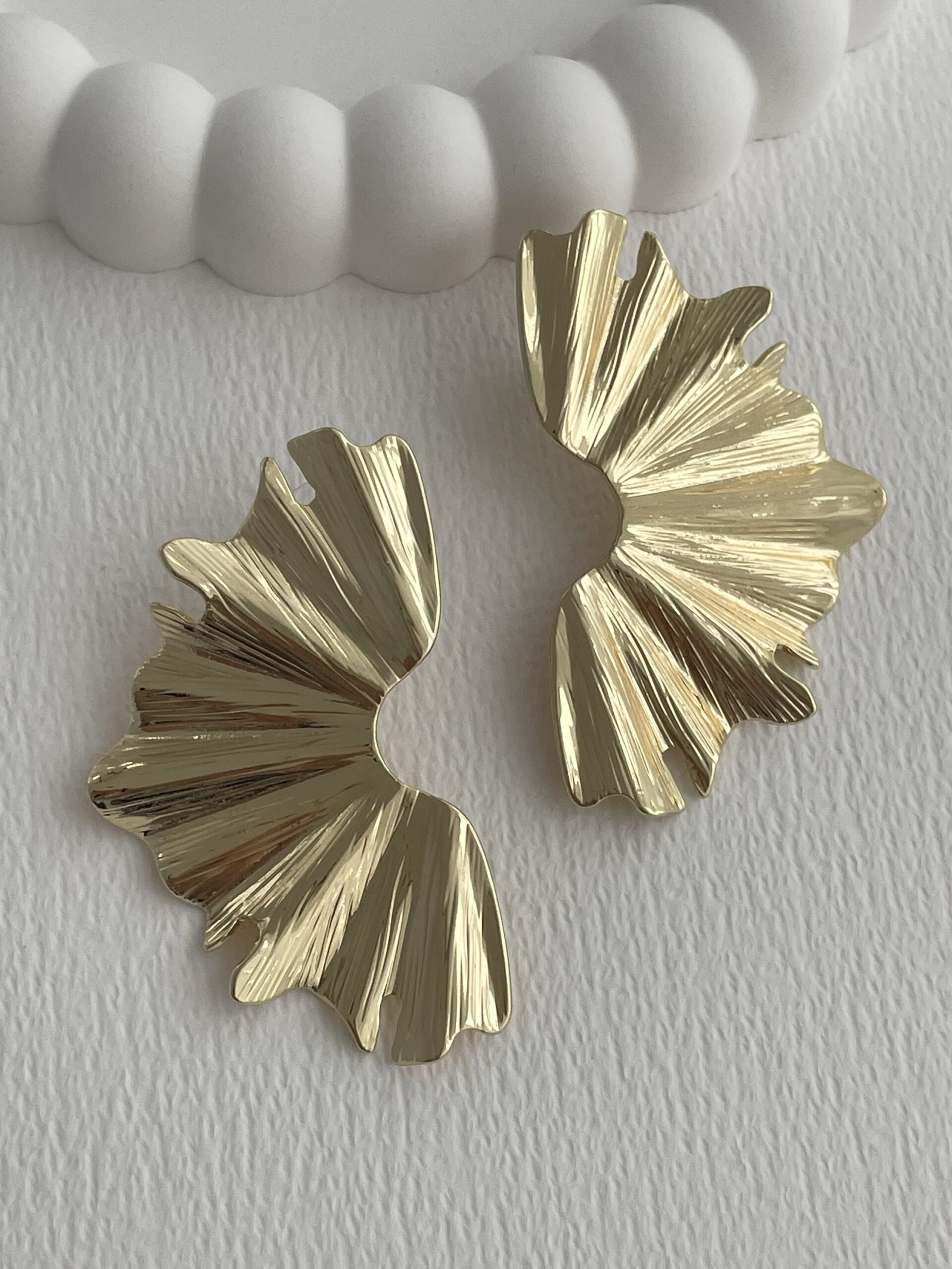 Özel Seri Desenli Yelpaze Tasarım Gold Küpe