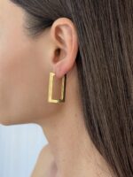 Özel Seri Dikdörtgen Tasarım Gold Halka Küpe