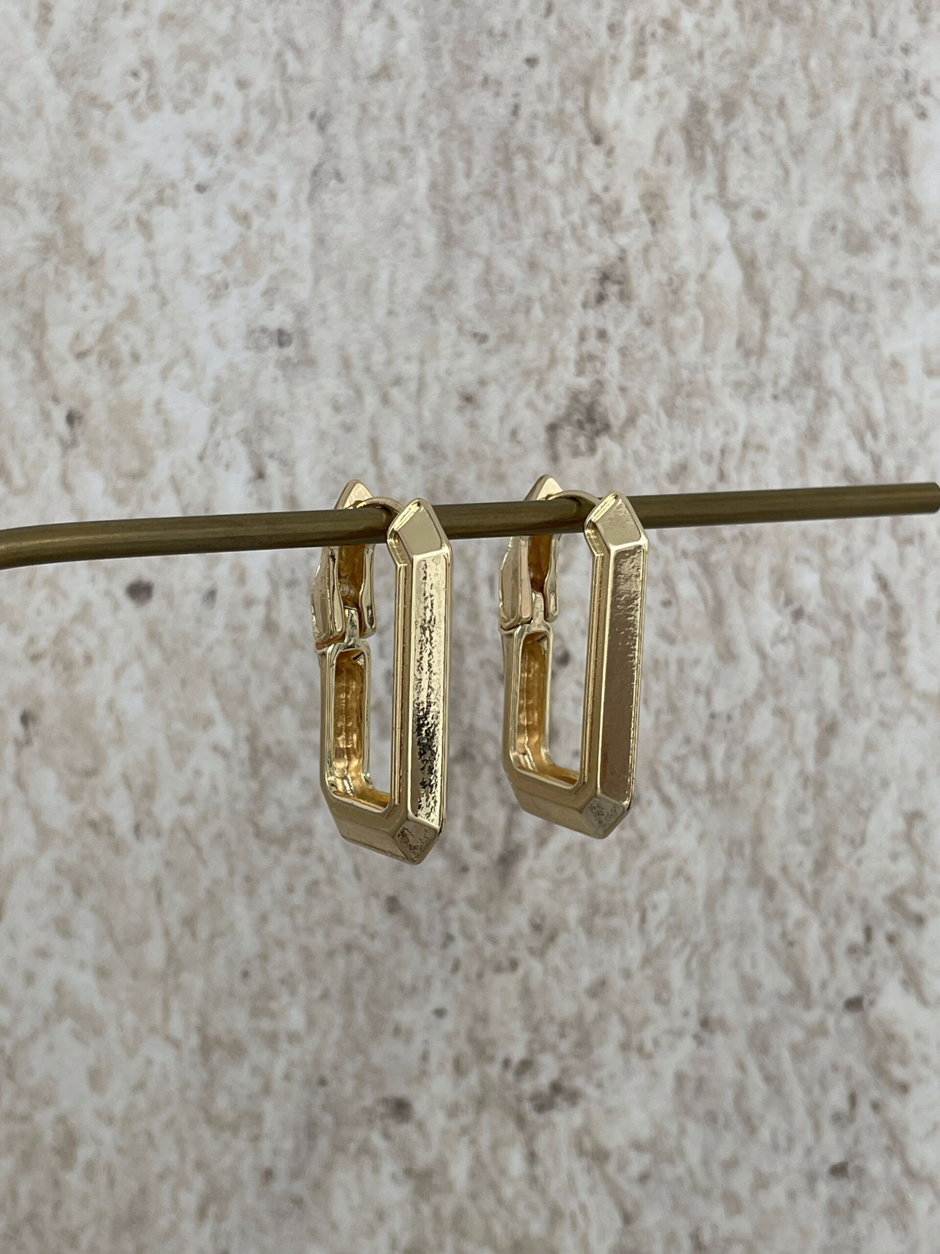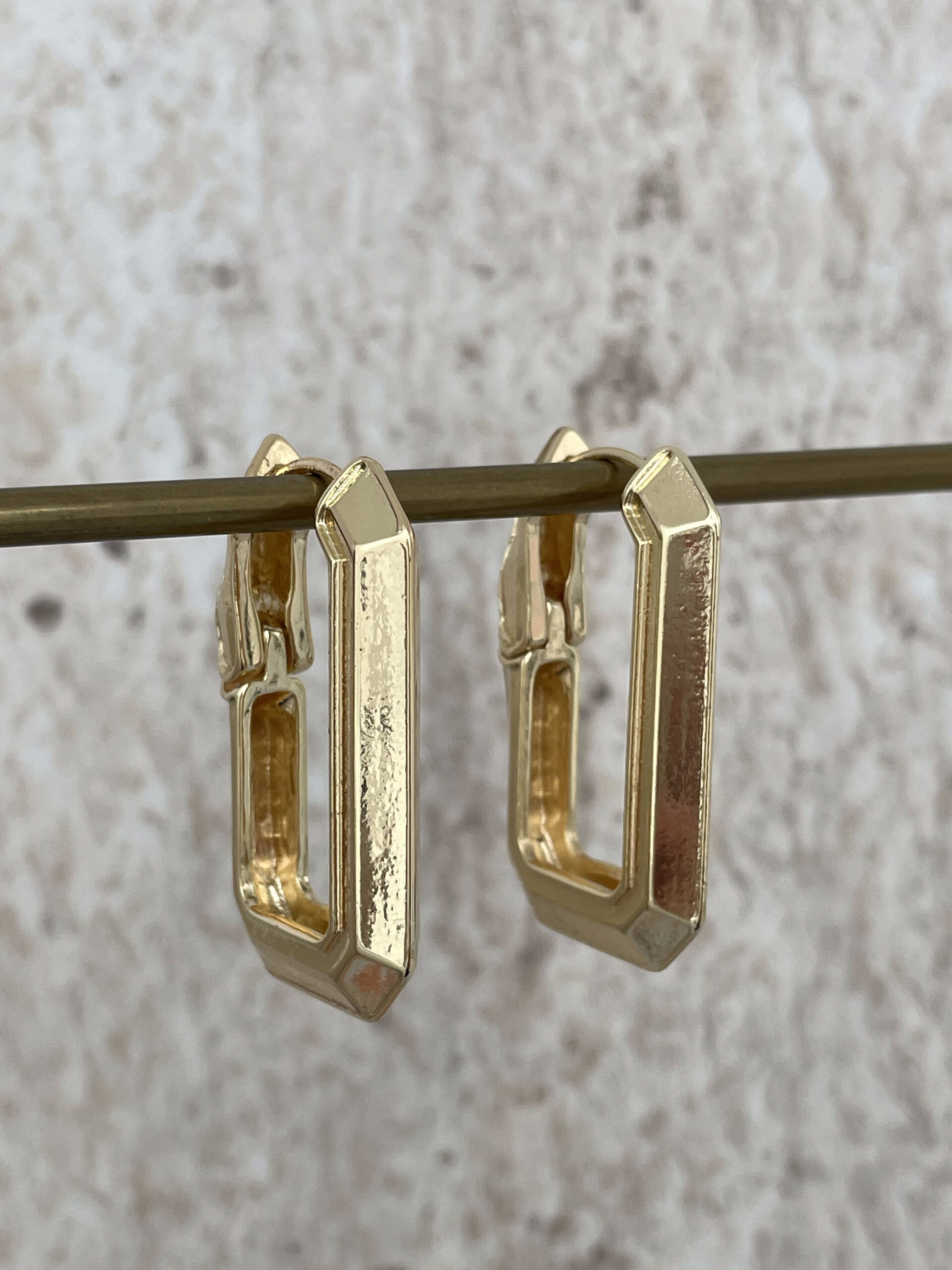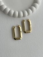 Özel Seri Dikdörtgen Tasarım Gold Halka Küpe